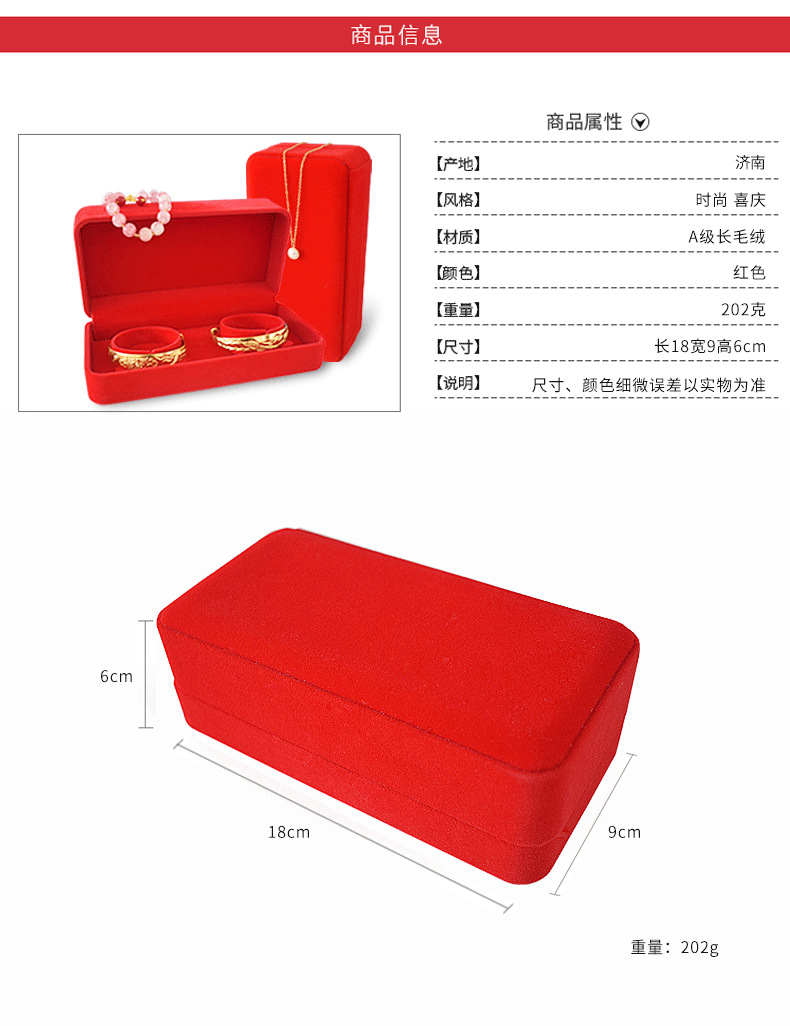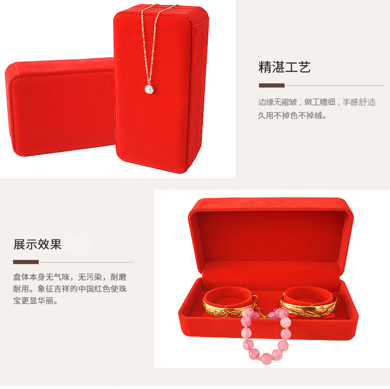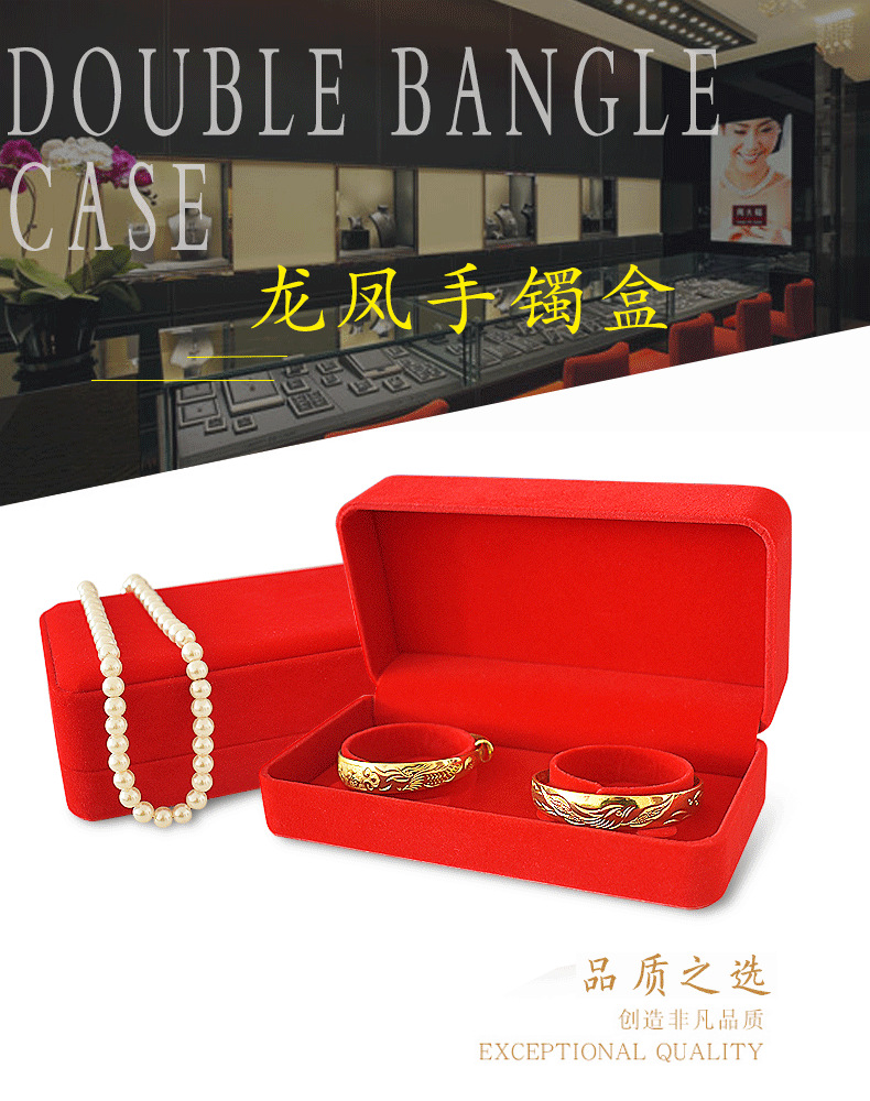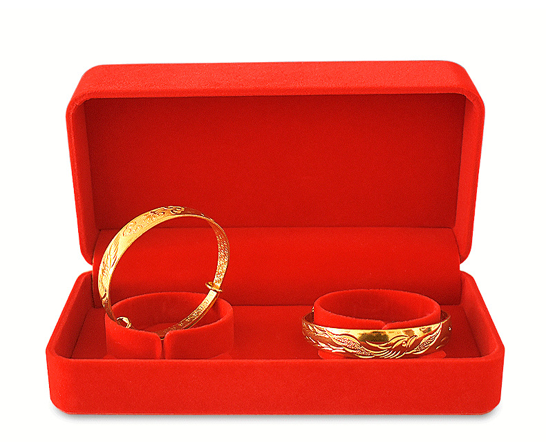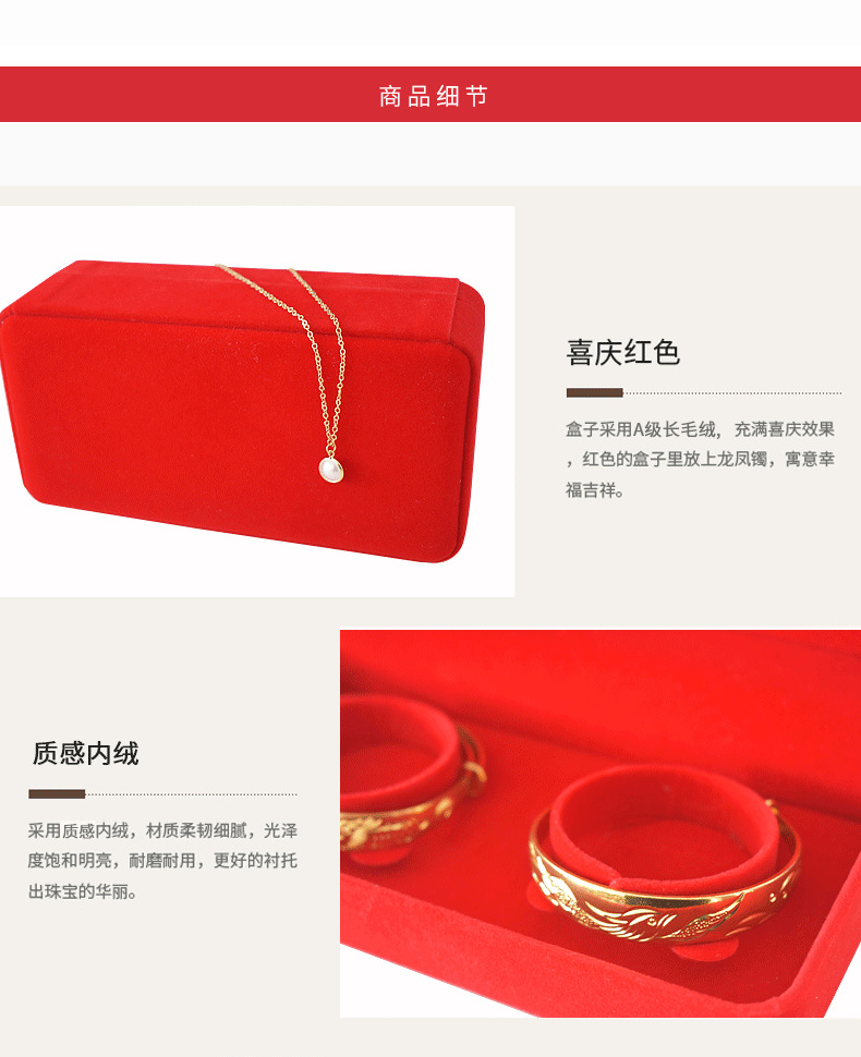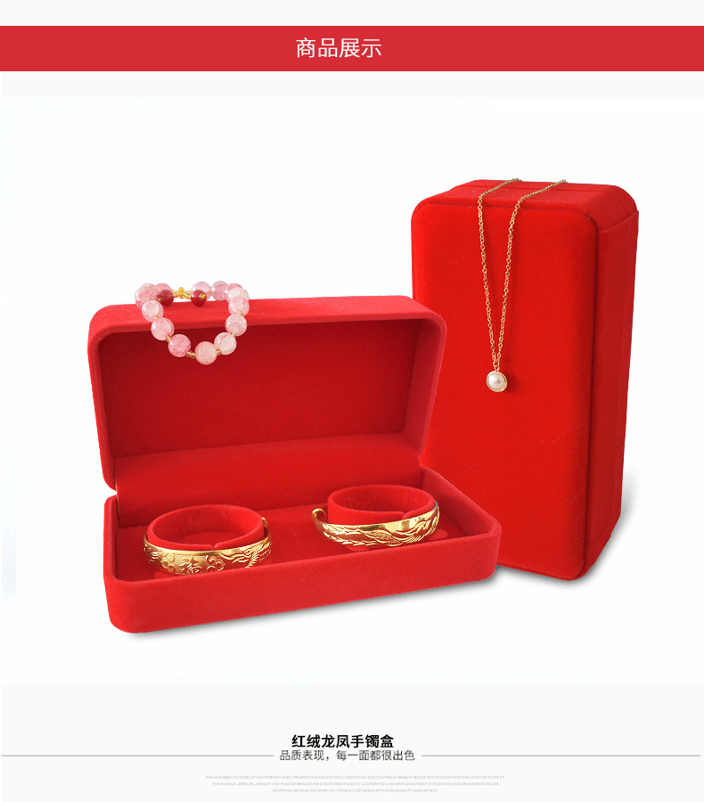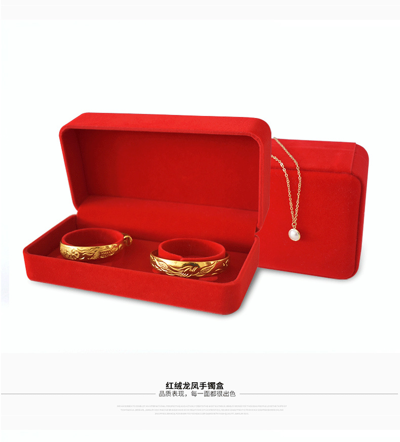 珠宝饰品红绒布手镯盒婚庆珠宝首饰盒黄金龙凤手镯包装礼品盒收纳