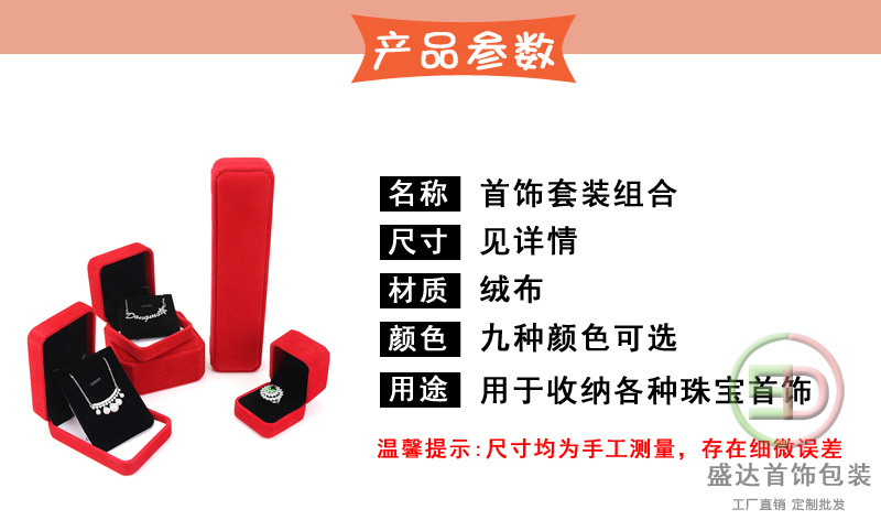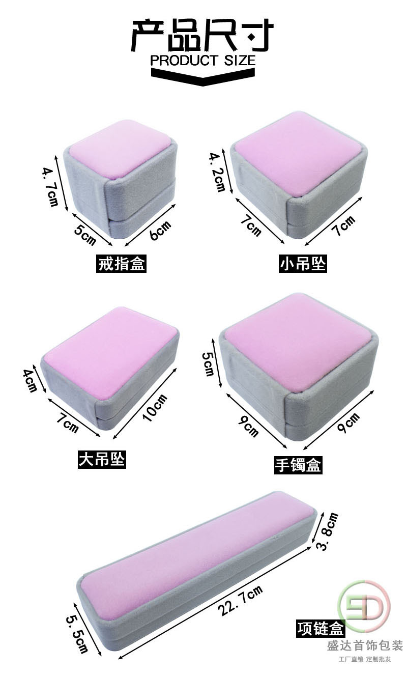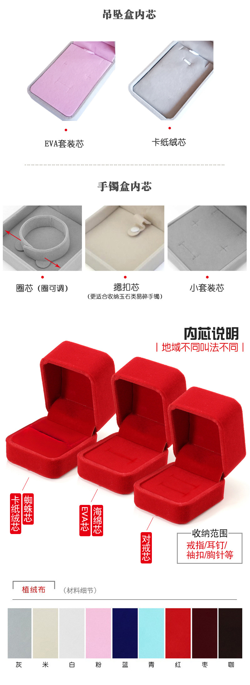 圆角绒布珠宝首饰盒 戒指盒吊坠手镯项链手链收纳包装礼品盒单戒