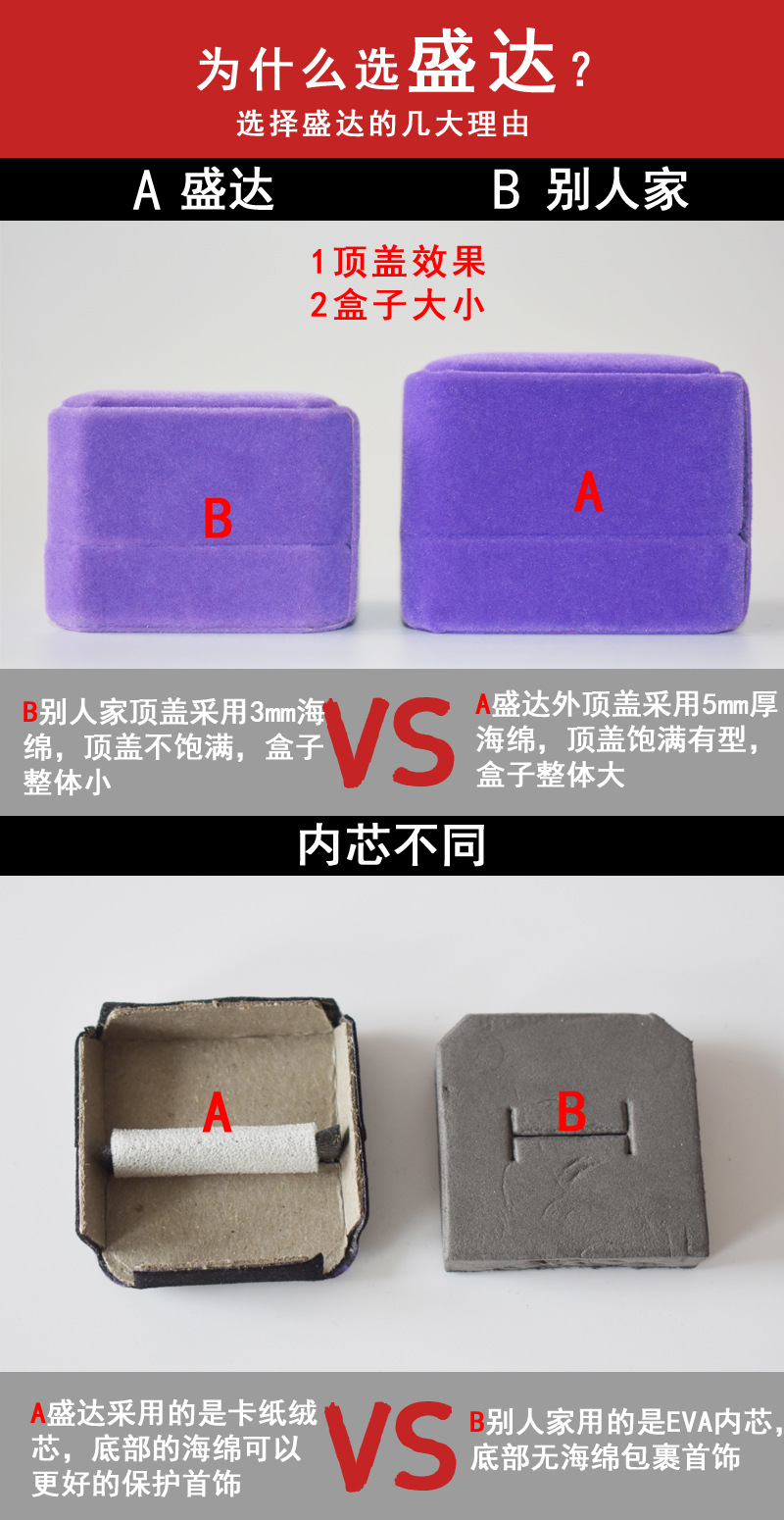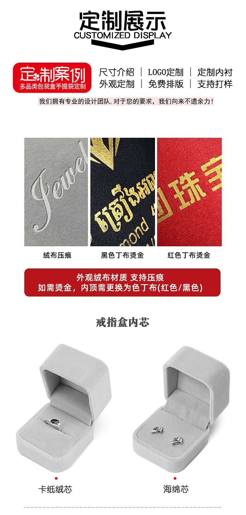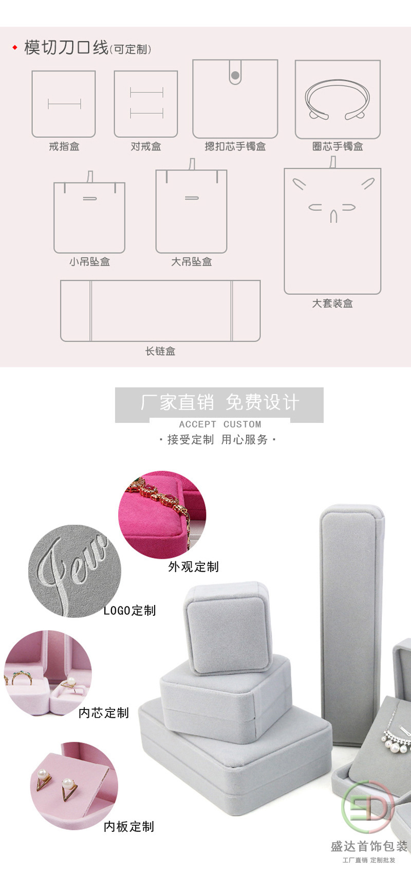 圆角绒布珠宝首饰盒 戒指盒吊坠手镯项链手链收纳包装礼品盒单戒