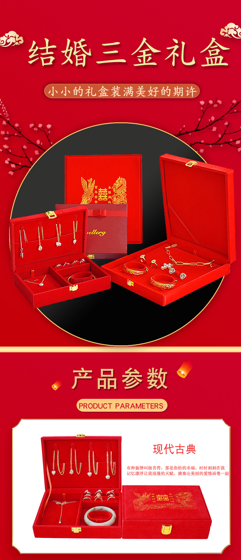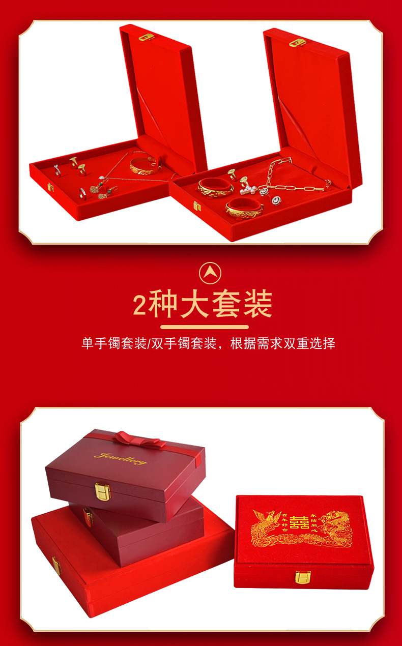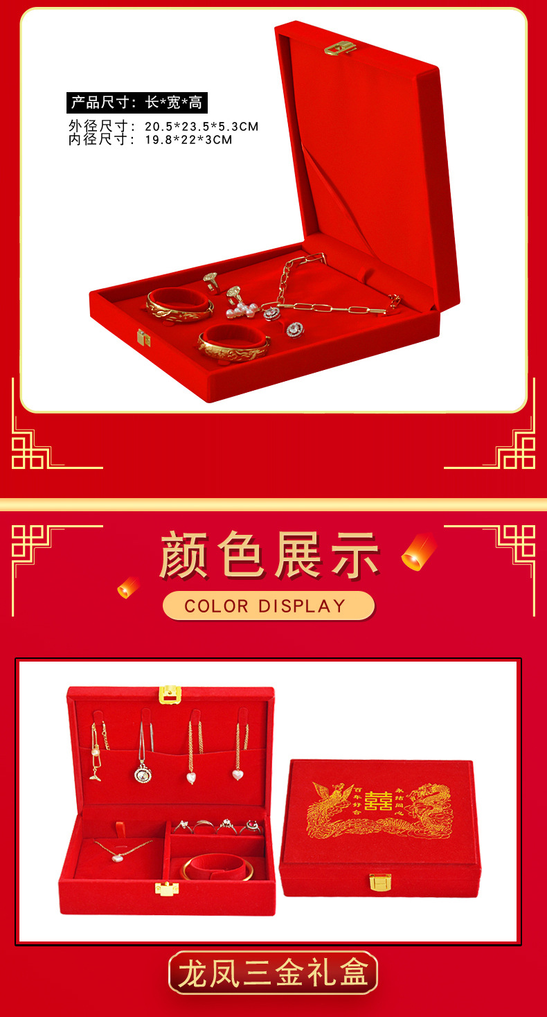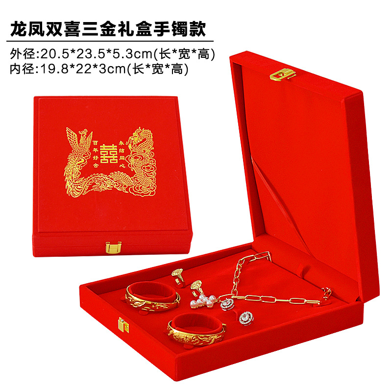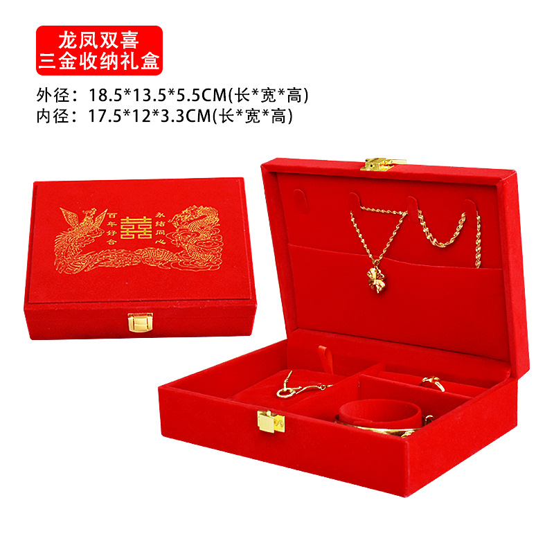 结婚套装三金首饰盒子带锁黄金礼盒中国风龙凤手镯盒木制婚礼聘礼