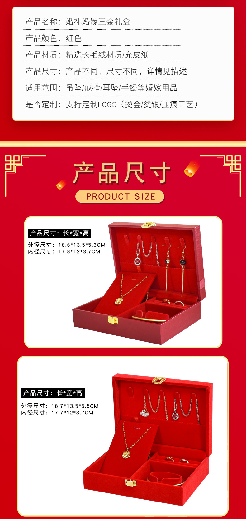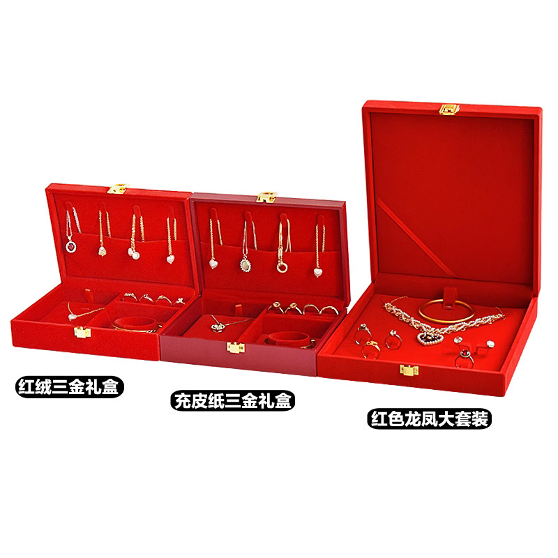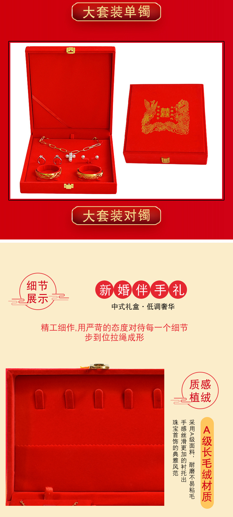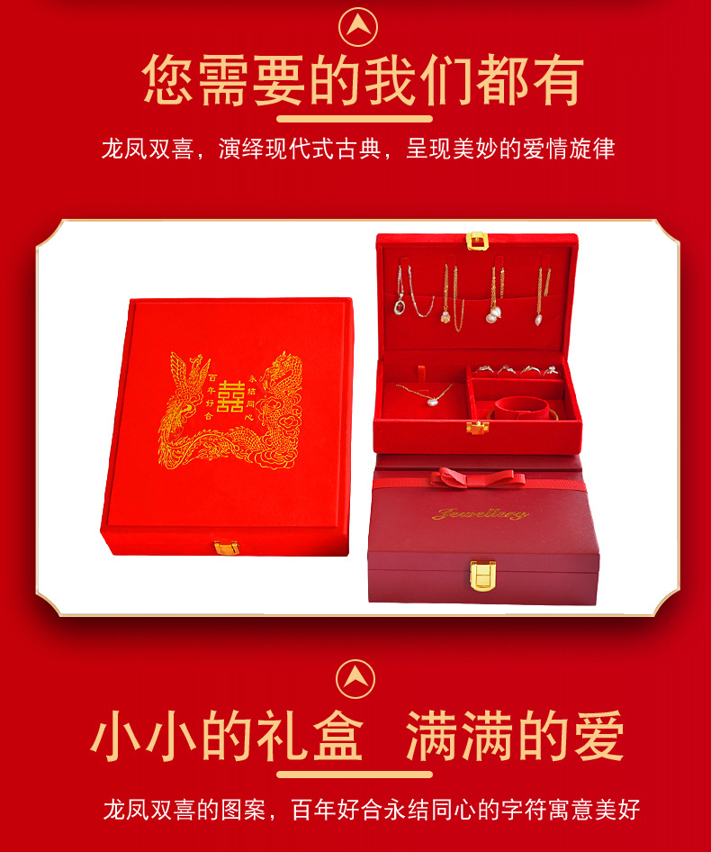 结婚套装三金首饰盒子带锁黄金礼盒中国风龙凤手镯盒木制婚礼聘礼