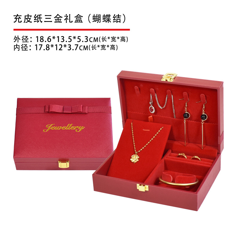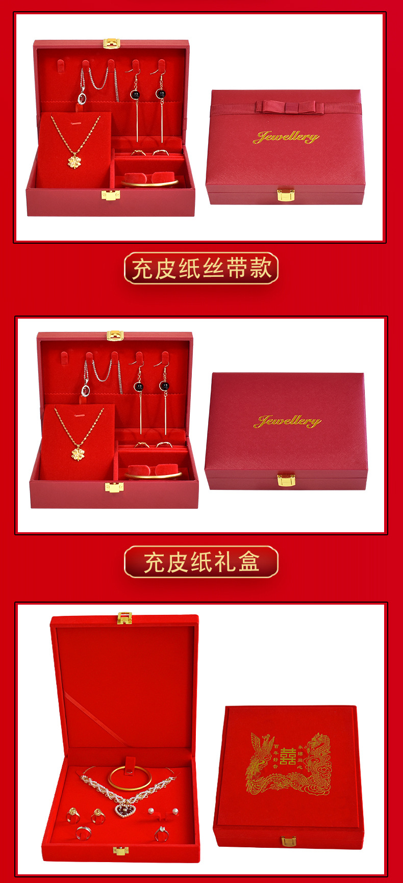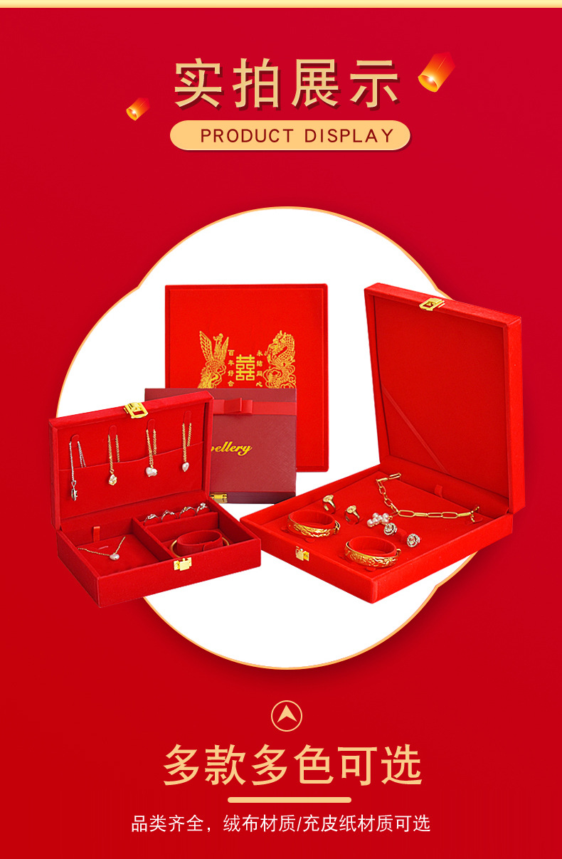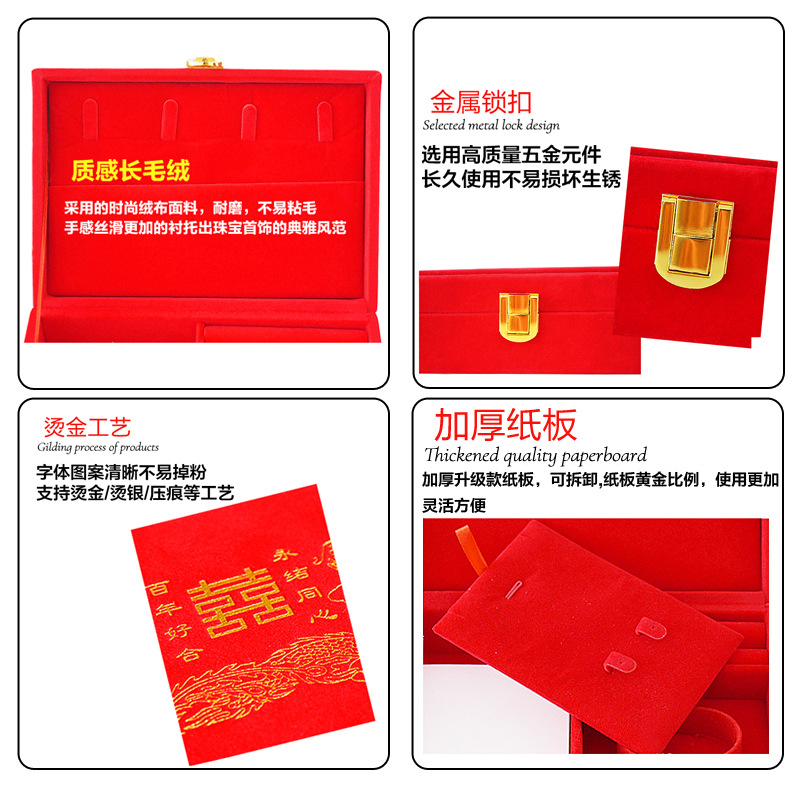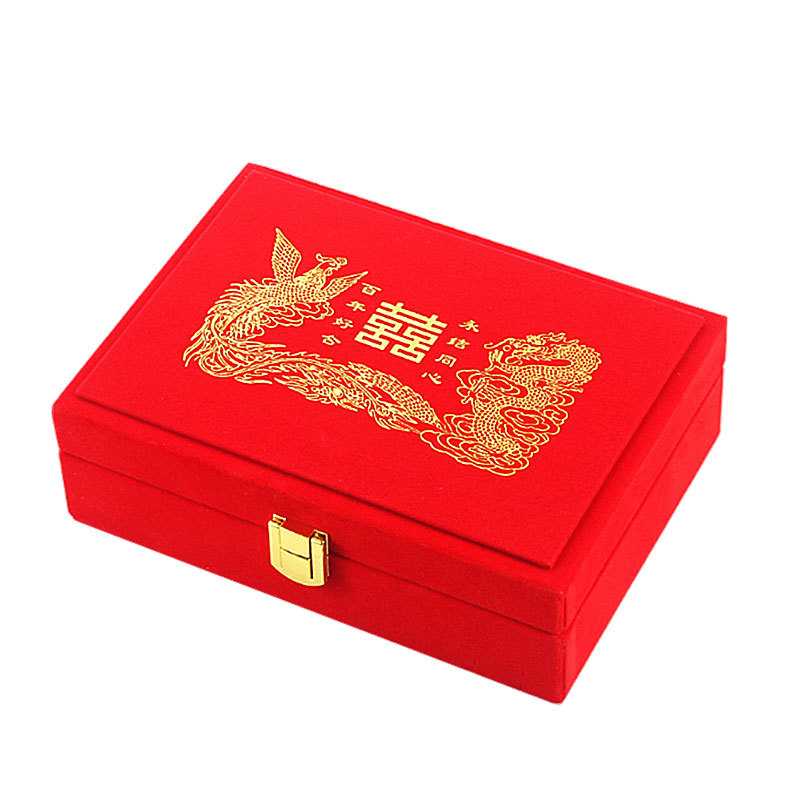 结婚套装三金首饰盒子带锁黄金礼盒中国风龙凤手镯盒木制婚礼聘礼