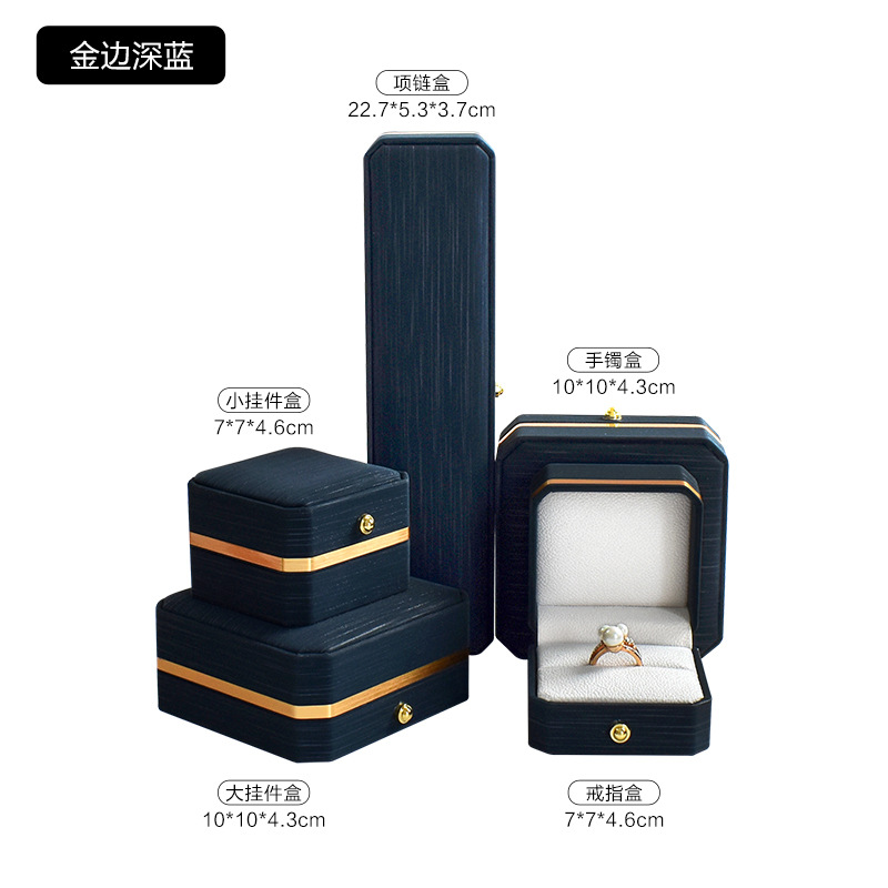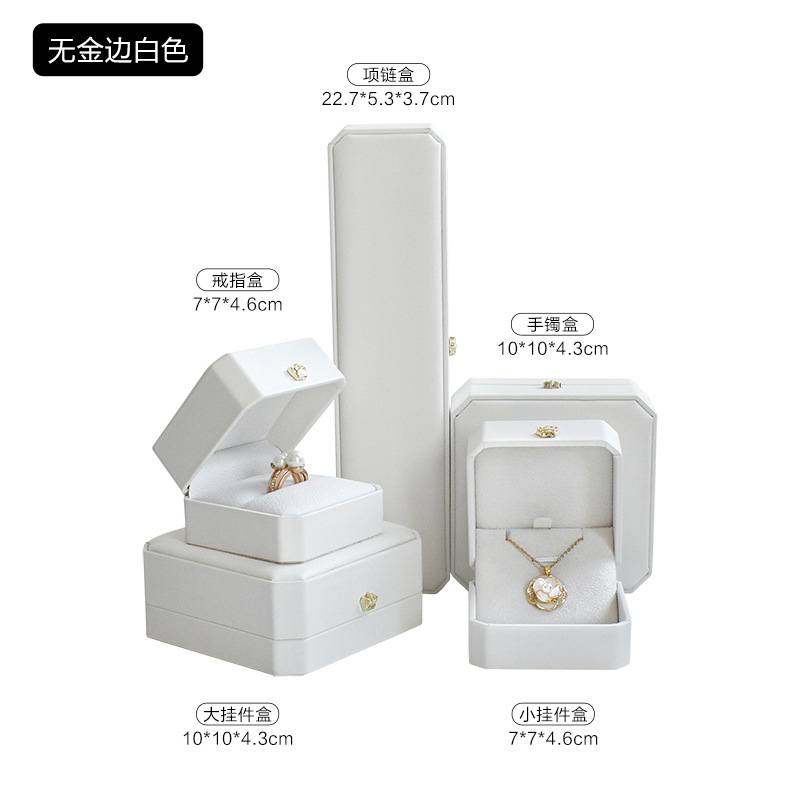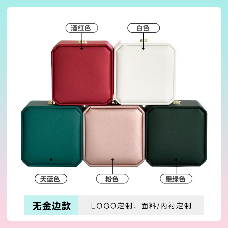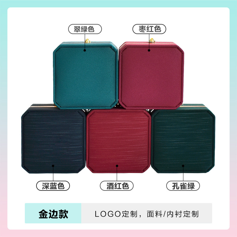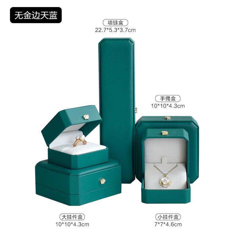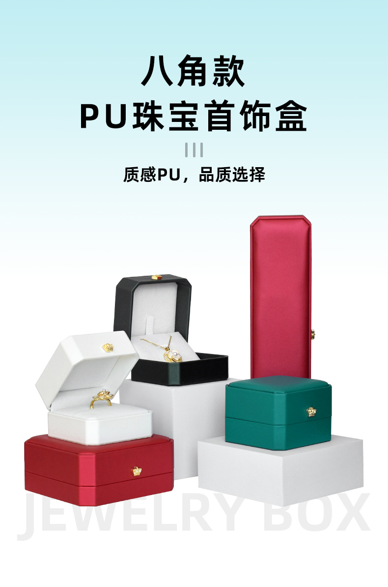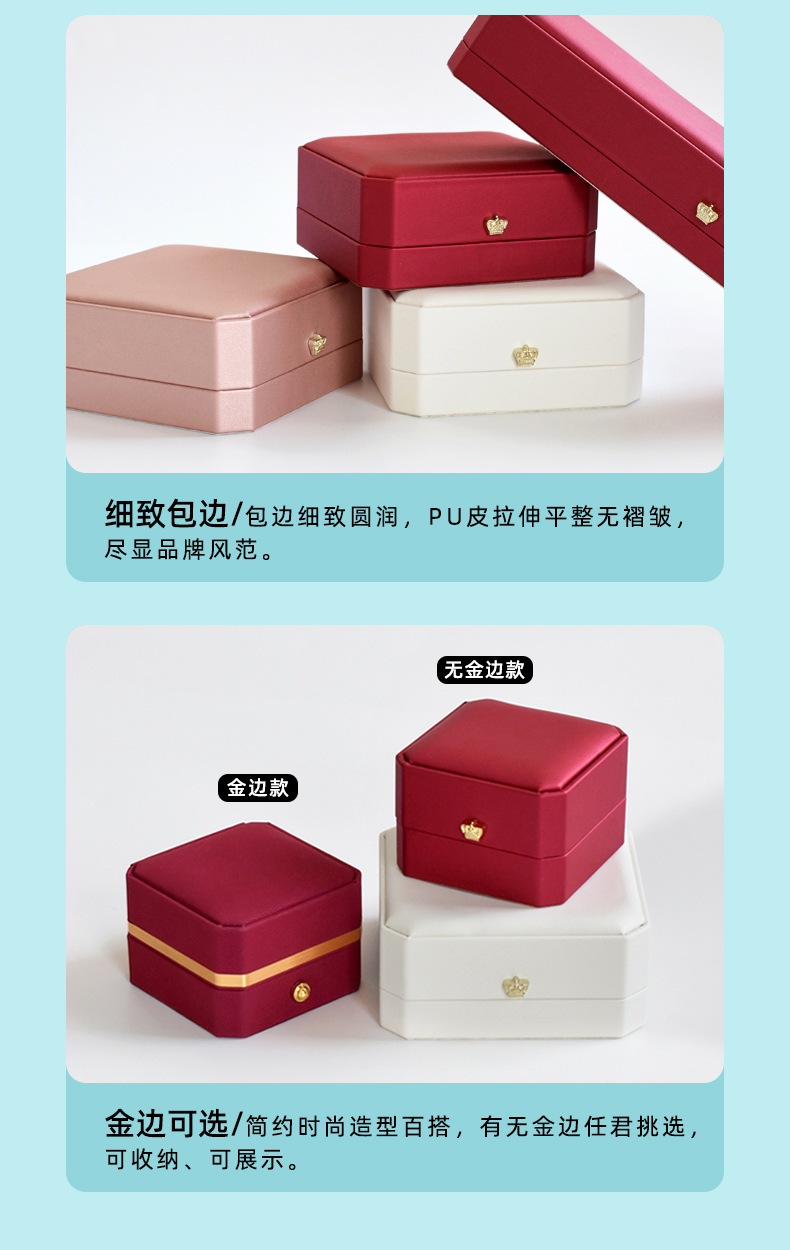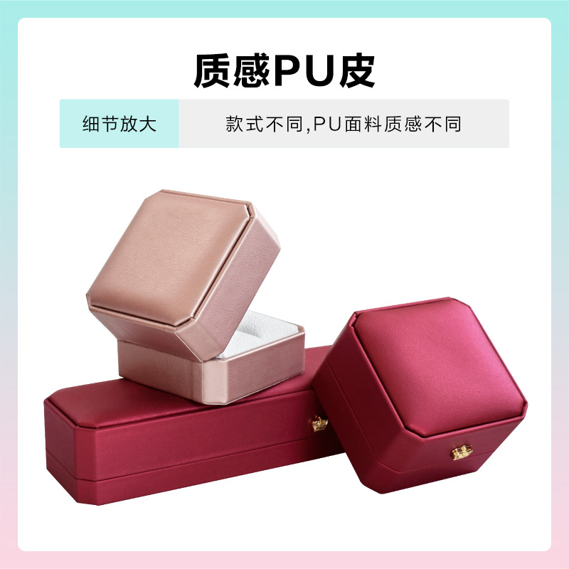 八角pu皇冠首饰盒金边皮质戒指项链珠宝盒手镯吊坠饰品包装盒批发