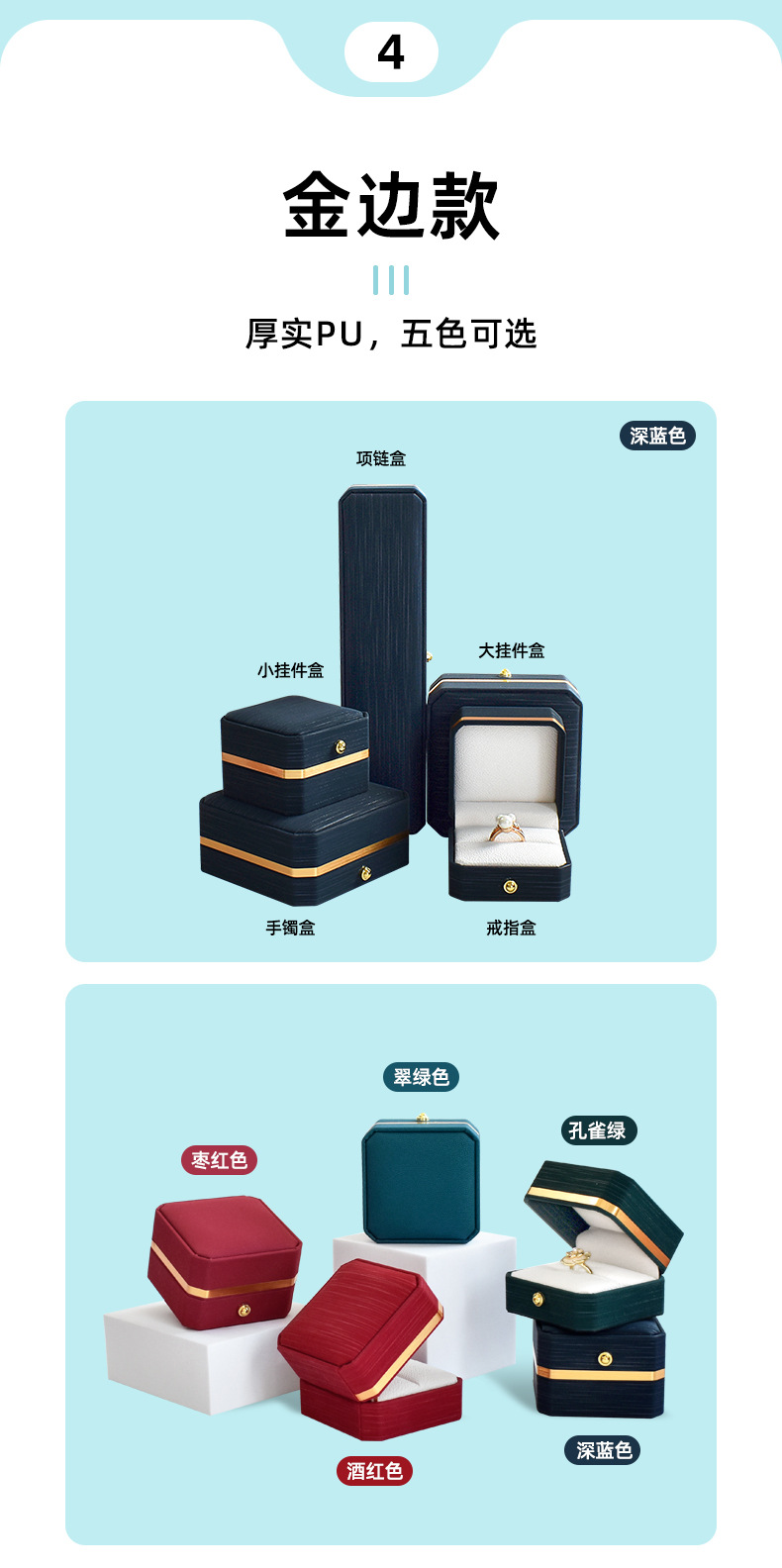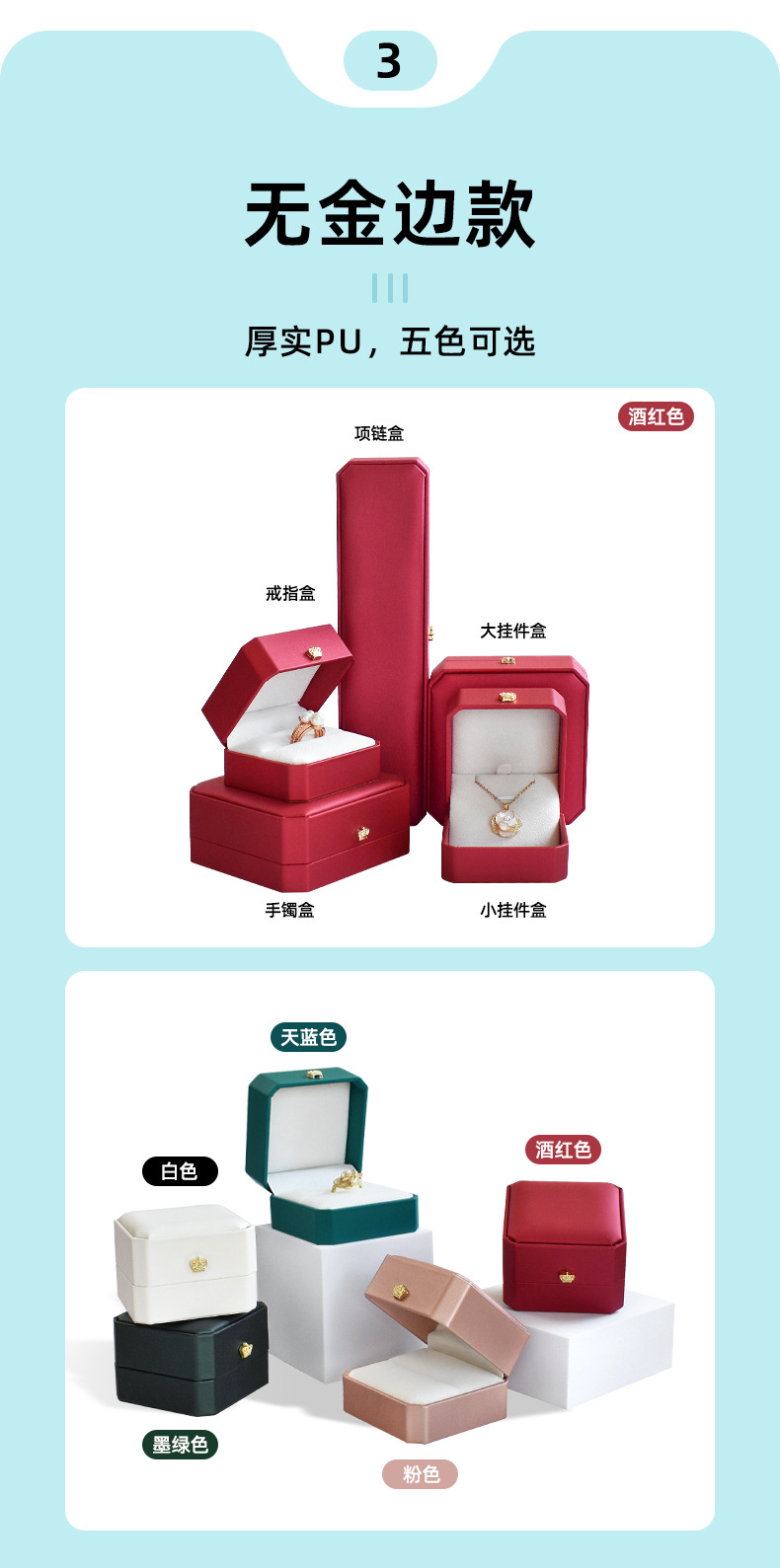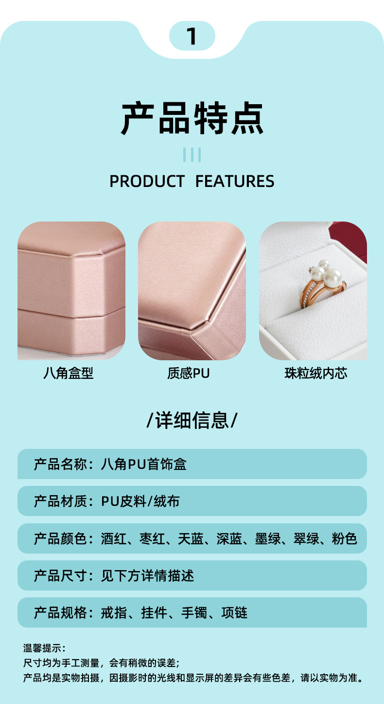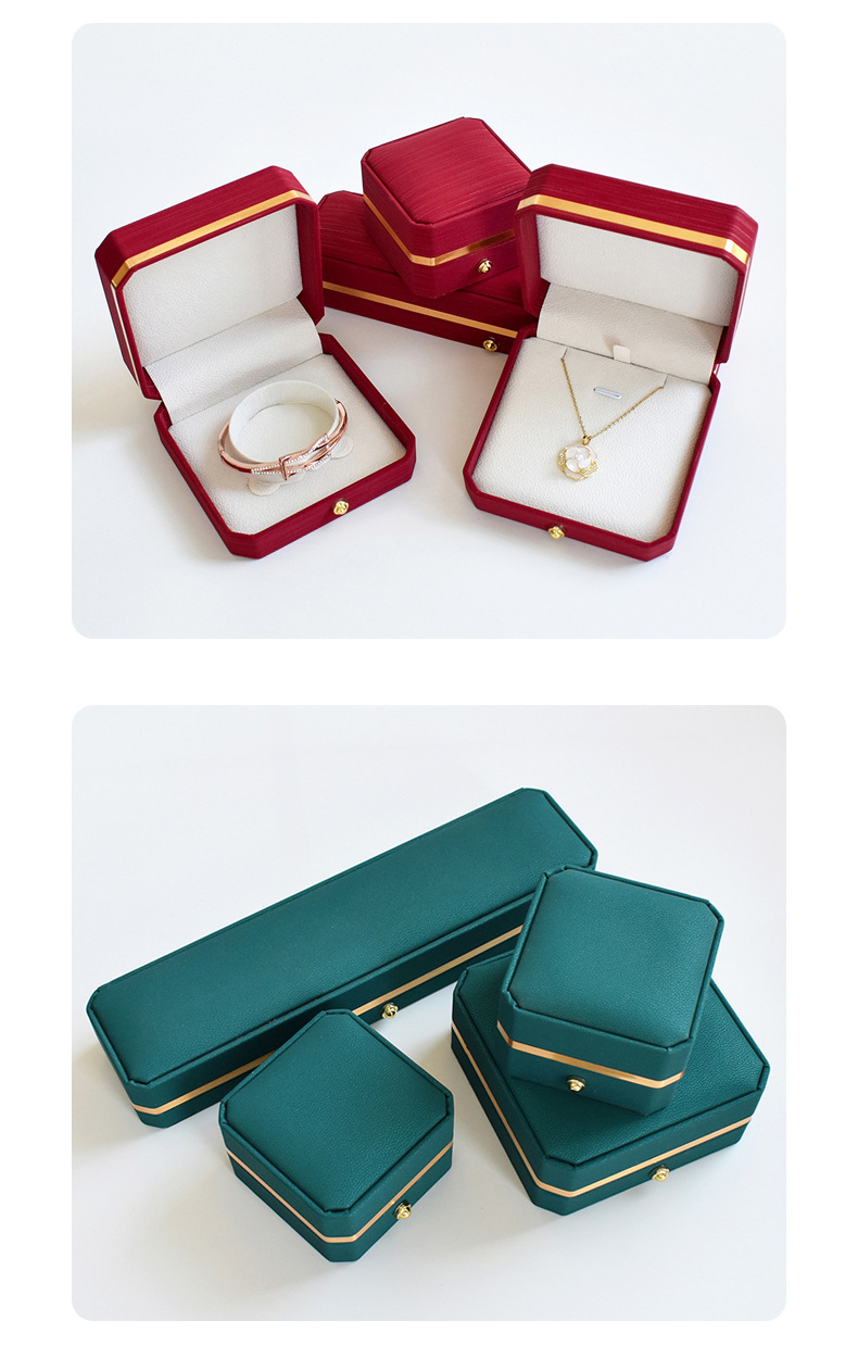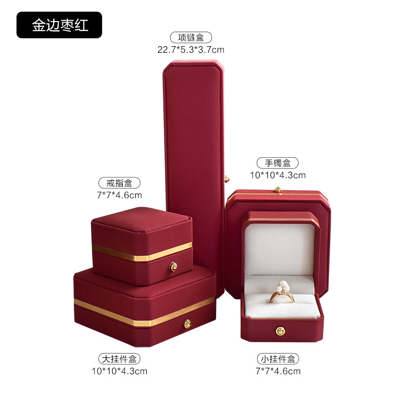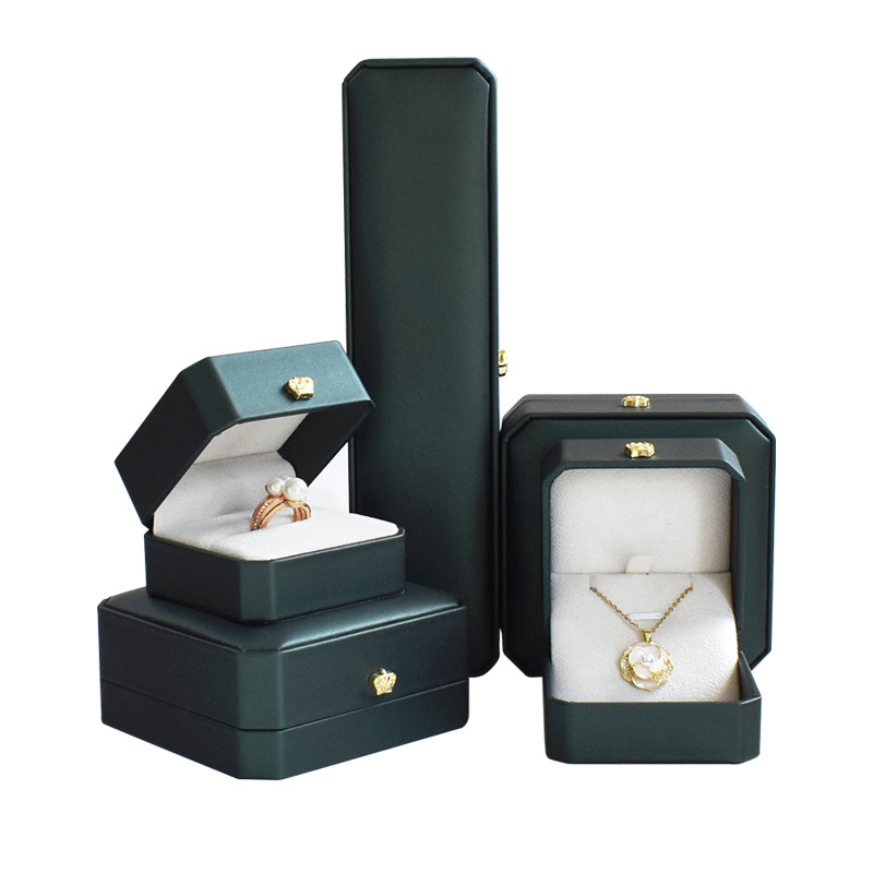 八角pu皇冠首饰盒金边皮质戒指项链珠宝盒手镯吊坠饰品包装盒批发