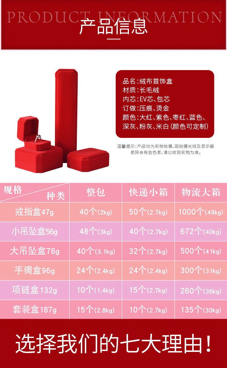 珠宝饰品首饰盒子绒布戒指吊坠盒手镯收纳包装盒项链盒首饰盒批发