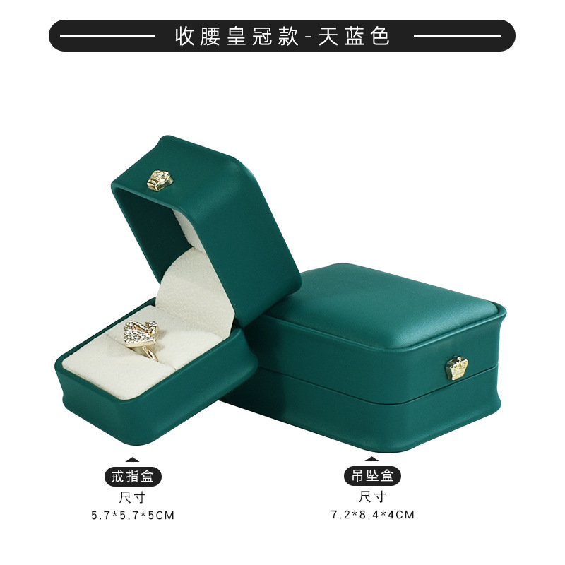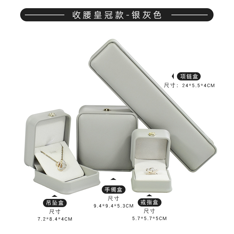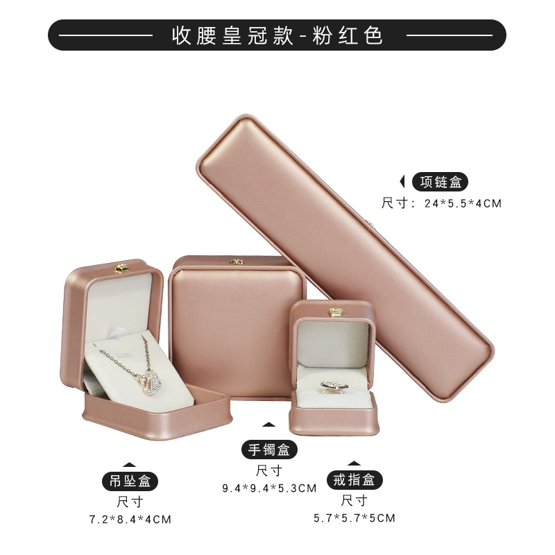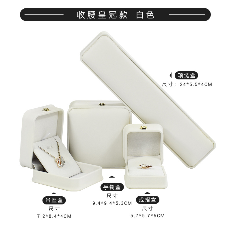 皮质收腰首饰盒皇冠金边戒指项链盒 吊坠手镯手链饰品包装盒定制