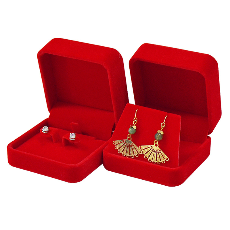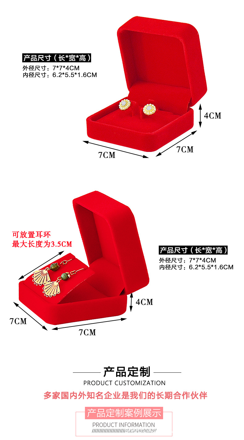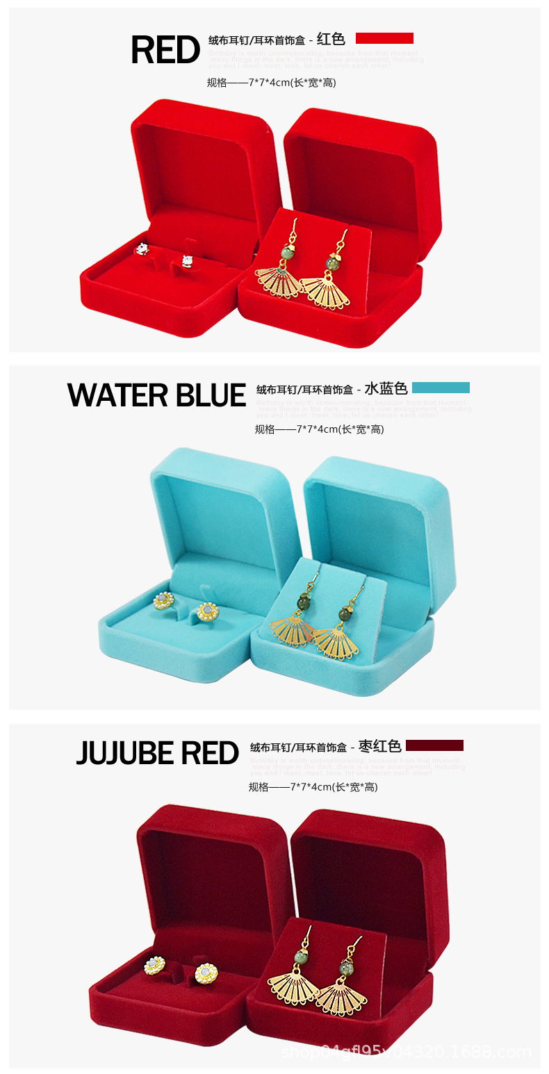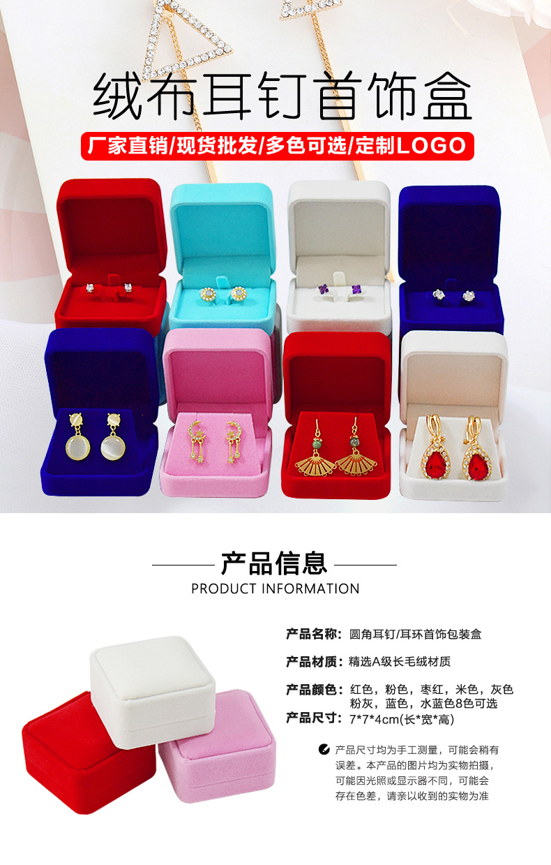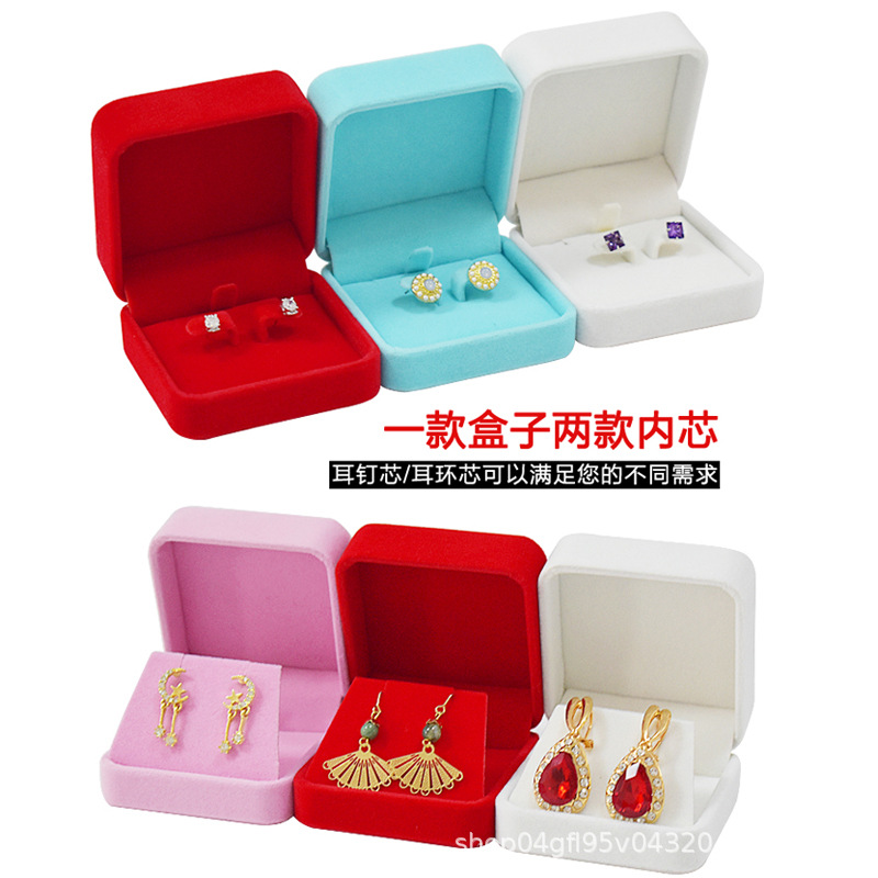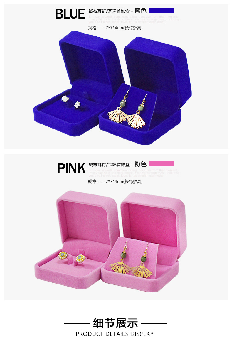厂家批发绒布耳钉盒 项链耳坠耳饰品首饰包装盒两件套pu耳环盒