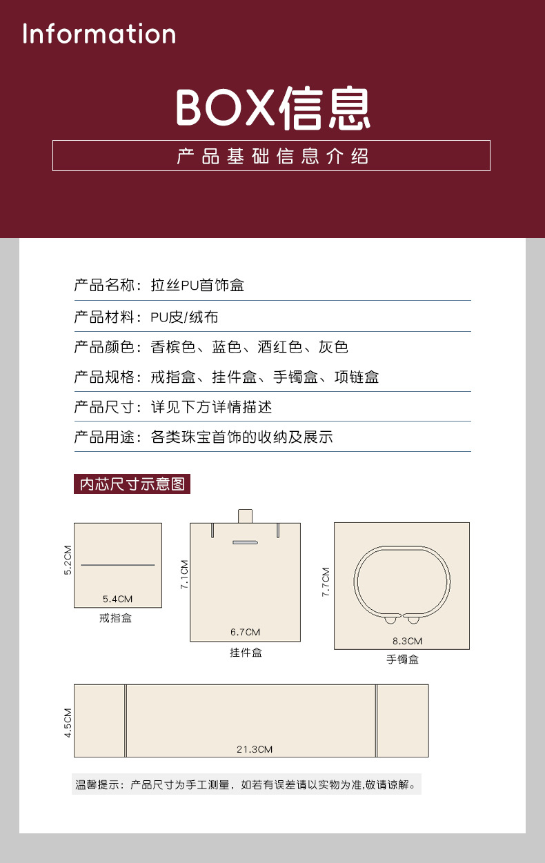 厂家定制拉丝PU皮首饰盒戒指手镯黄金包装盒珠宝吊坠项链礼品盒