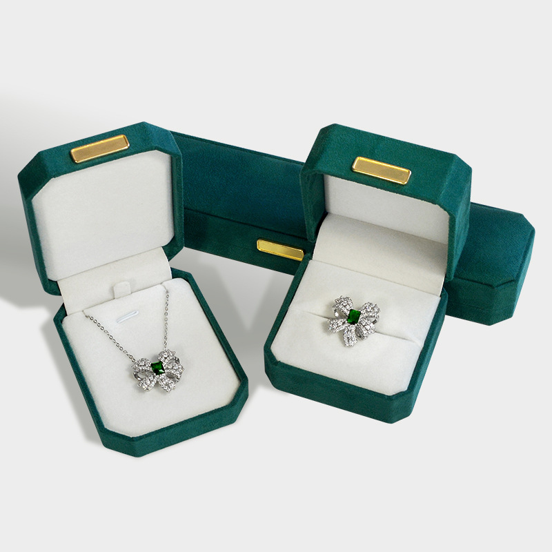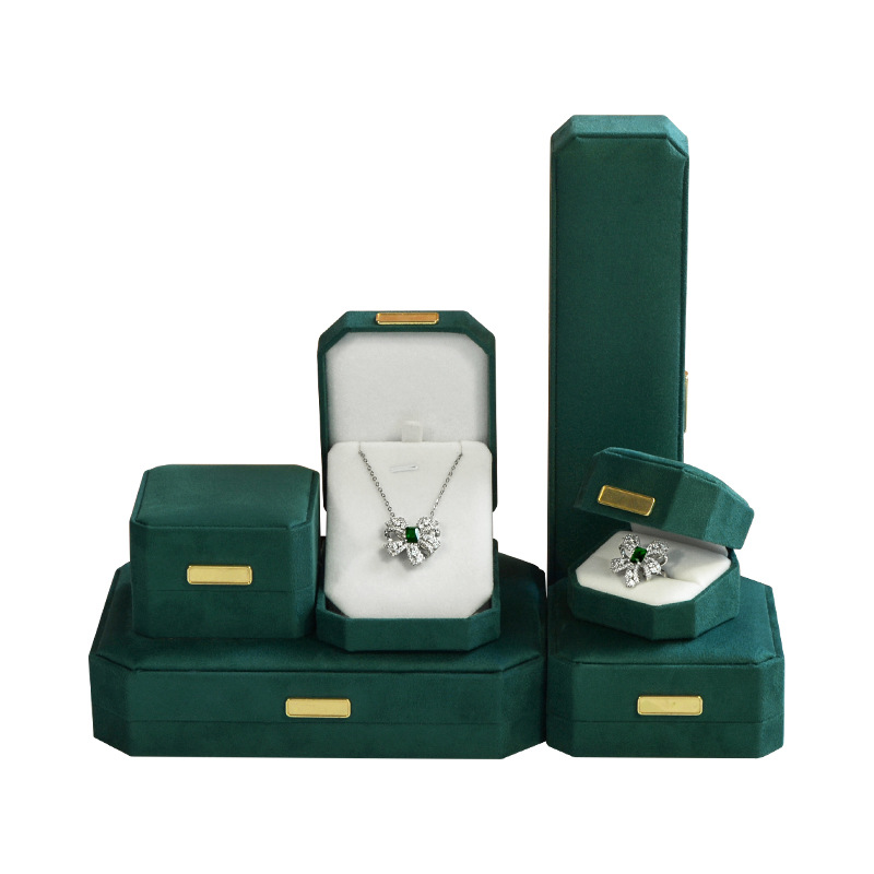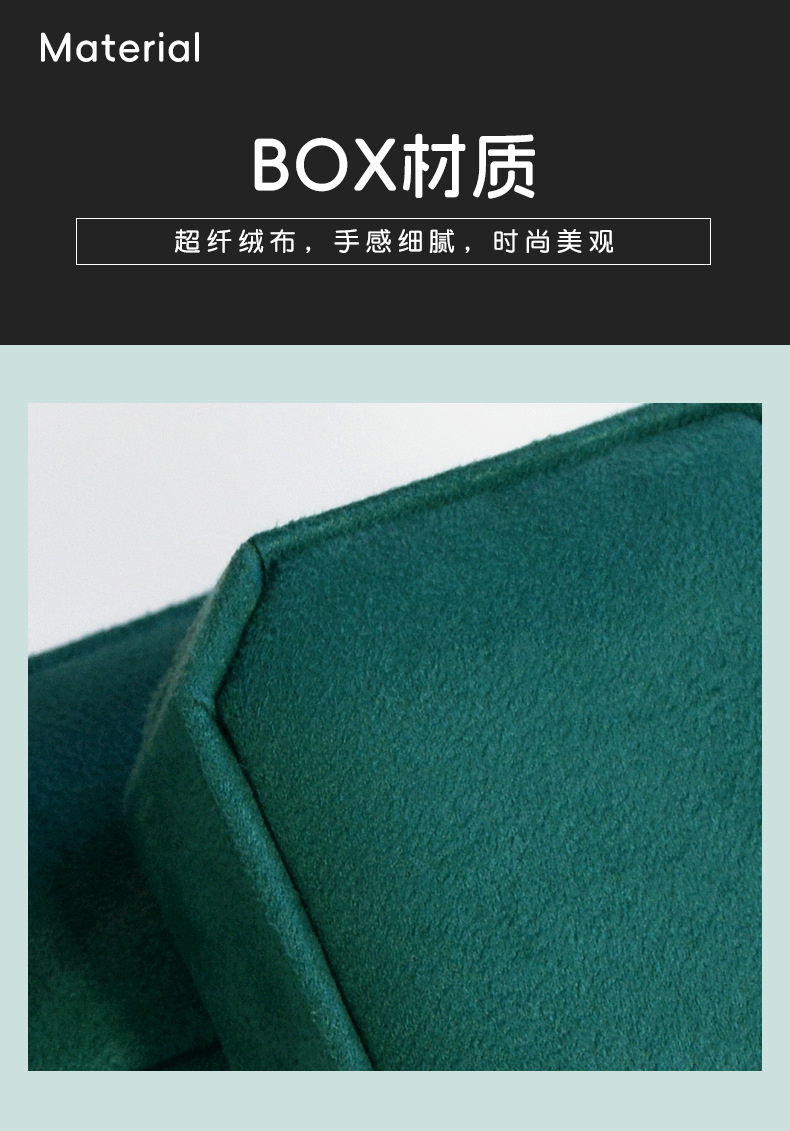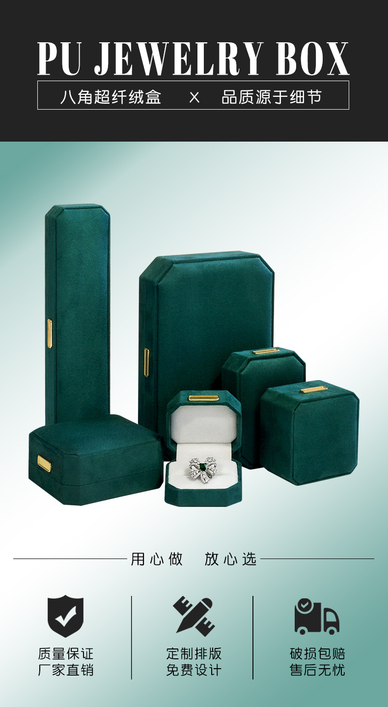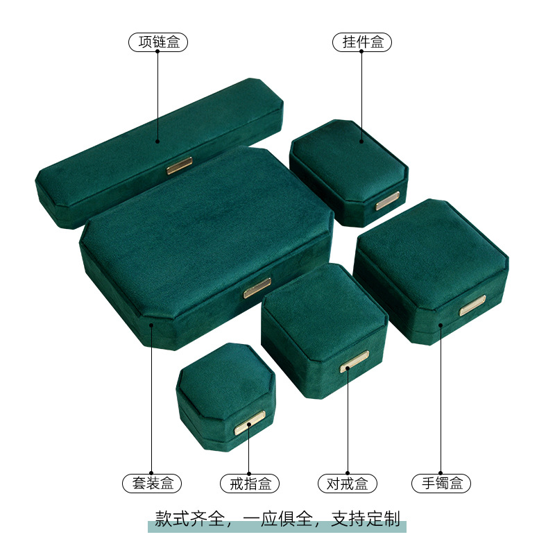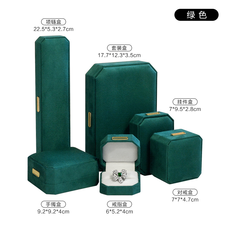 绿色超纤首饰盒 轻奢绒布戒指盒八角吊坠手镯对戒项链珠宝包装盒
