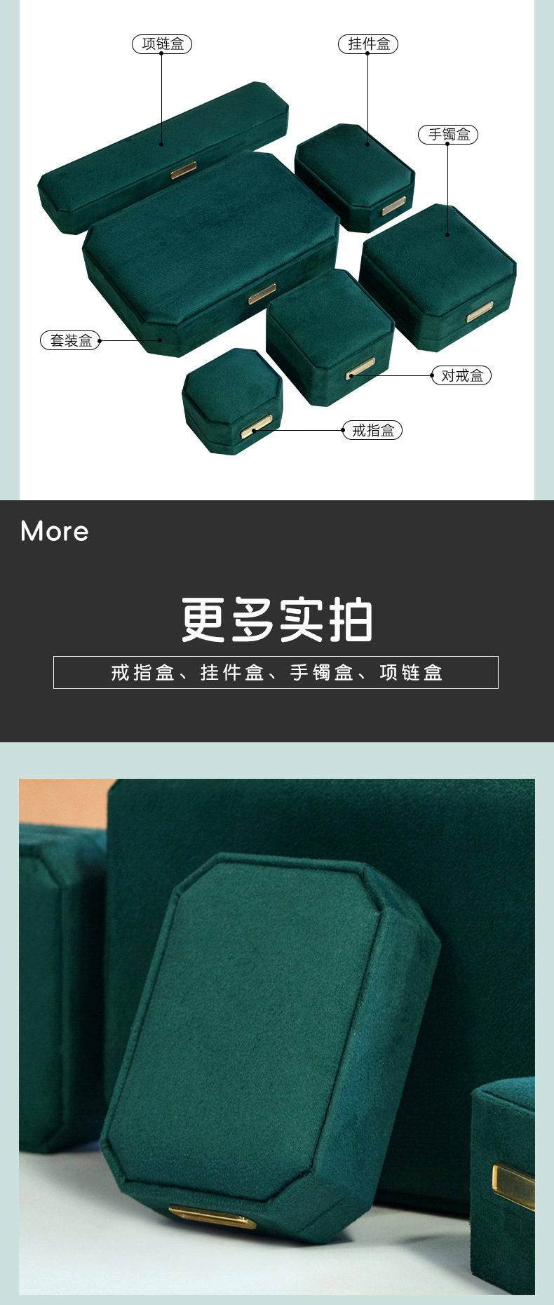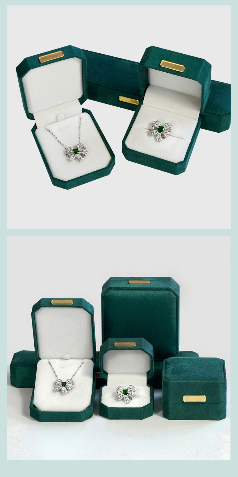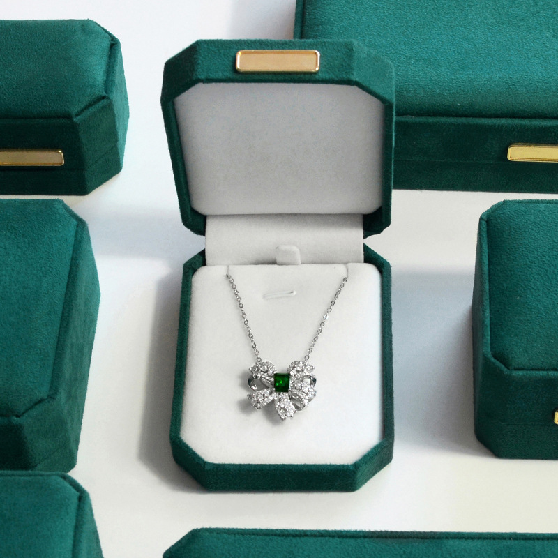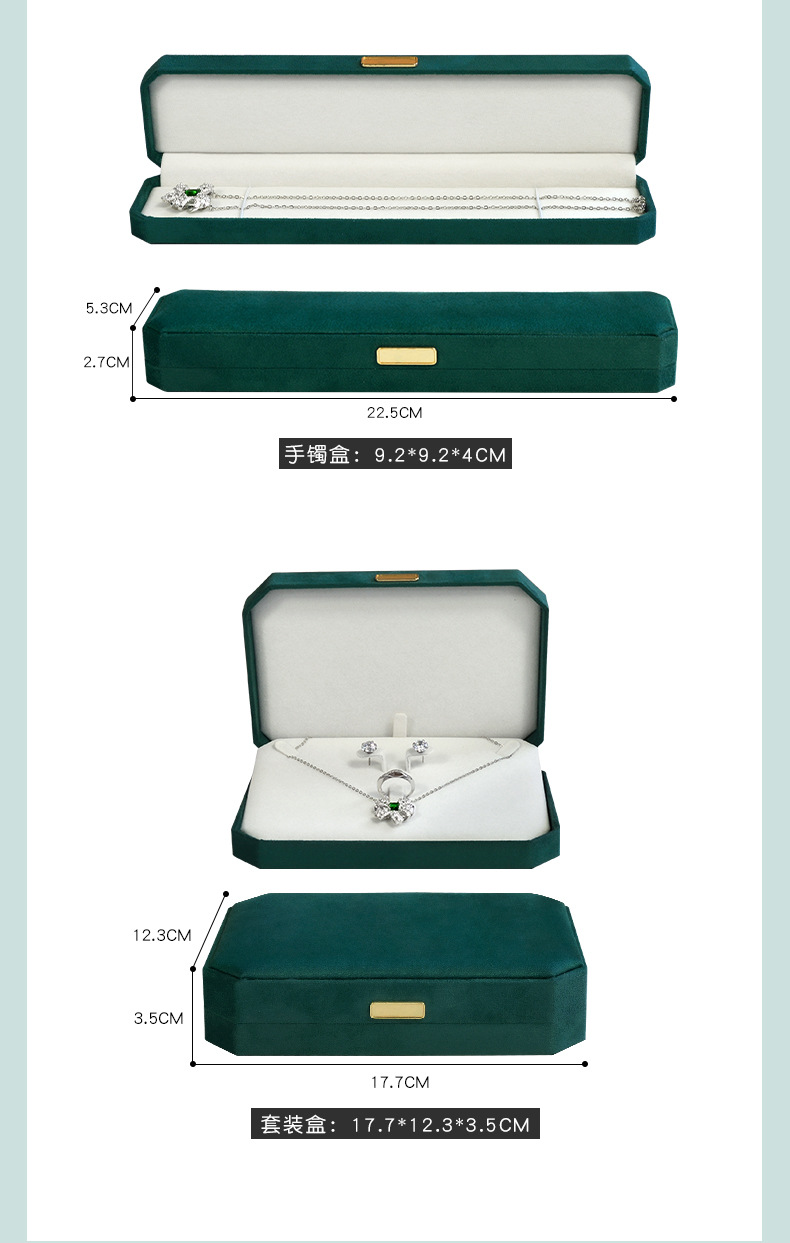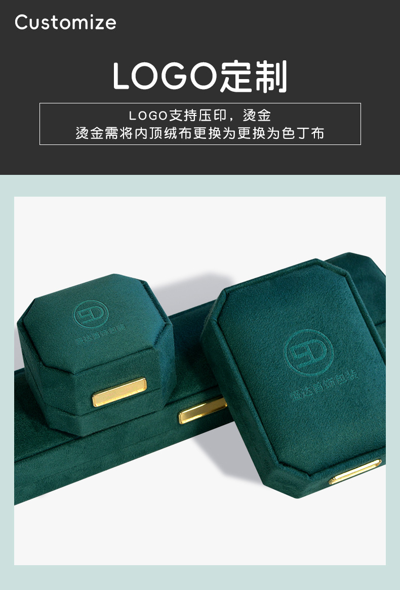 绿色超纤首饰盒 轻奢绒布戒指盒八角吊坠手镯对戒项链珠宝包装盒