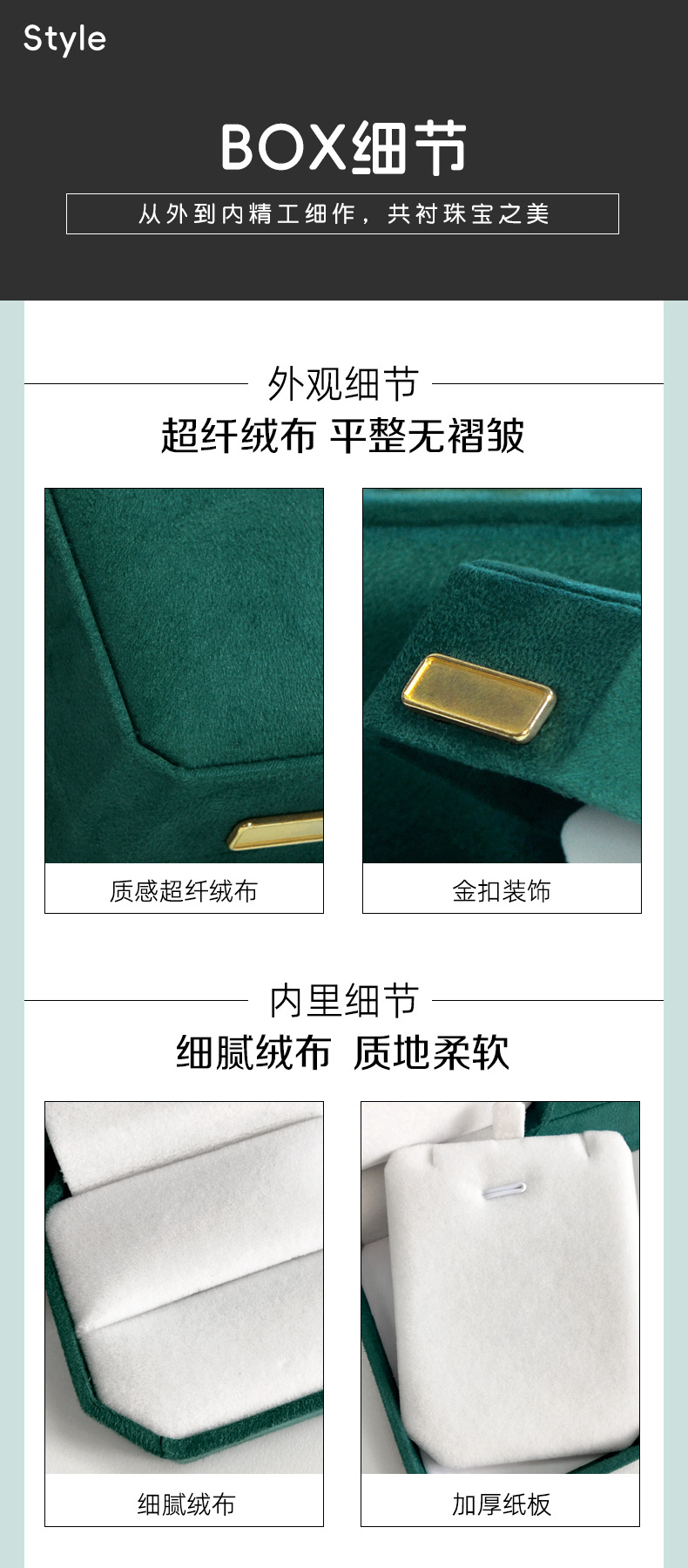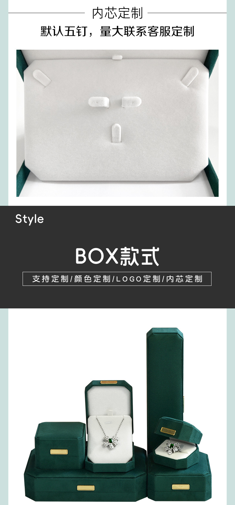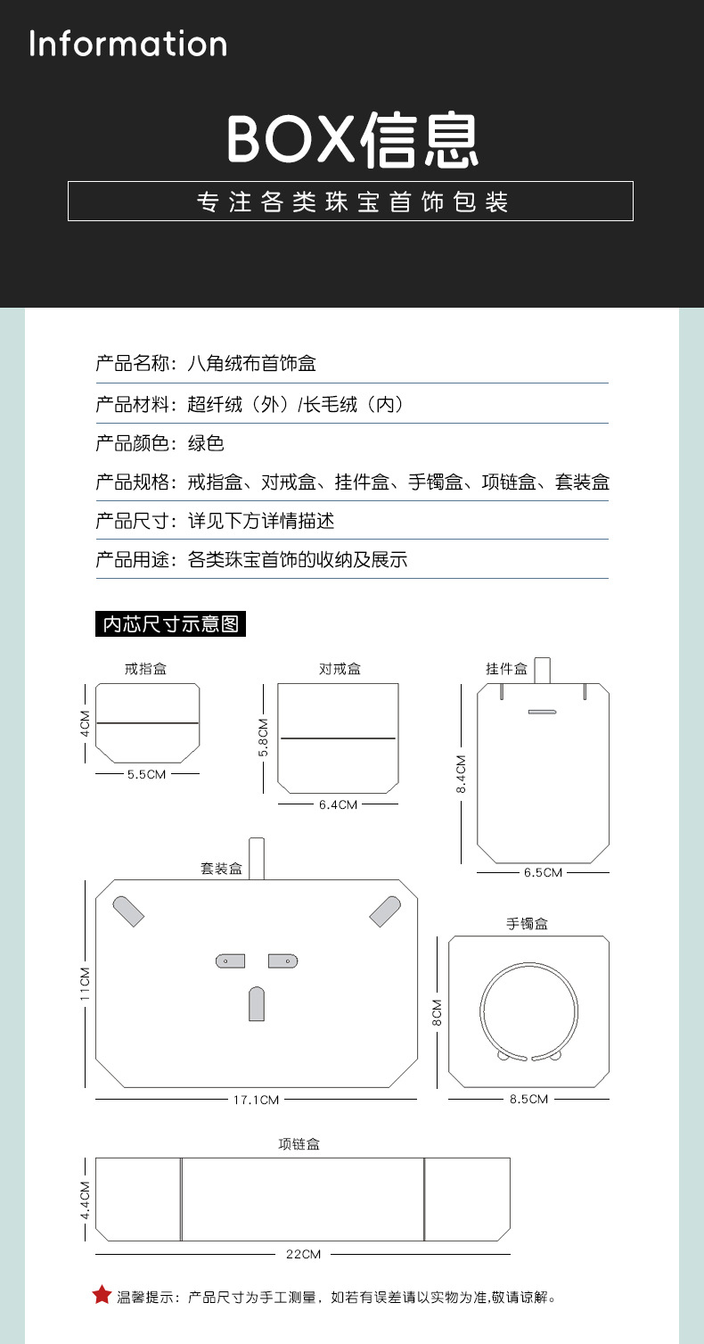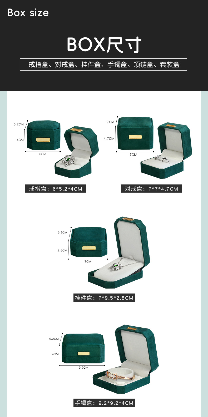 绿色超纤首饰盒 轻奢绒布戒指盒八角吊坠手镯对戒项链珠宝包装盒