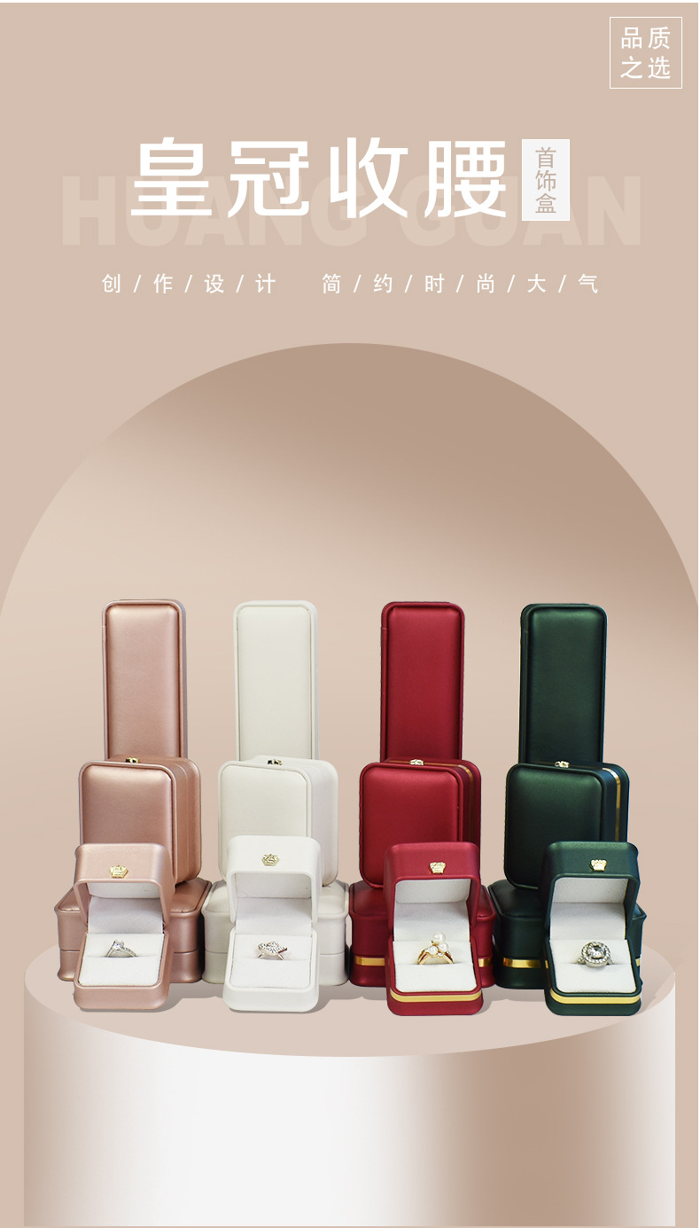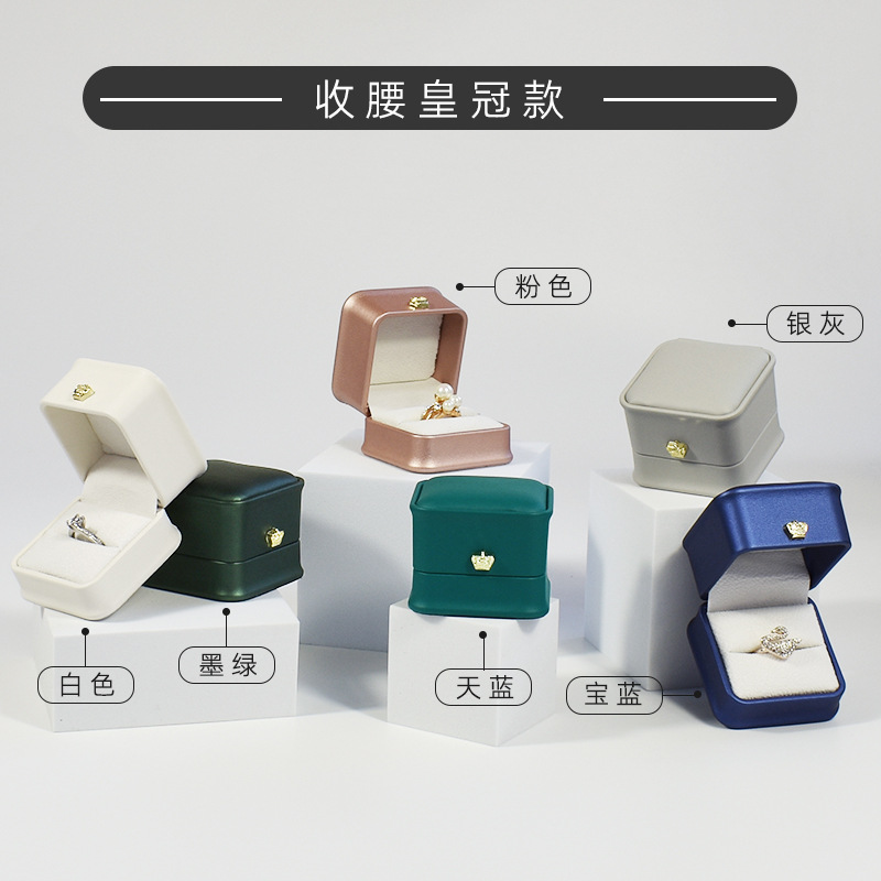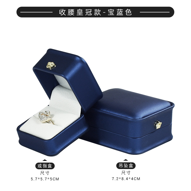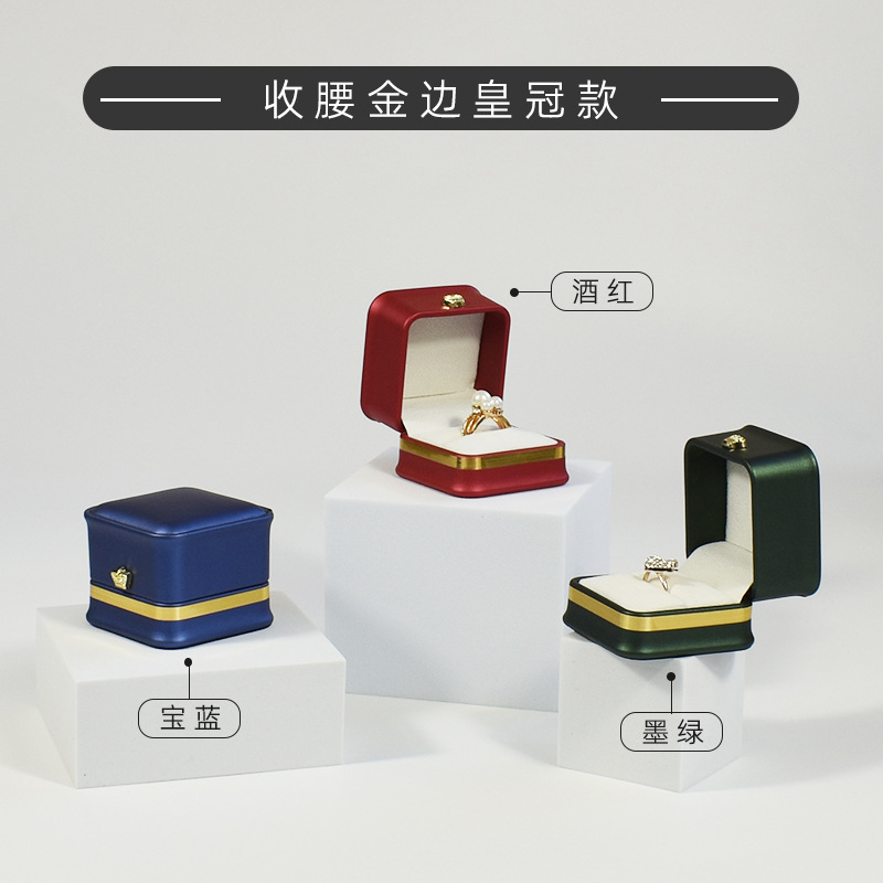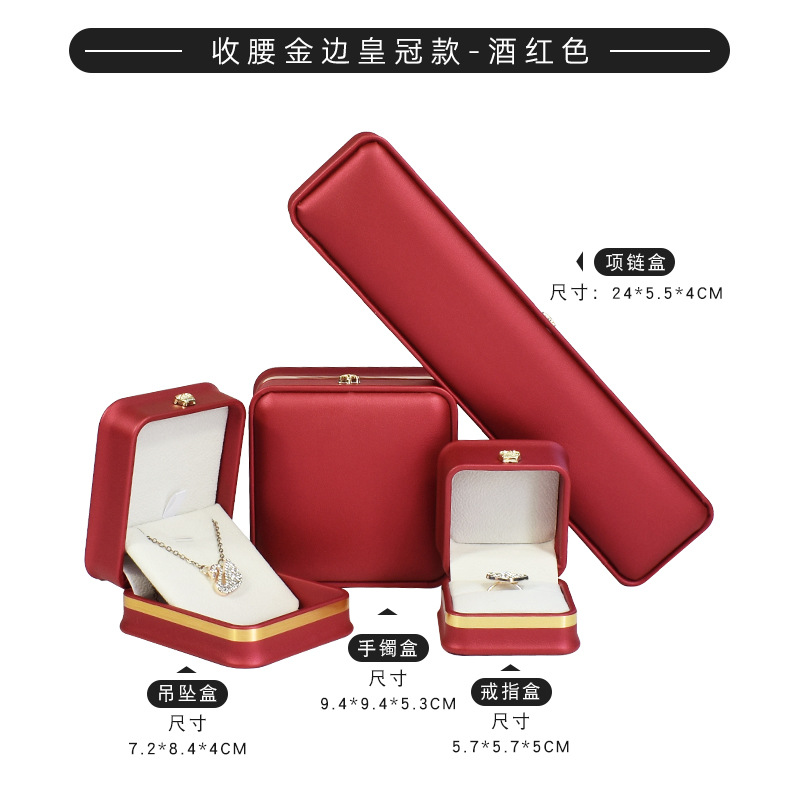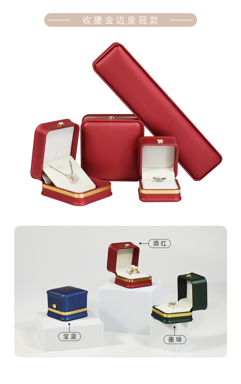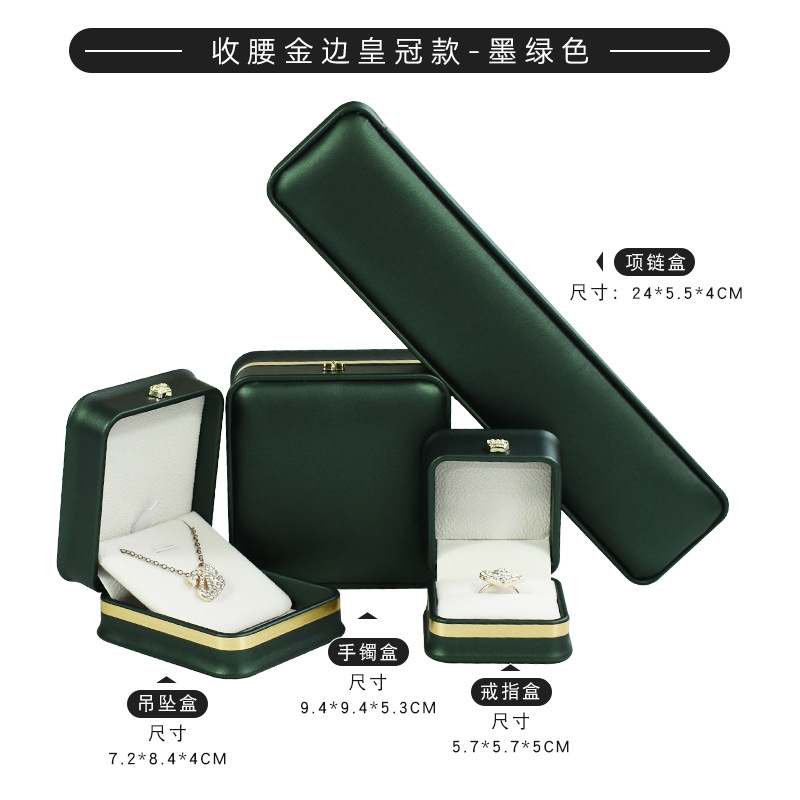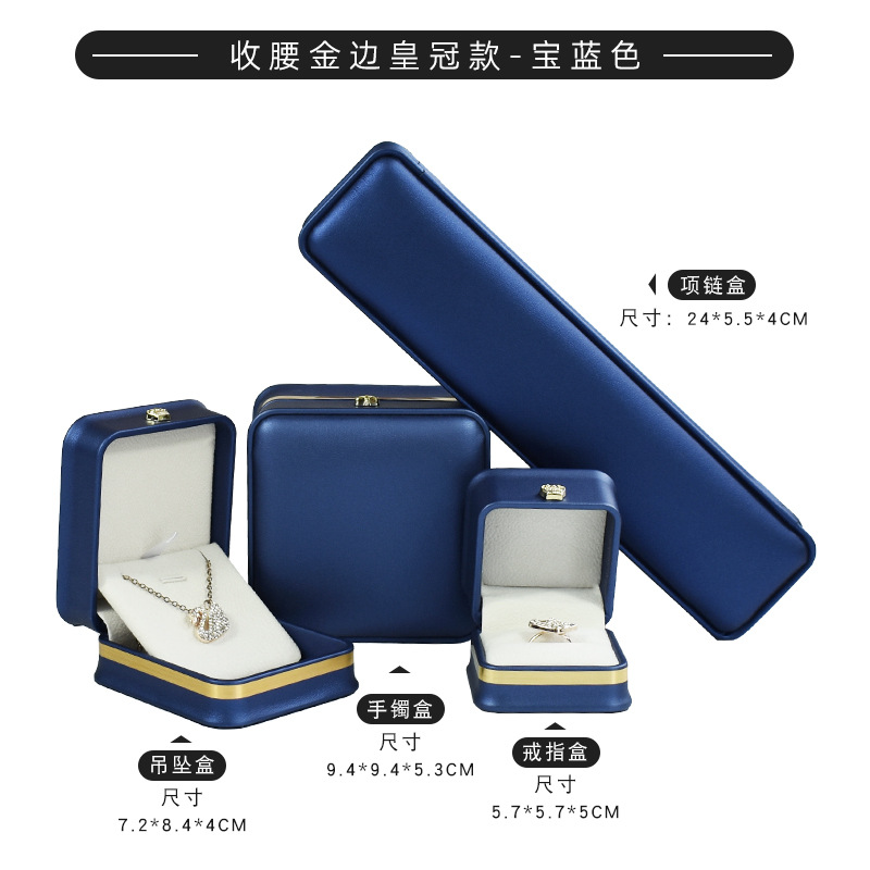现货皮质收腰首饰盒皇冠金边戒指项链盒 吊坠手镯手链饰品包装盒