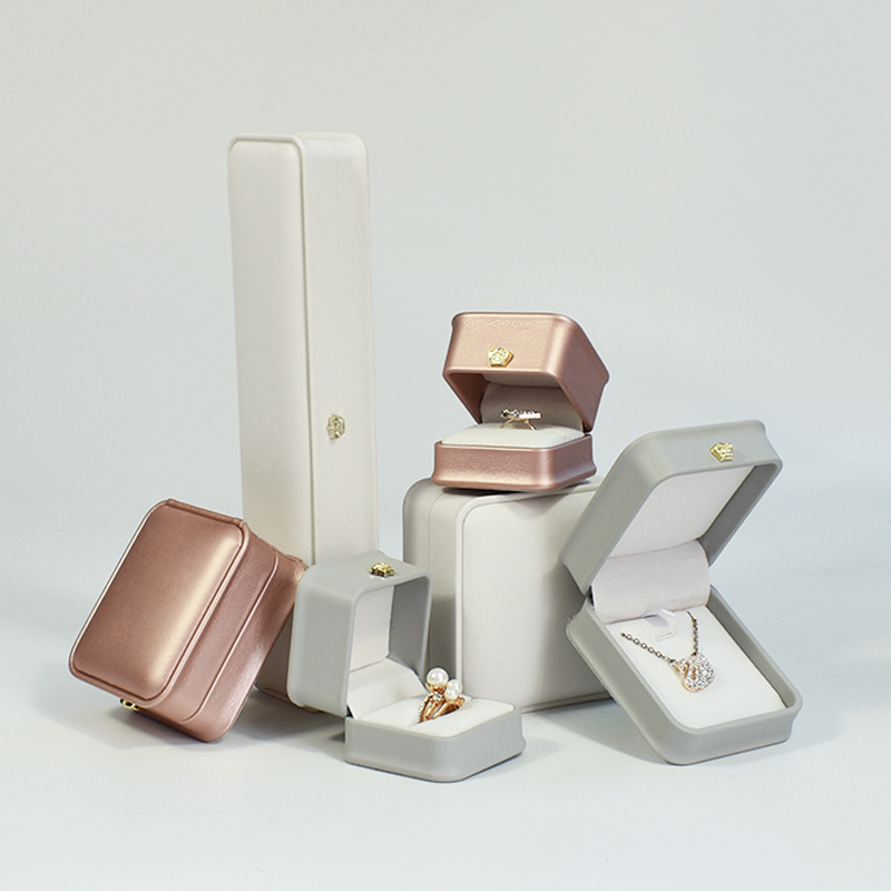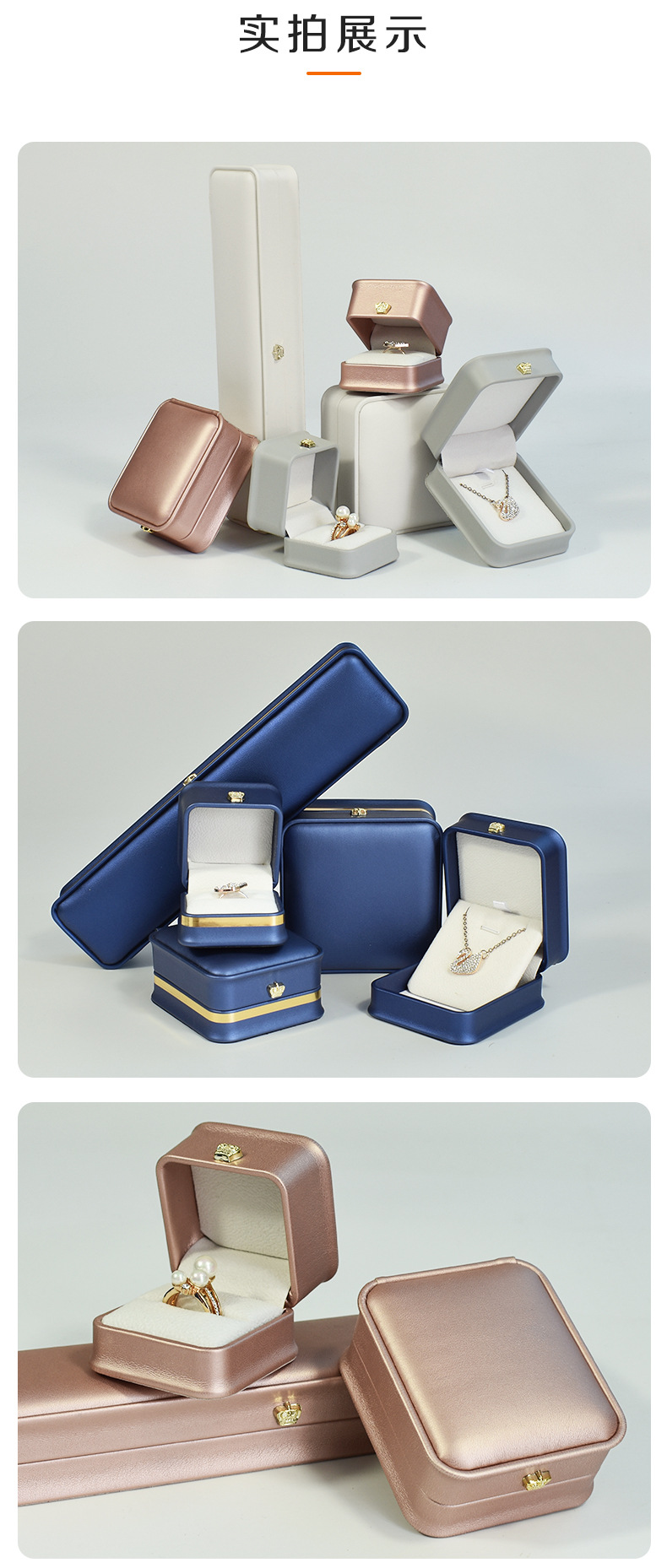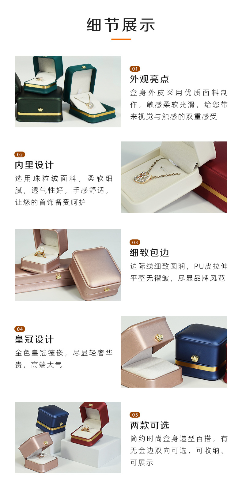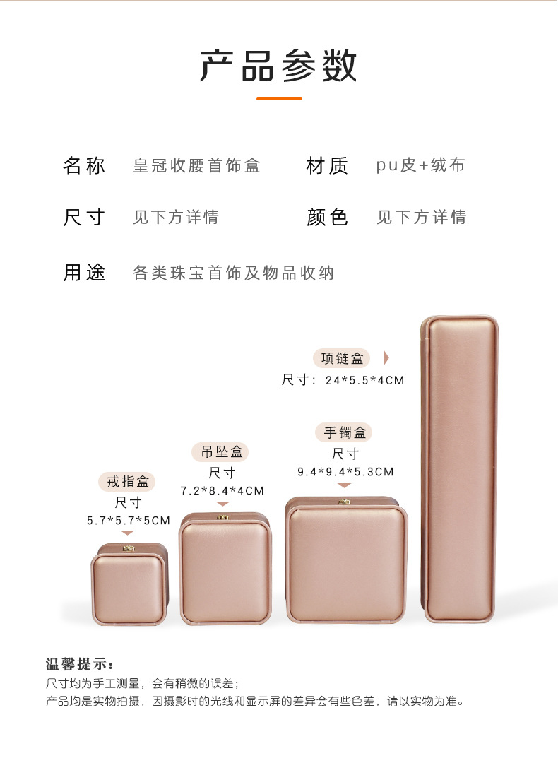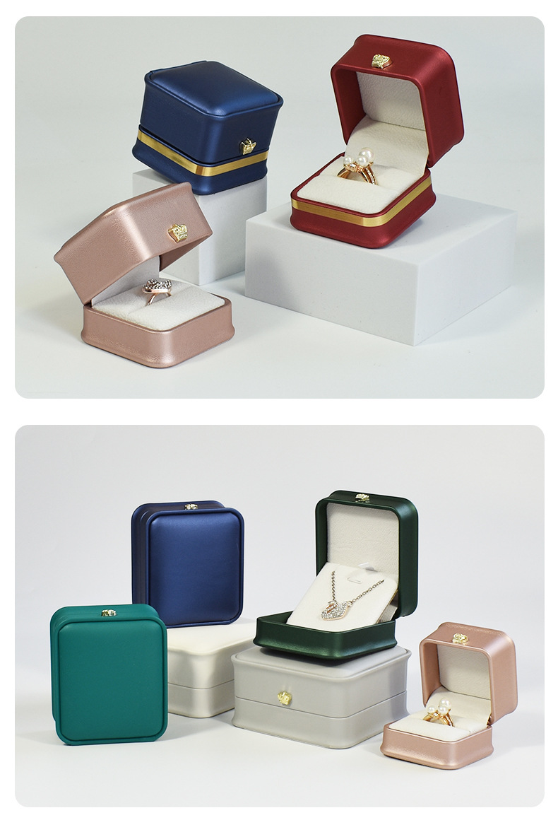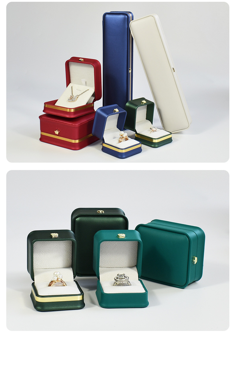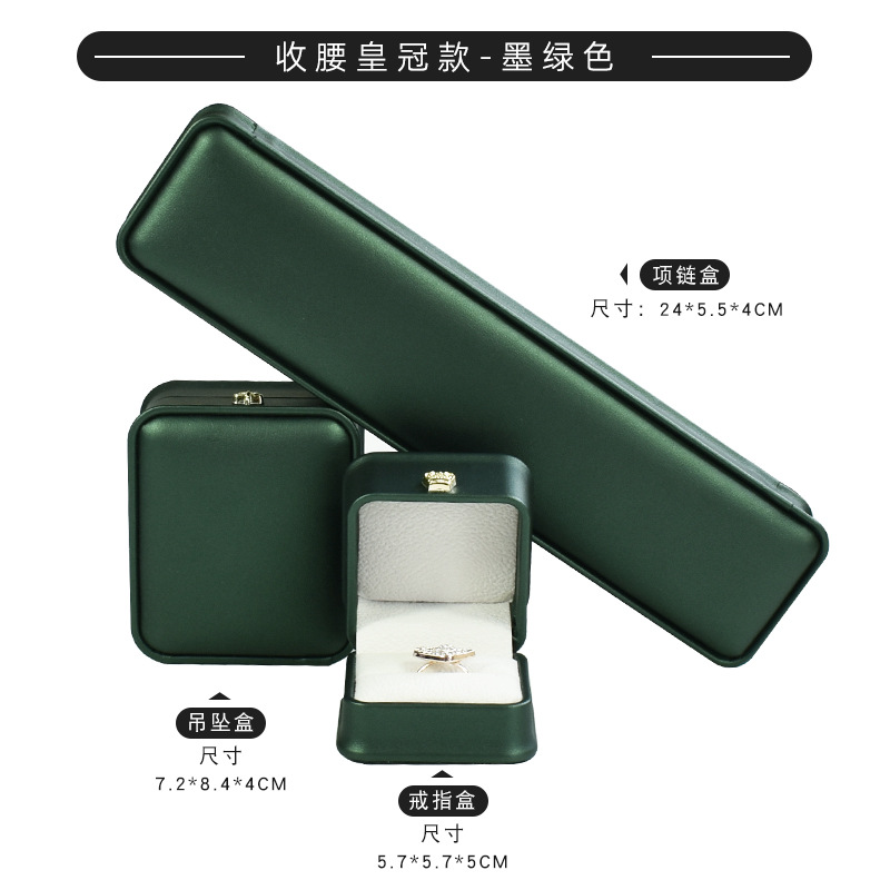 现货皮质收腰首饰盒皇冠金边戒指项链盒 吊坠手镯手链饰品包装盒