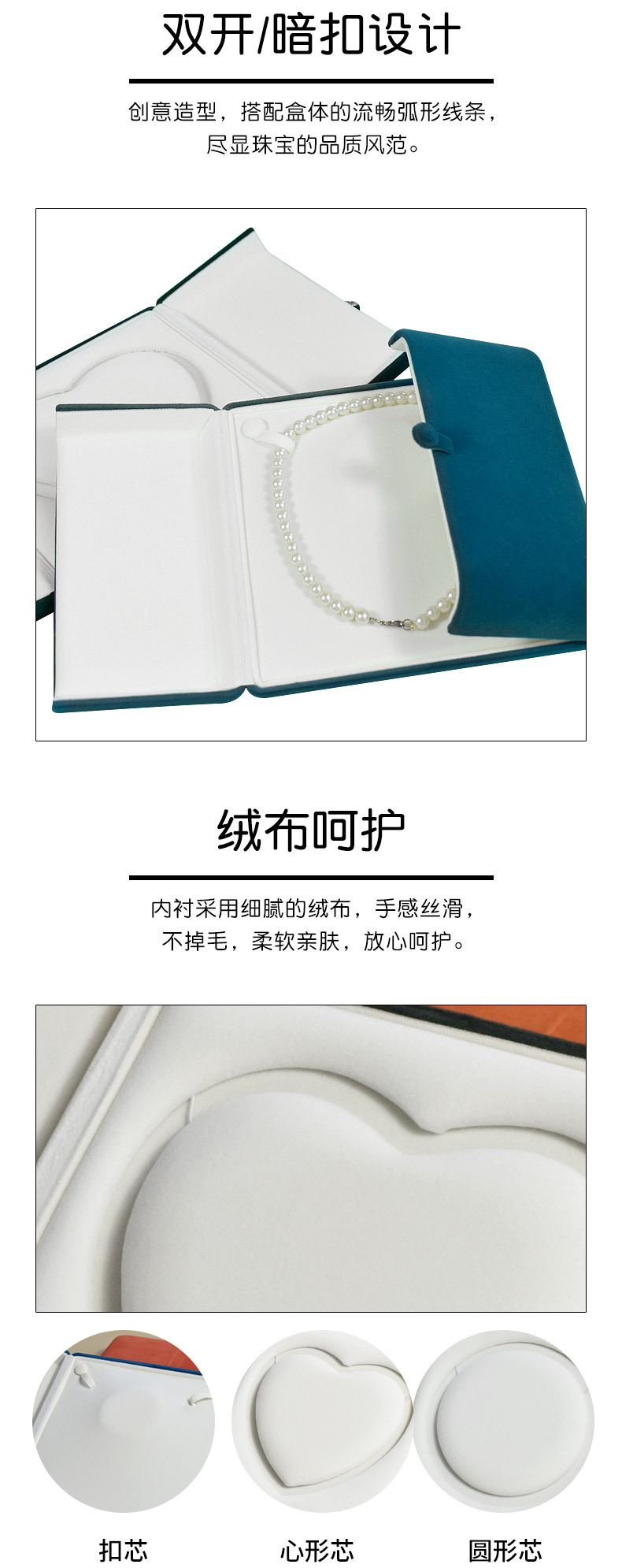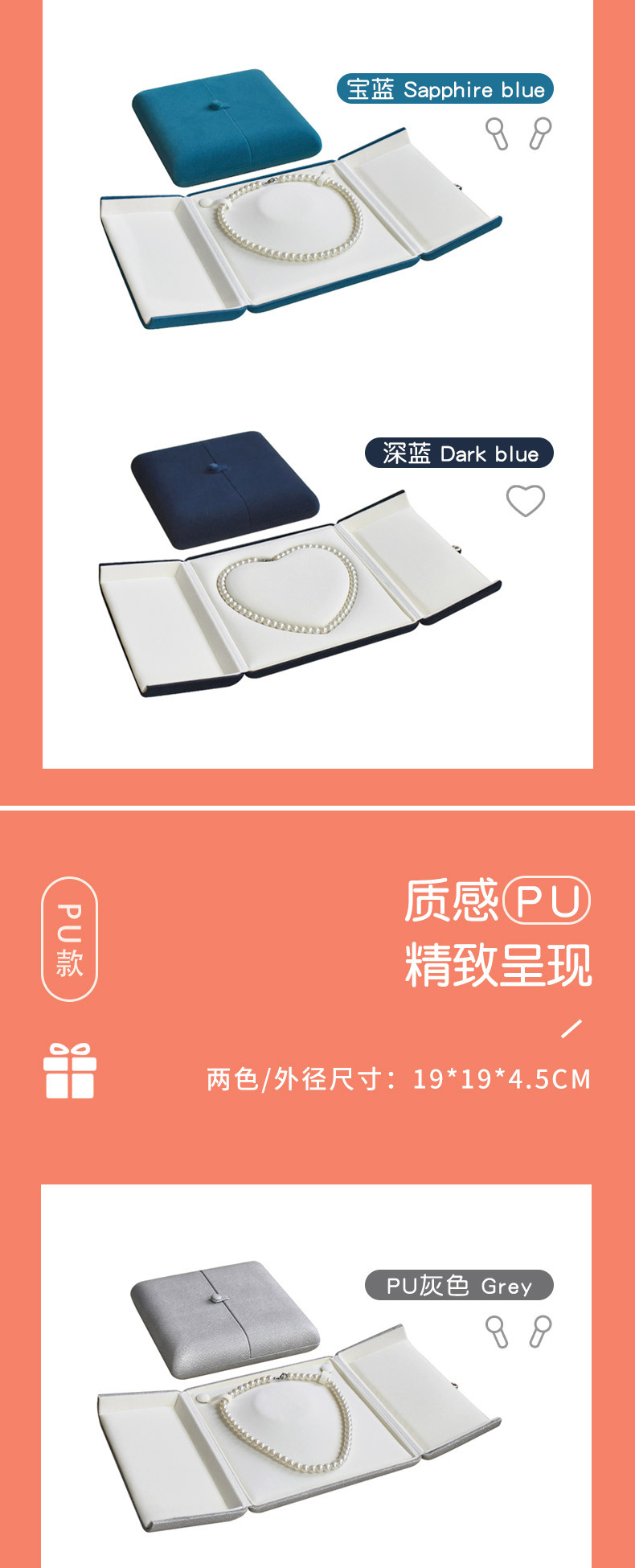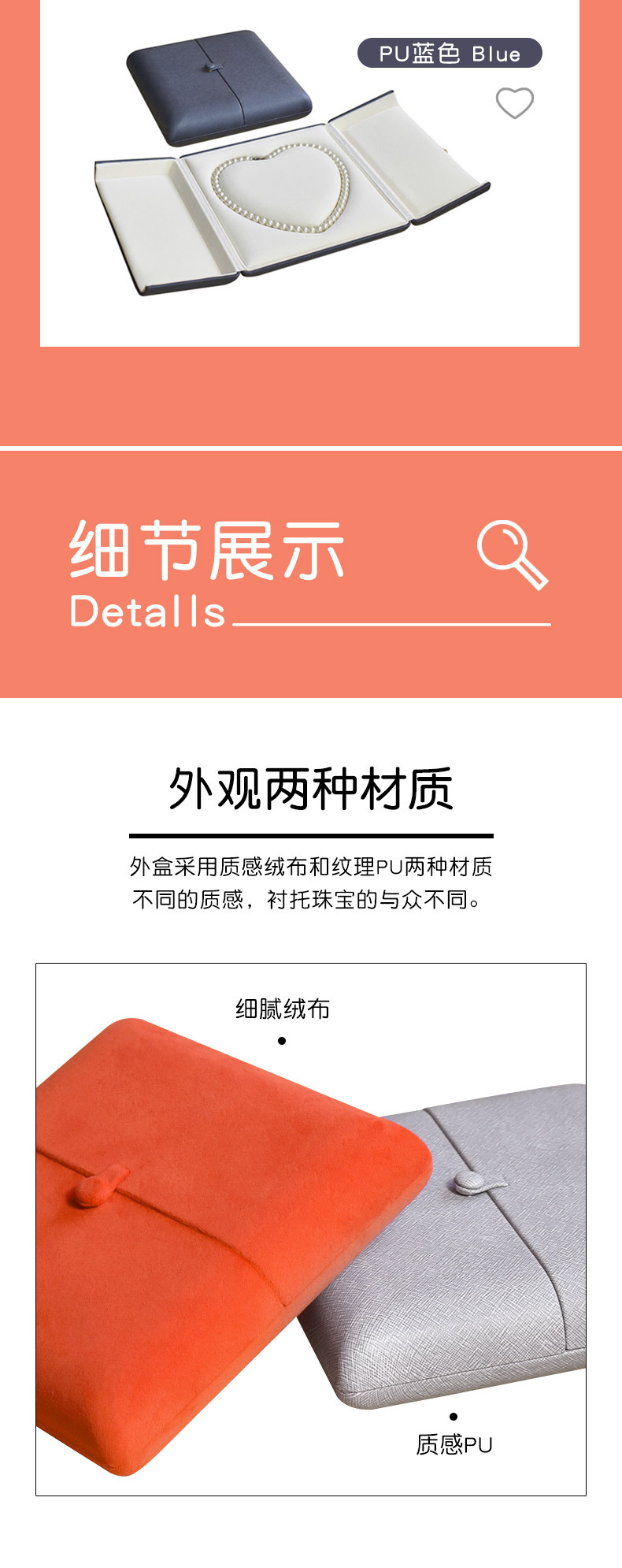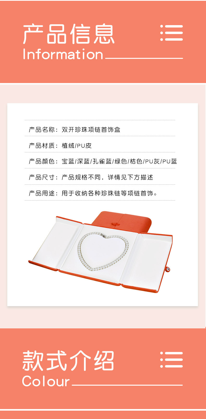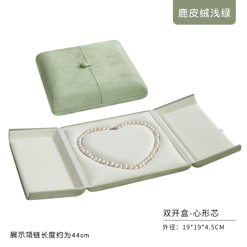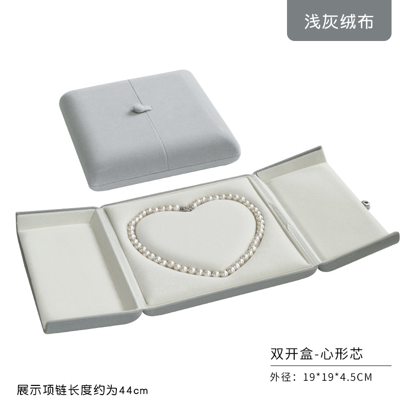 新款珍珠套链盒心形珍珠项链盒双开按扣首饰盒送妈妈母亲节礼物盒