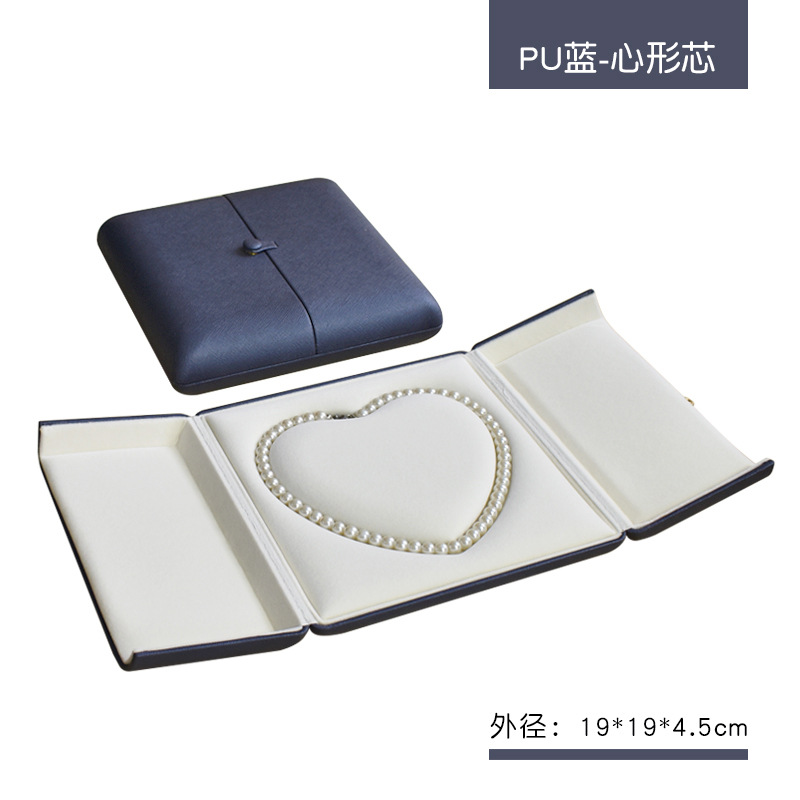 新款珍珠套链盒心形珍珠项链盒双开按扣首饰盒送妈妈母亲节礼物盒