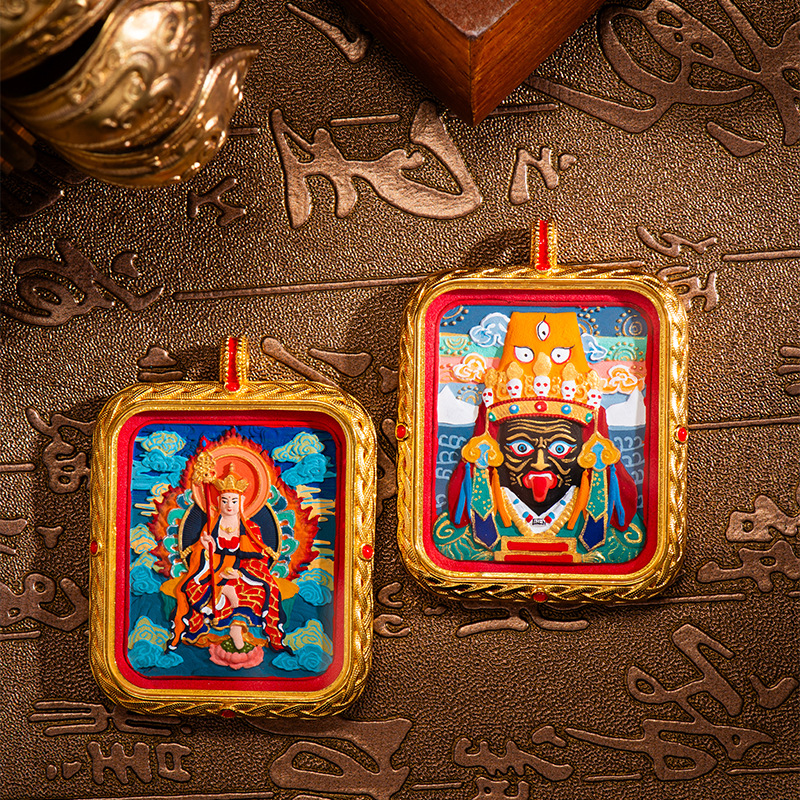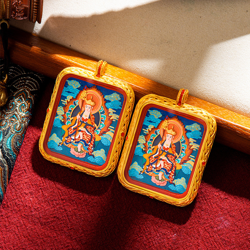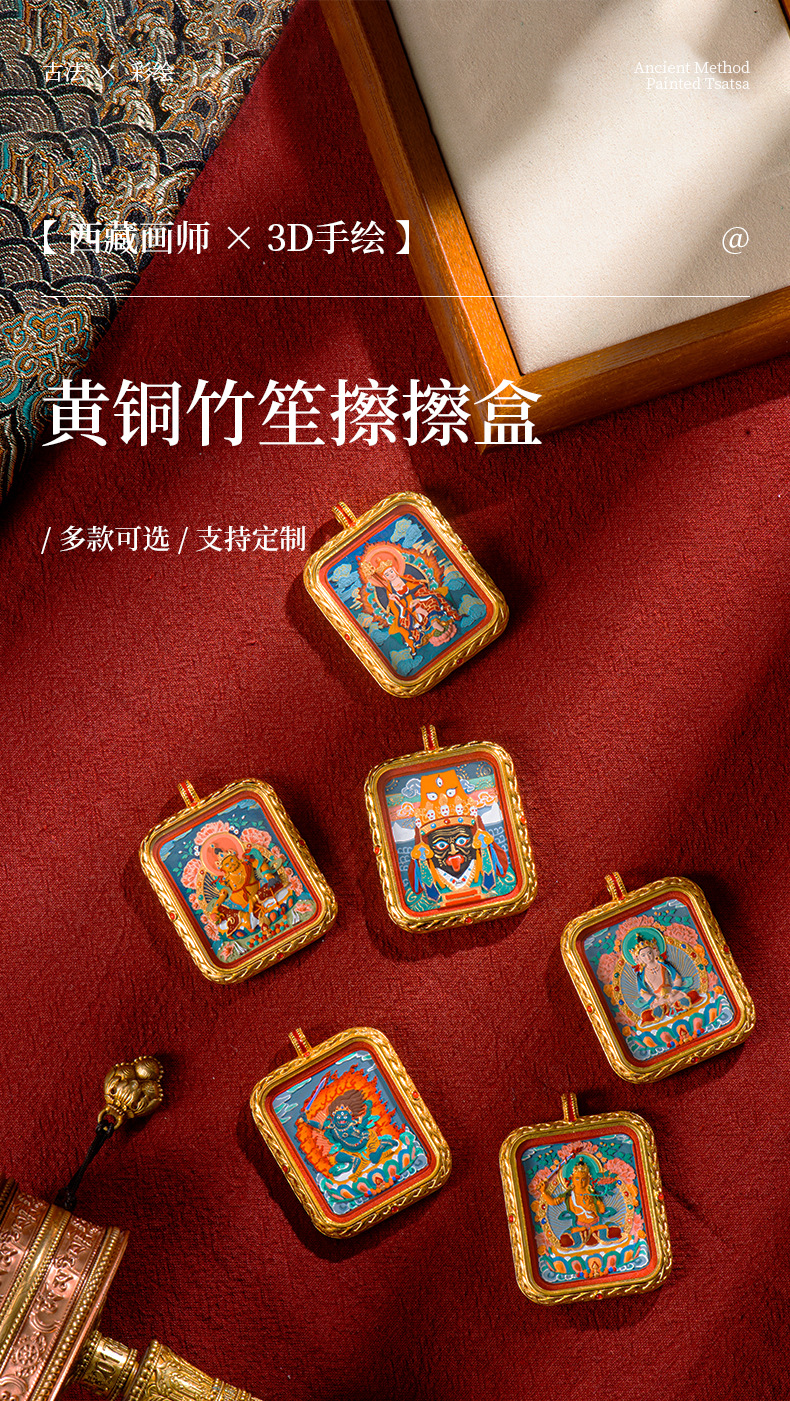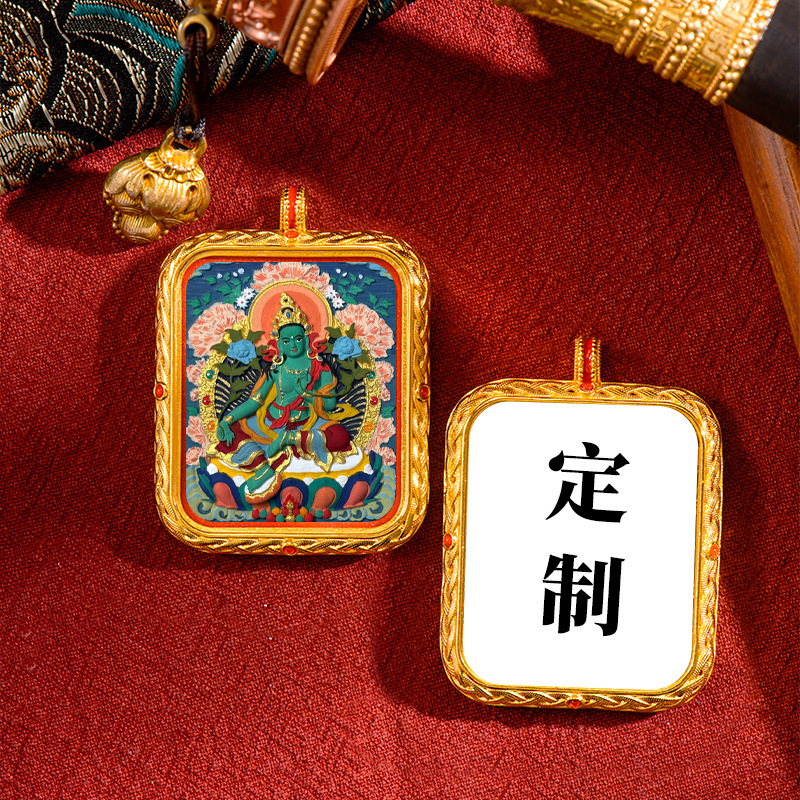 手绘擦擦唐卡吊坠扎基拉姆五爷绿度母前世今生可定图擦擦唐卡吊坠