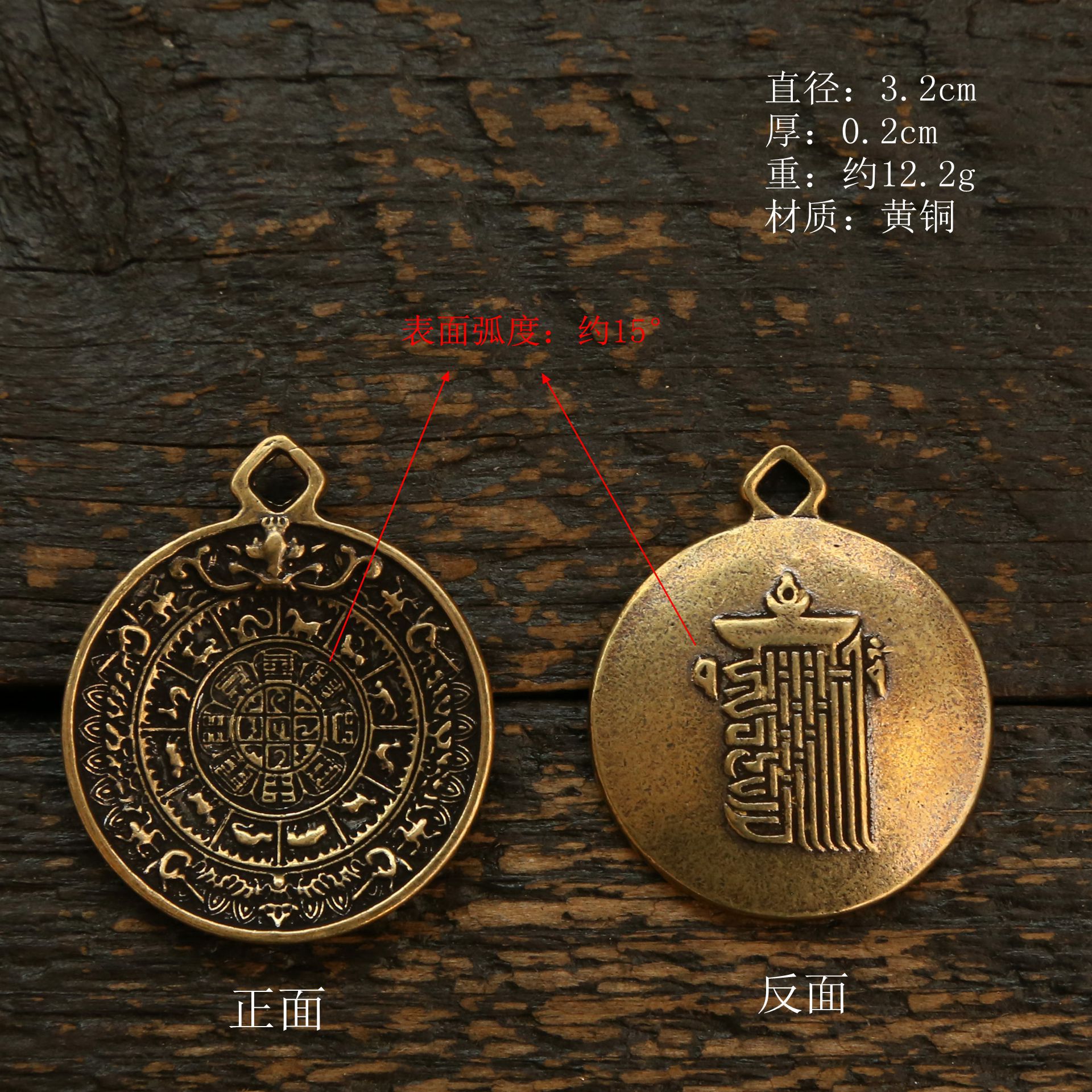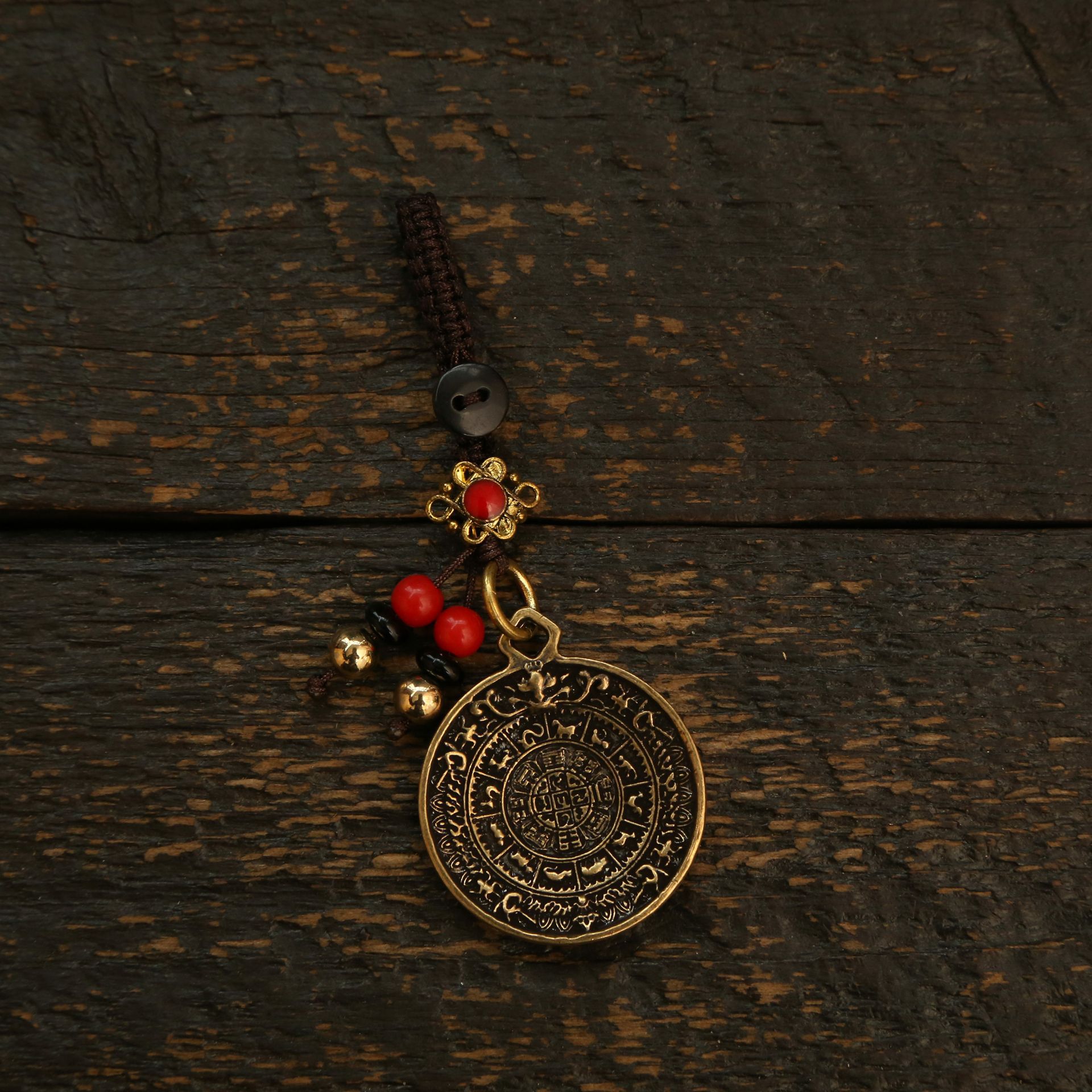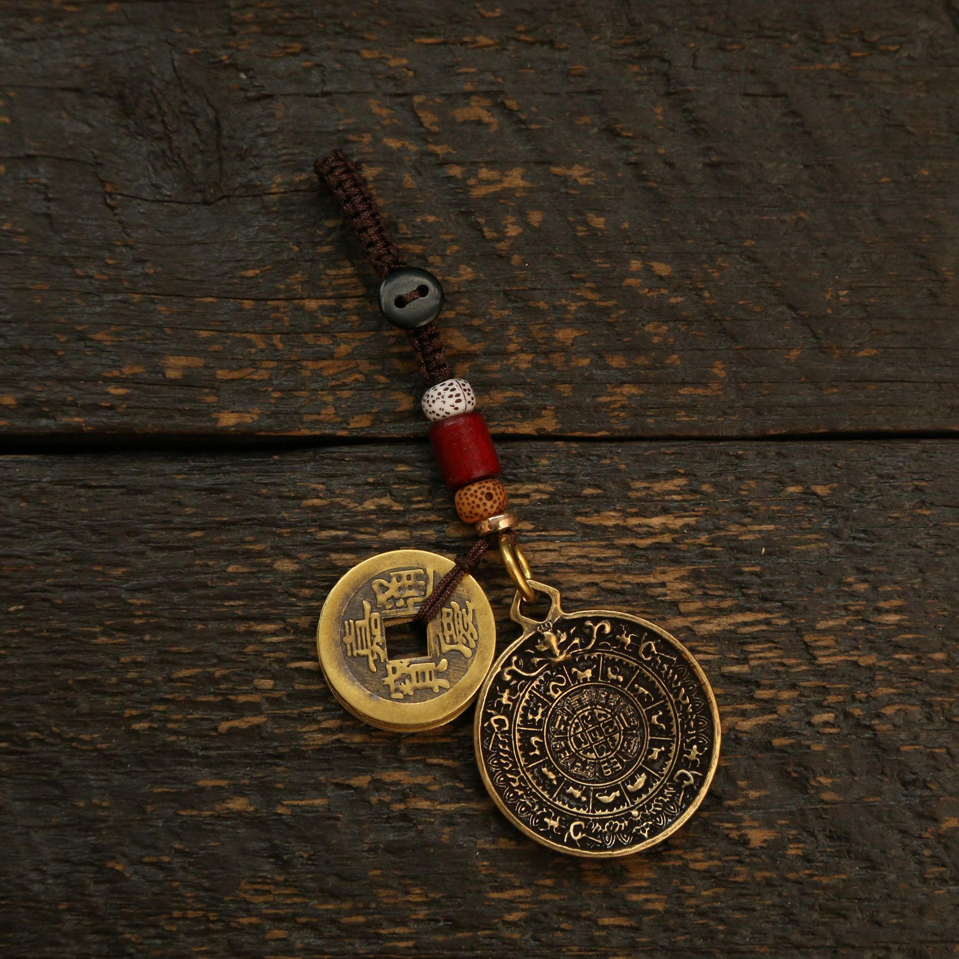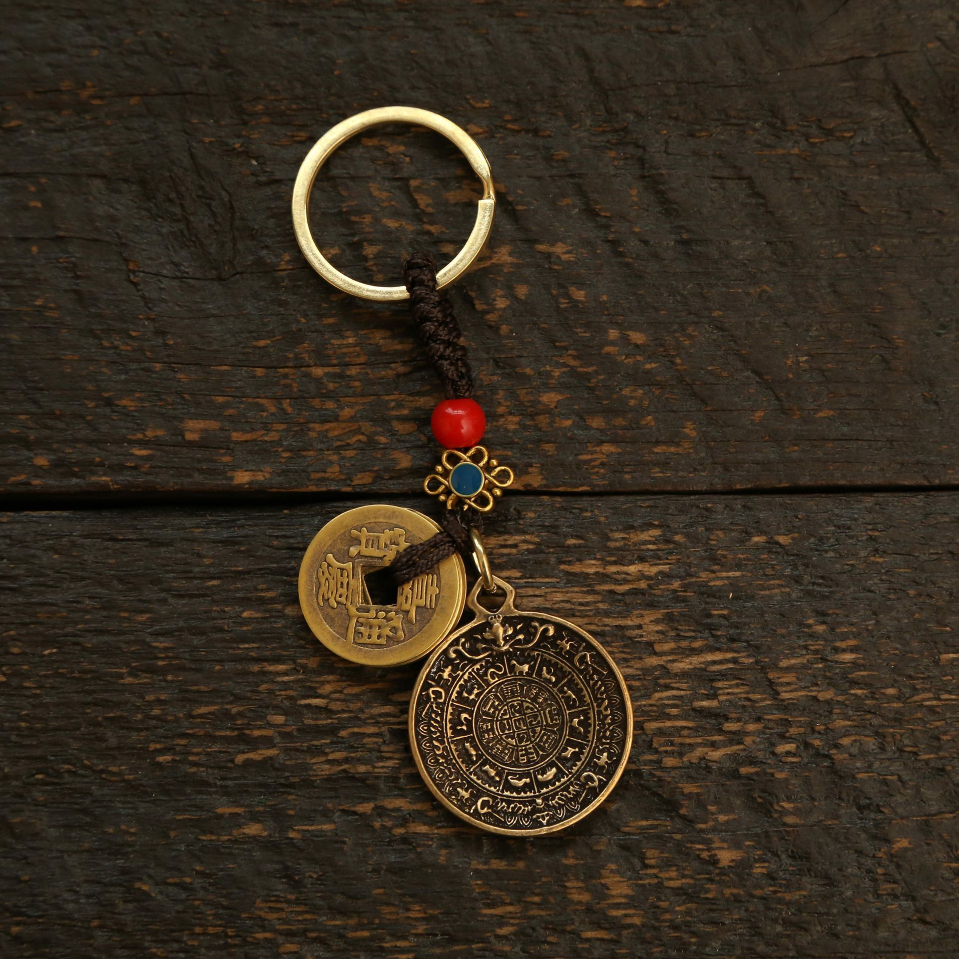 黄铜九宫八卦十二生肖圆牌钥匙扣吊坠挂件 腰挂藏式复古饰品吊坠