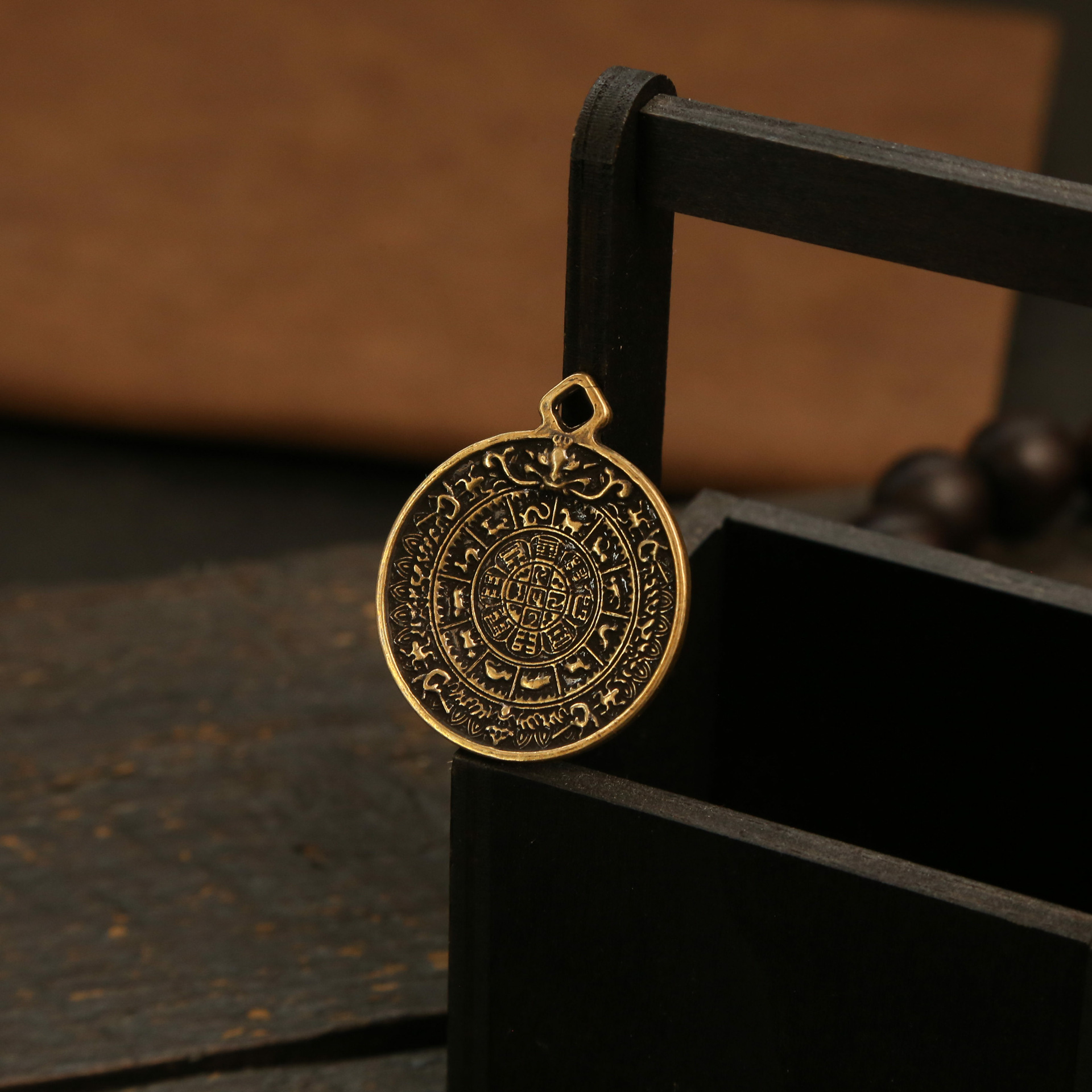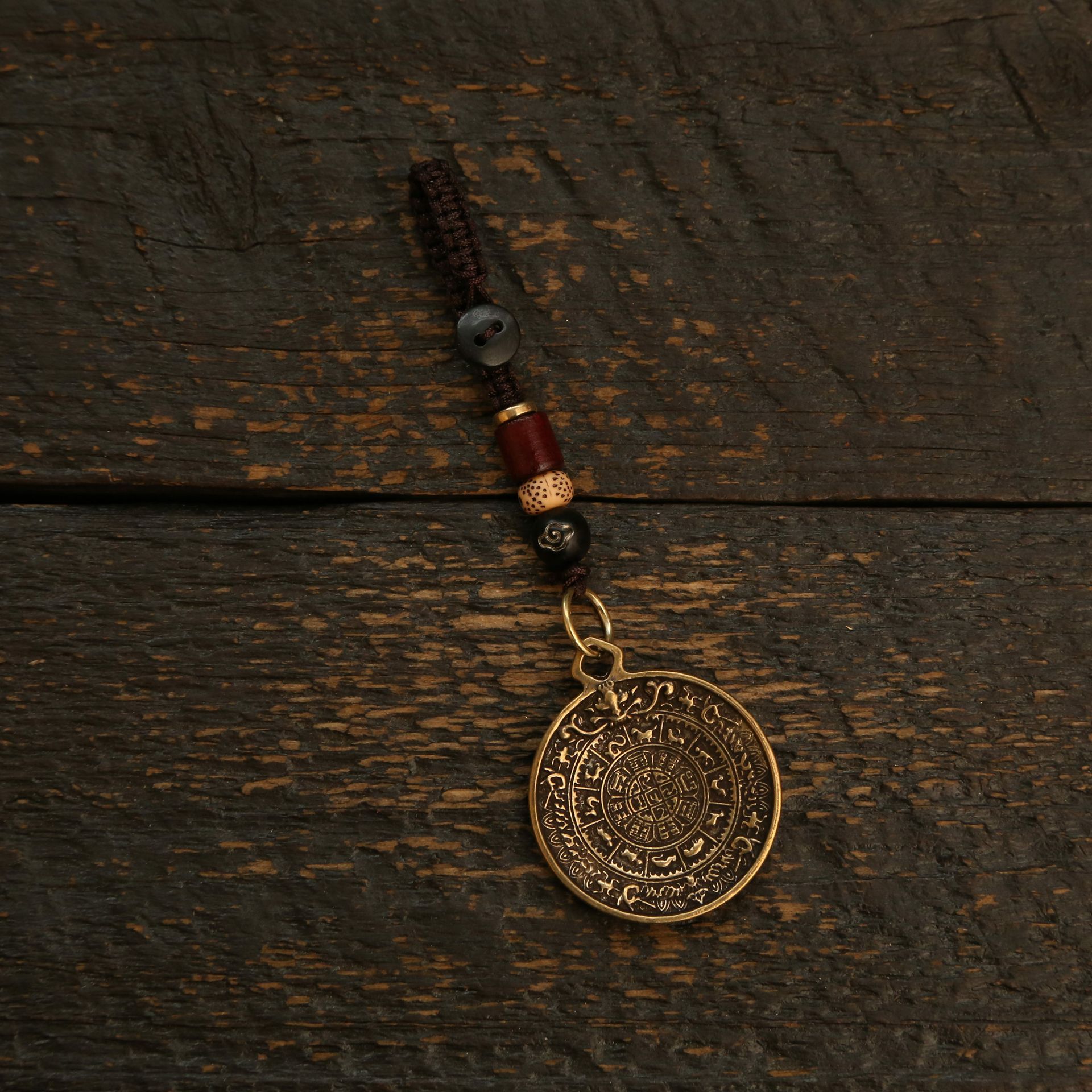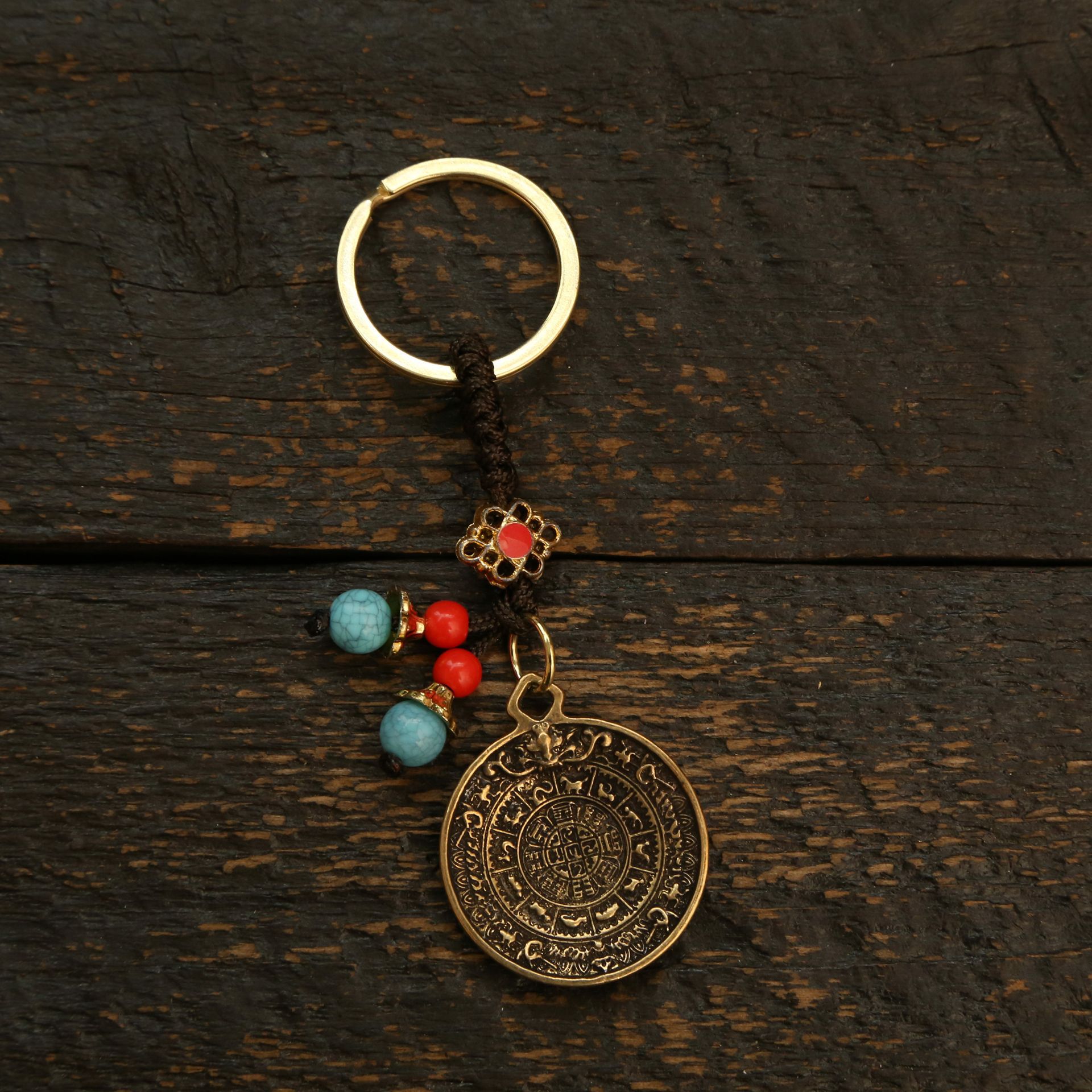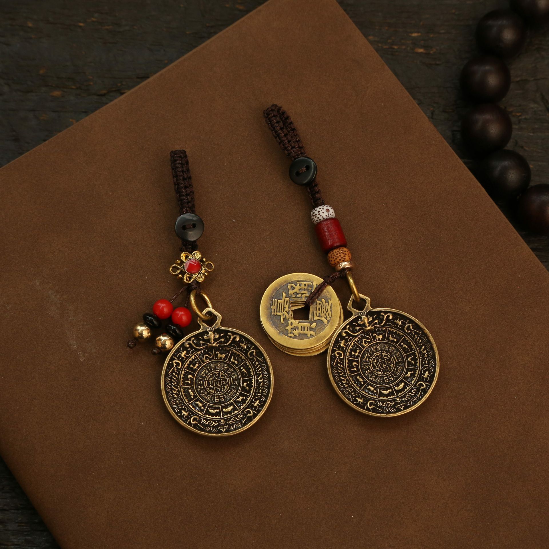 黄铜九宫八卦十二生肖圆牌钥匙扣吊坠挂件 腰挂藏式复古饰品吊坠