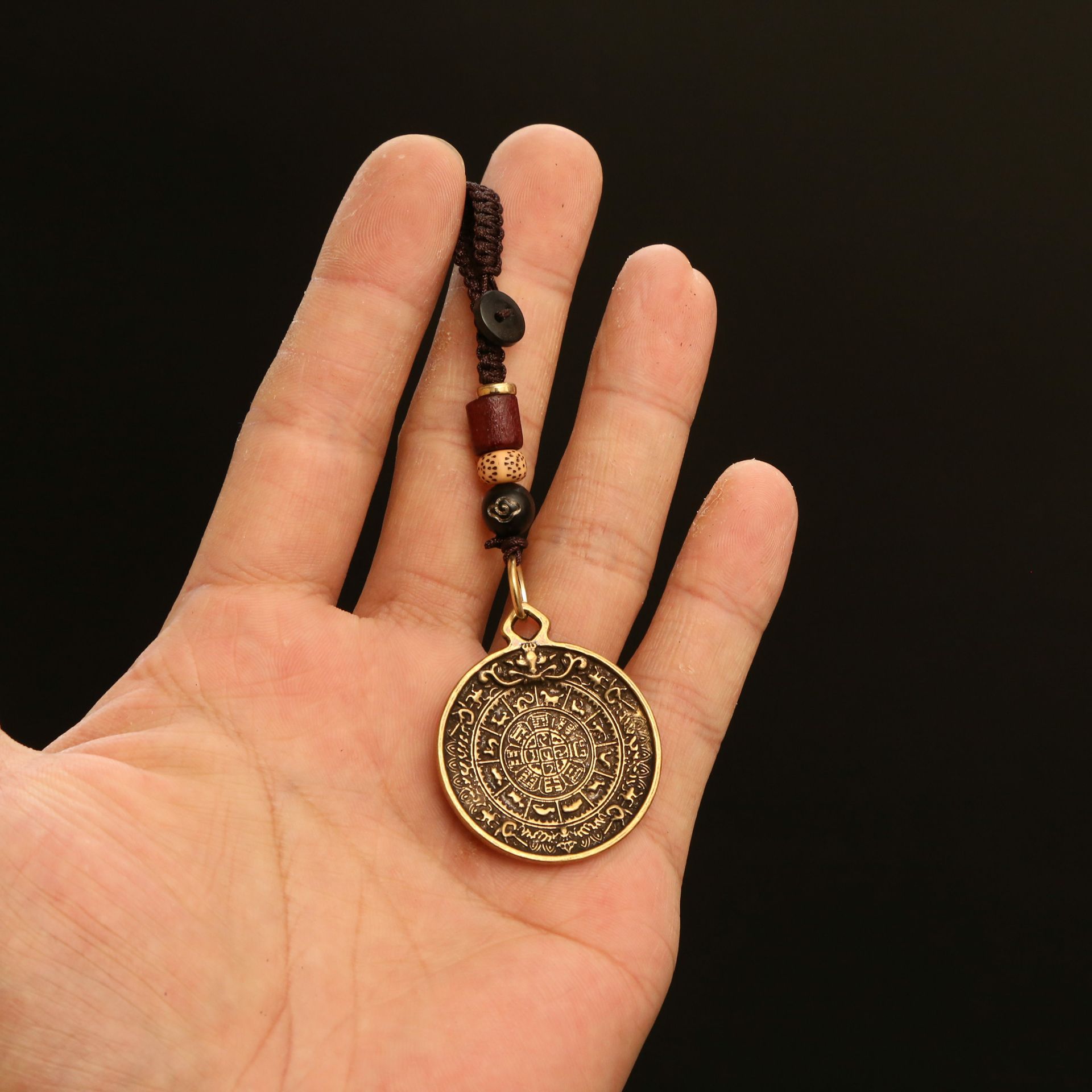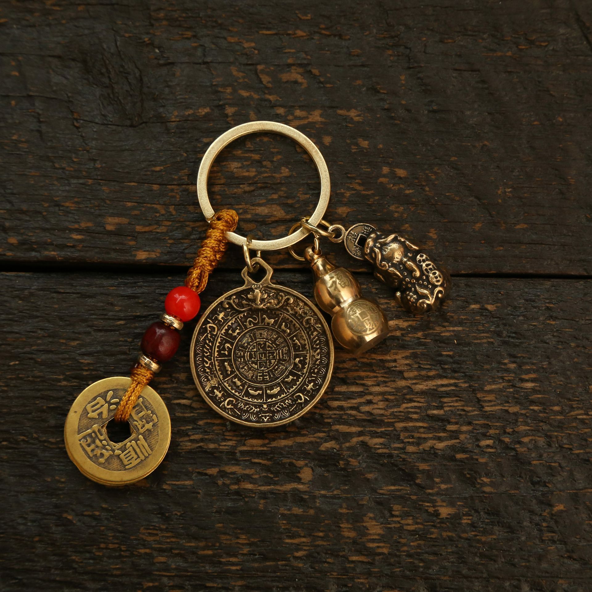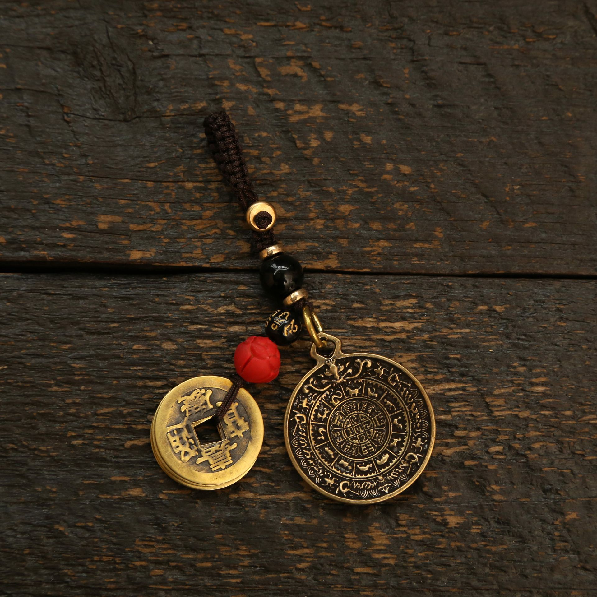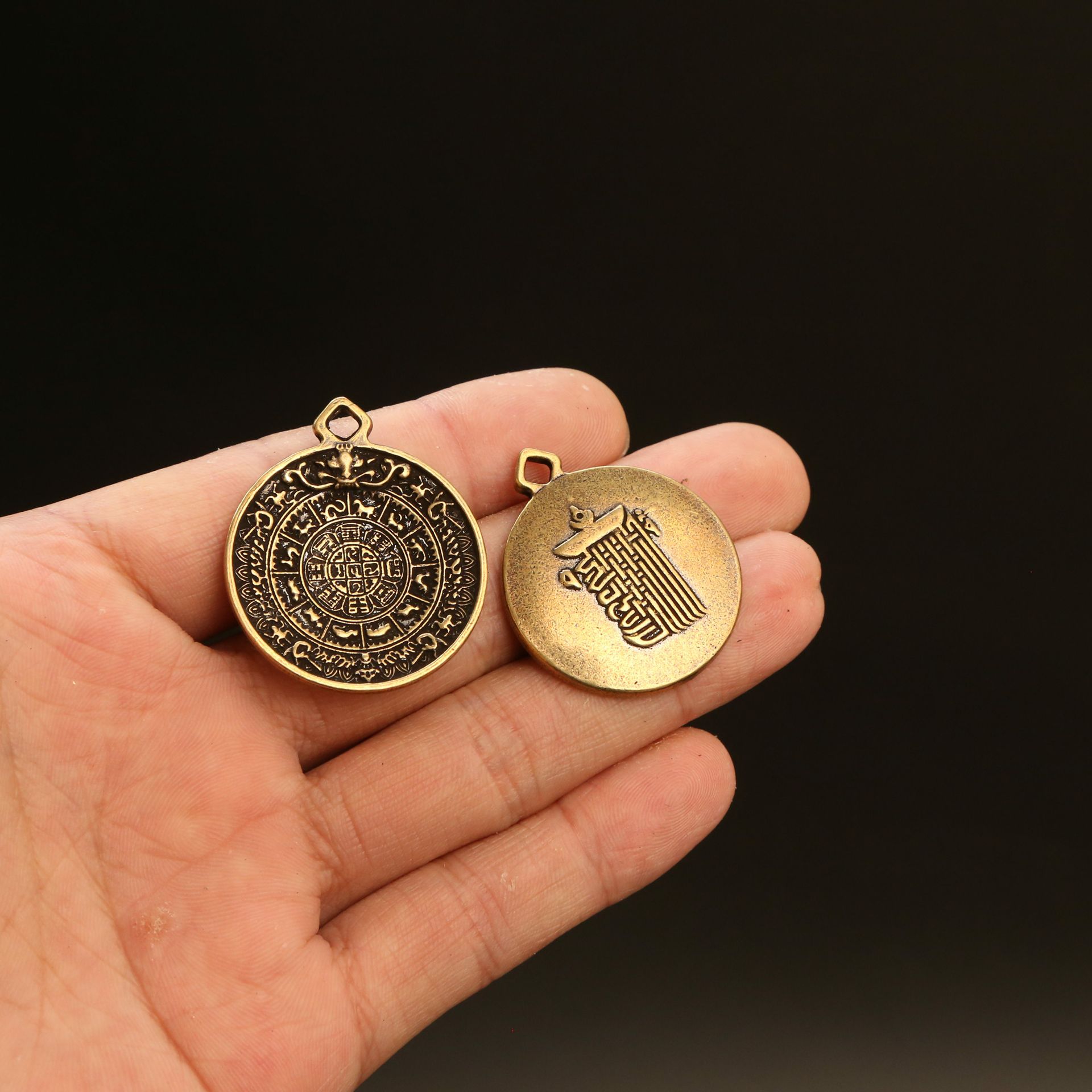 黄铜九宫八卦十二生肖圆牌钥匙扣吊坠挂件 腰挂藏式复古饰品吊坠