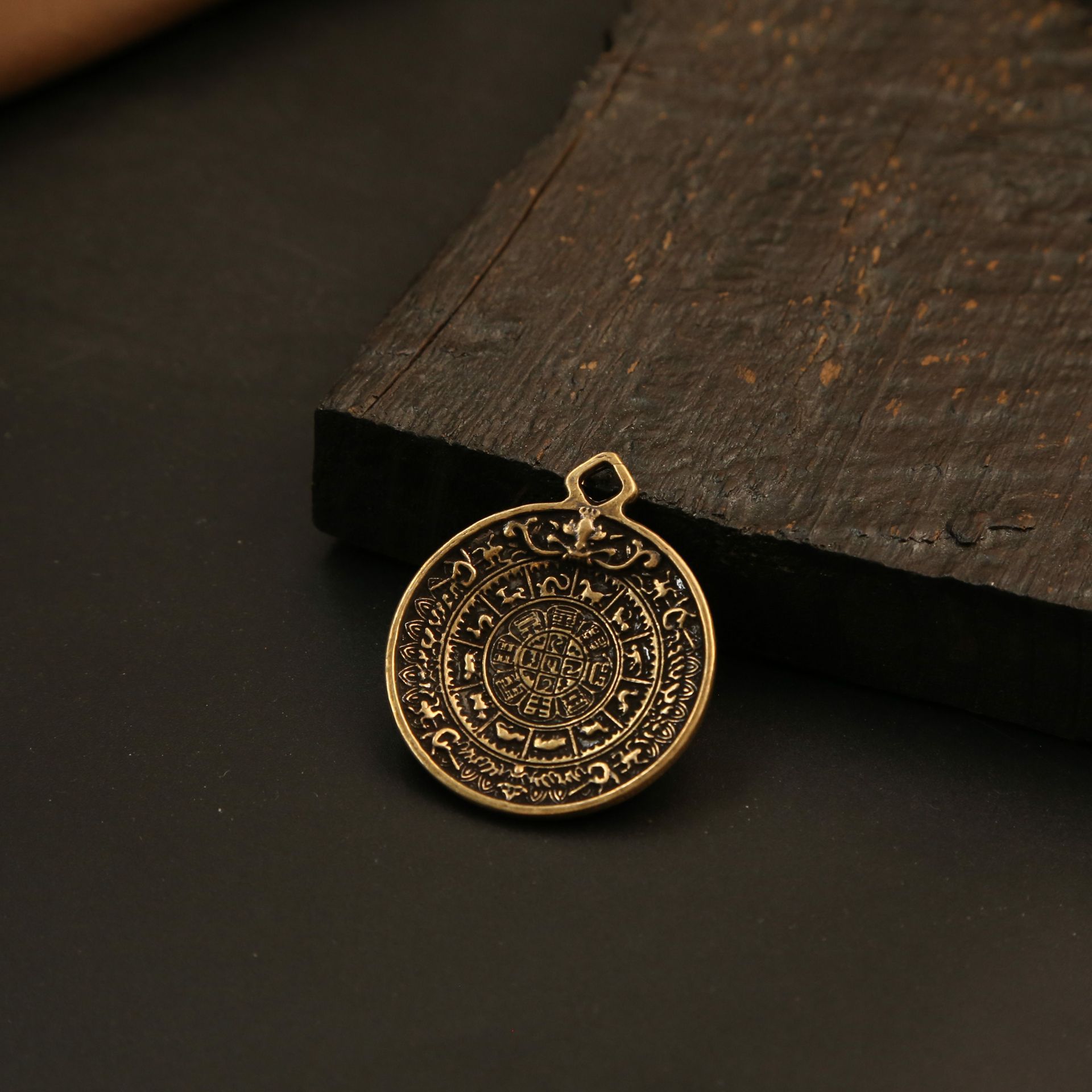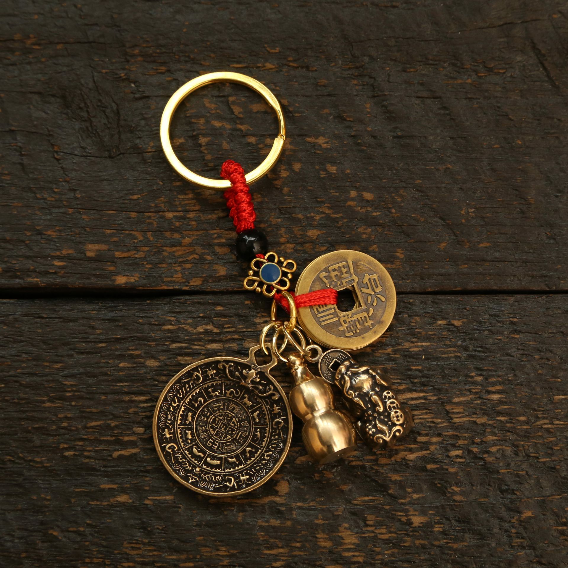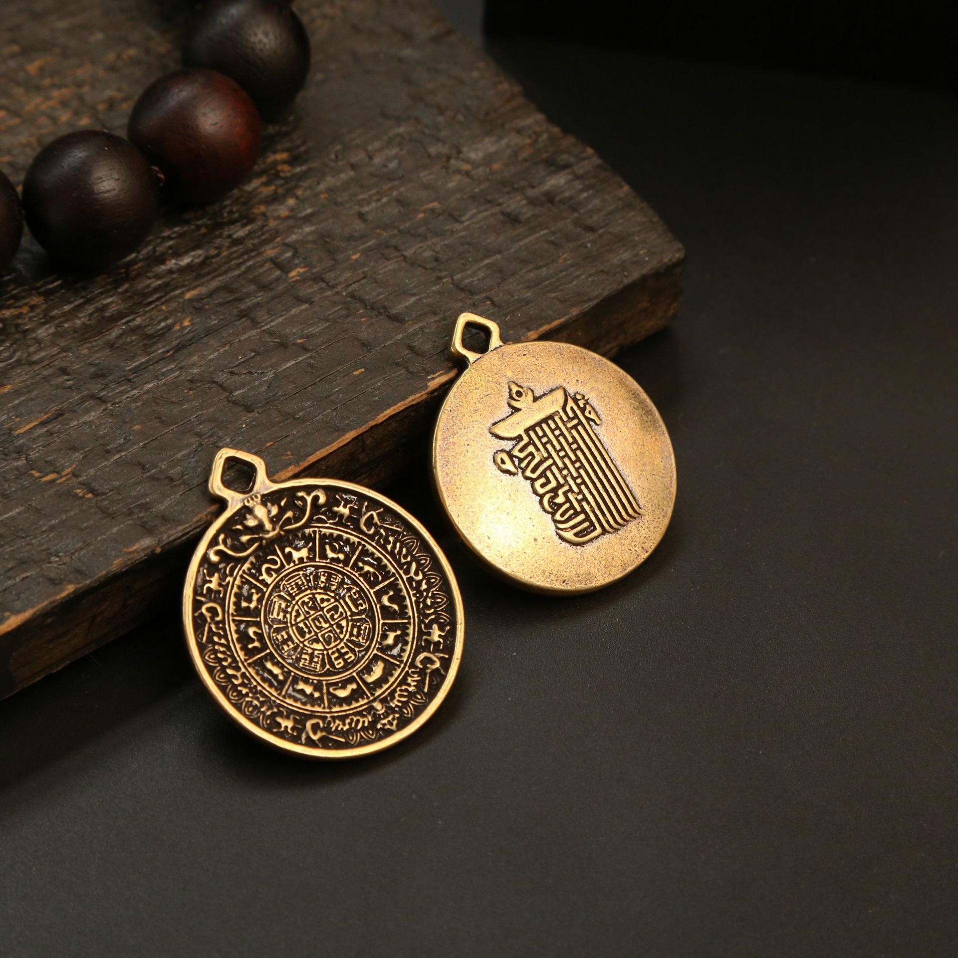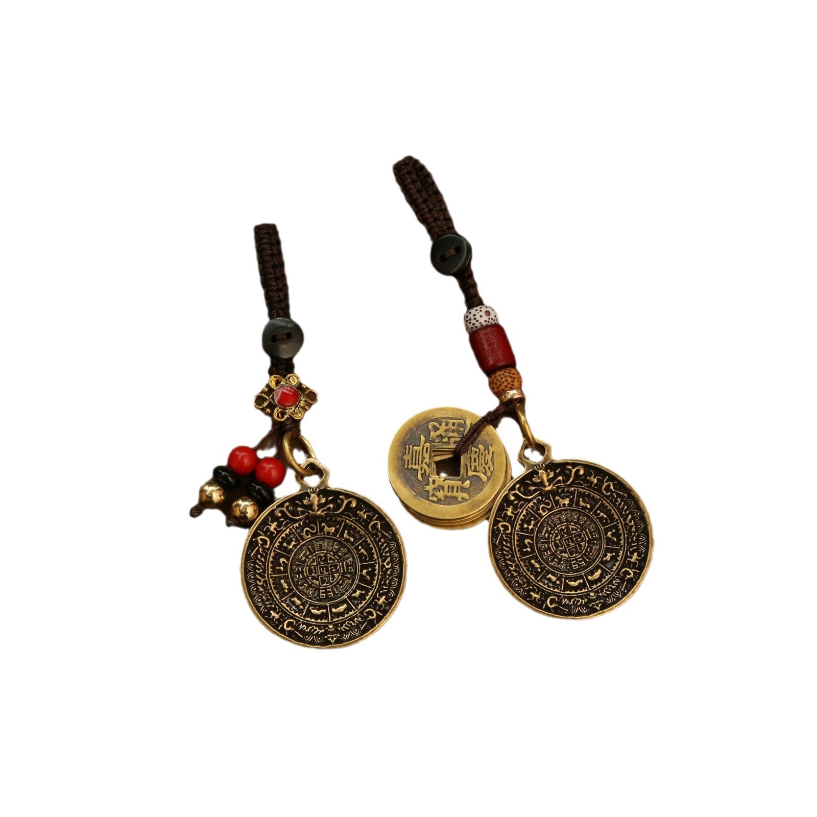 黄铜九宫八卦十二生肖圆牌钥匙扣吊坠挂件 腰挂藏式复古饰品吊坠