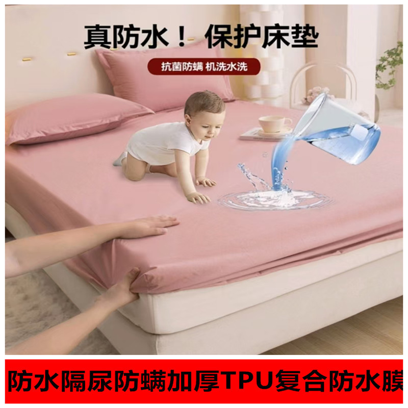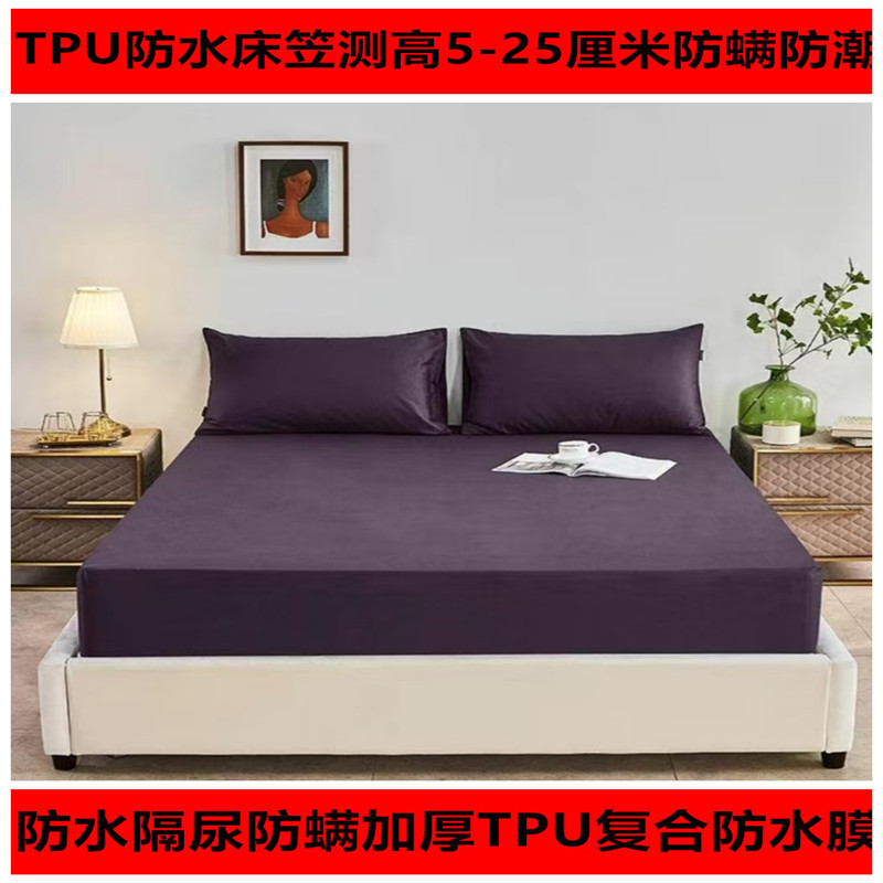 2024年新品跨境纯色TPU防水床笠A类床笠可机水洗席梦思床垫保护罩