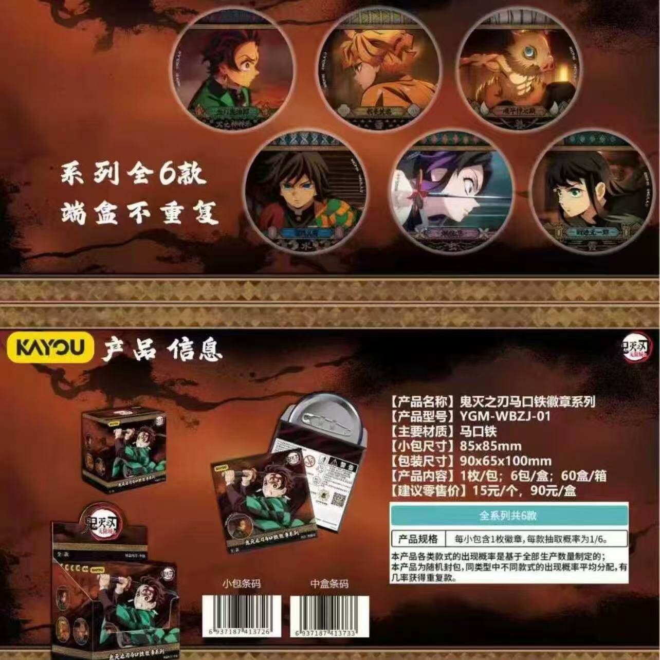 卡游鬼灭之刃徽章马口铁盲盒吧唧炭治郎弥豆子动漫周边收藏谷子