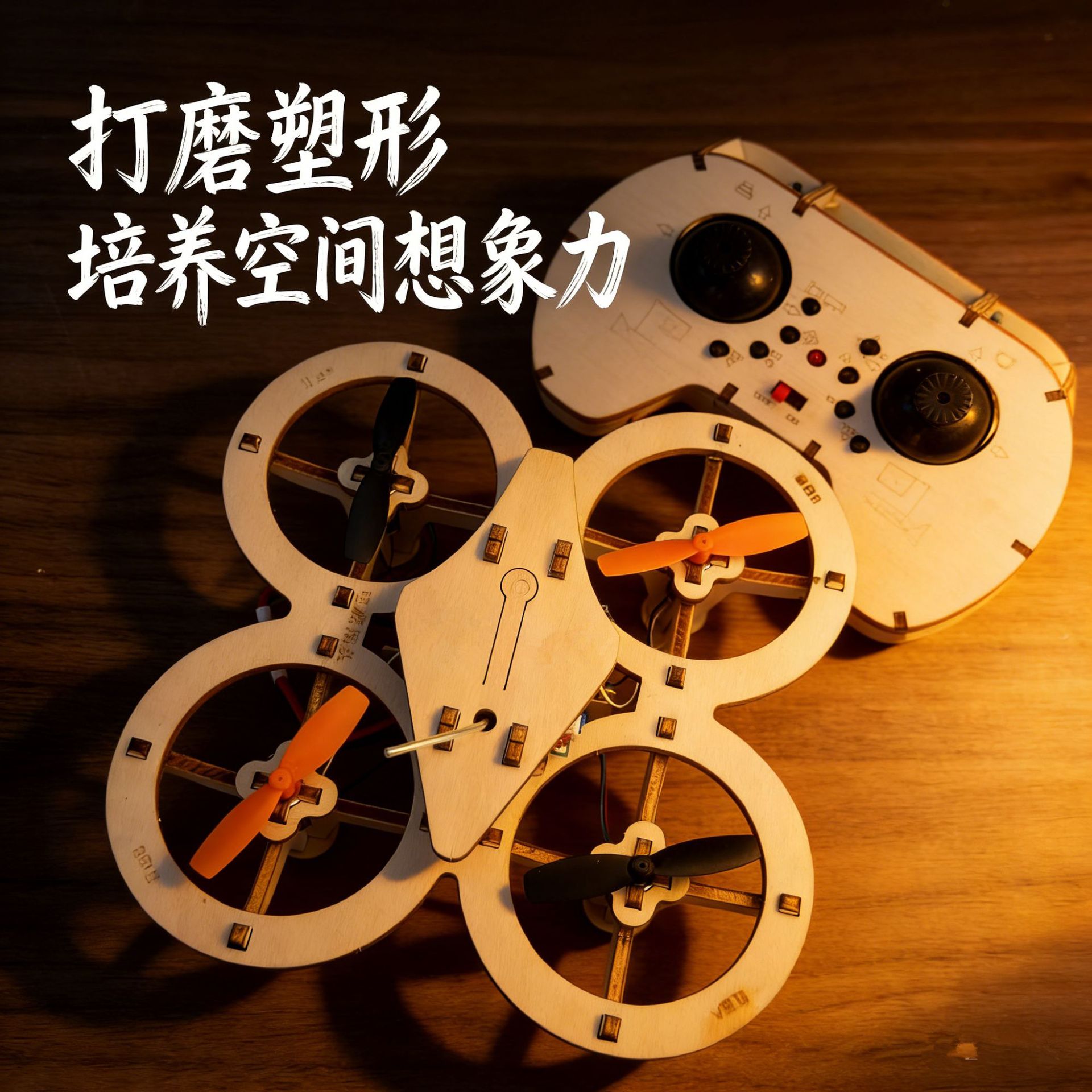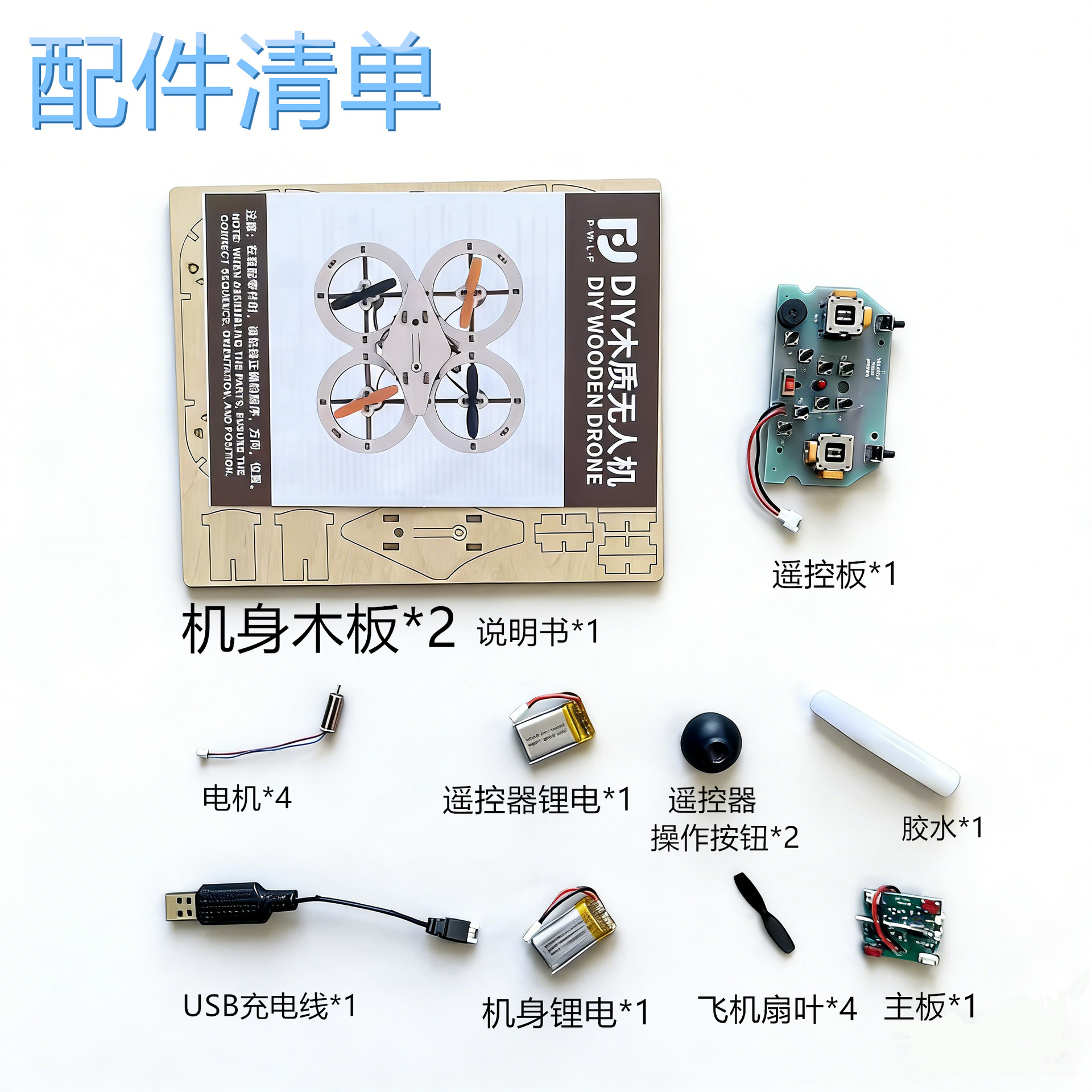 DIY木制无人机玩具四轴飞行器航模科教遥控飞机益智拼装玩具飞机