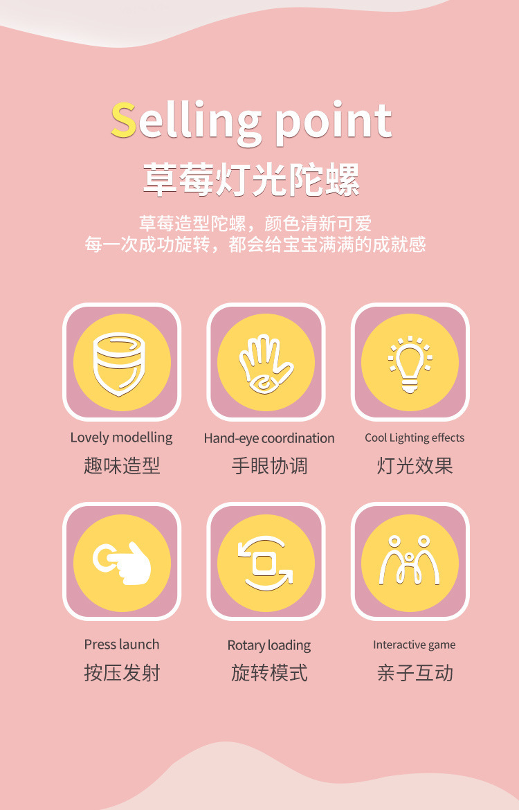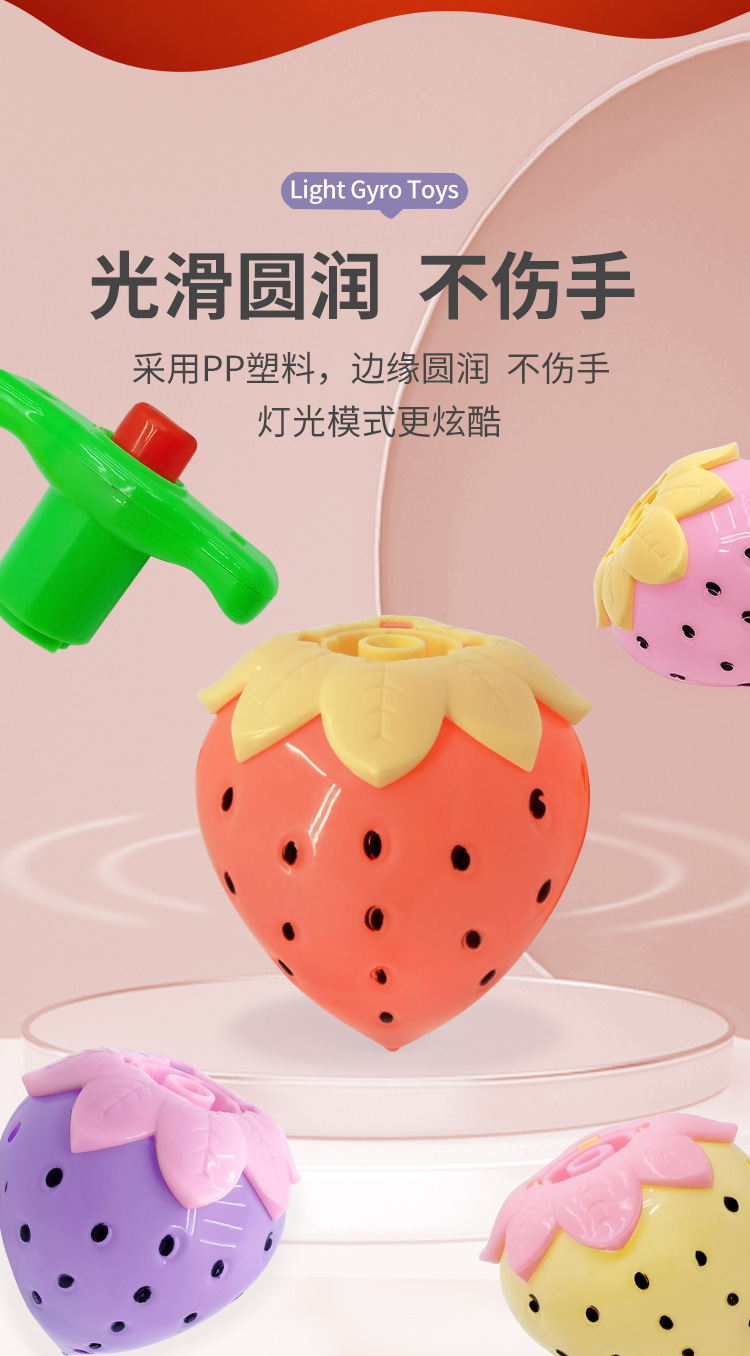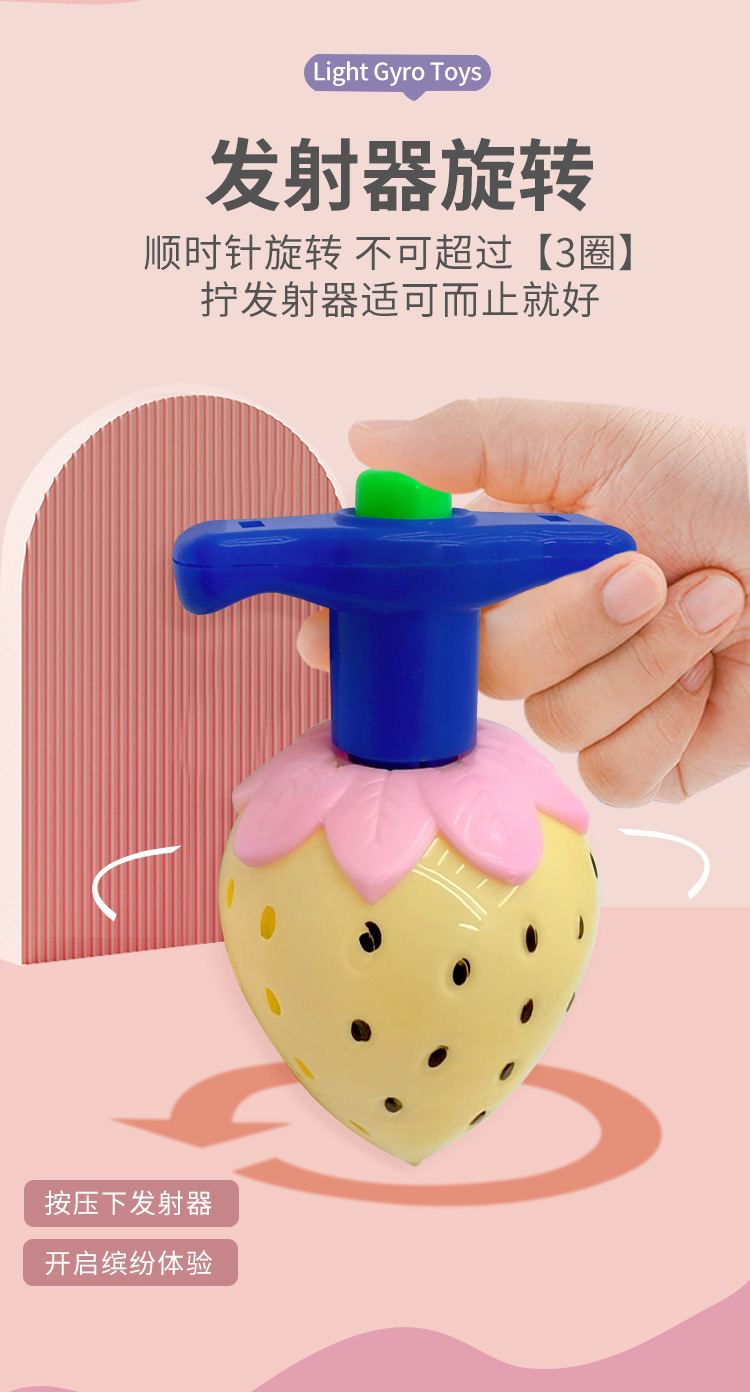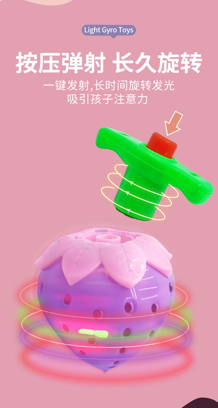 发光草莓陀螺发射玩具地摊批发幼儿园礼物义乌货源跨境闪光发亮