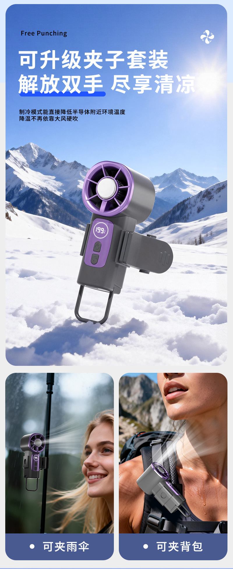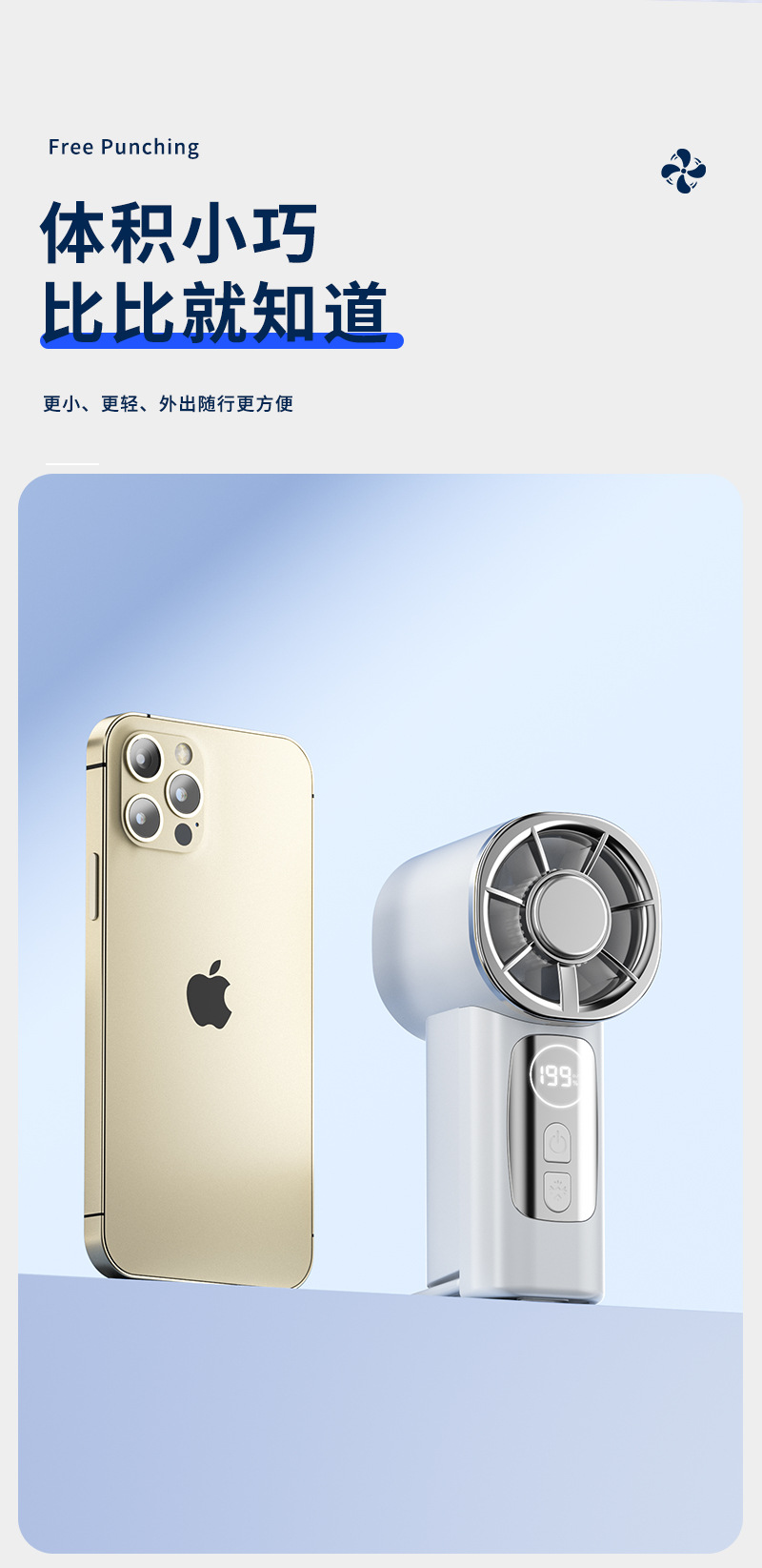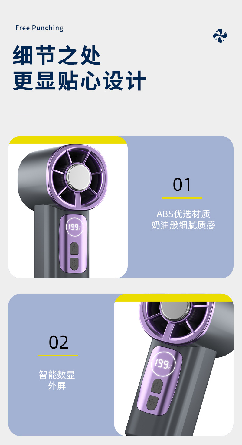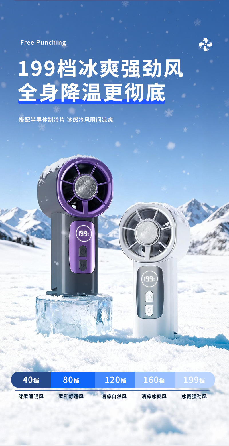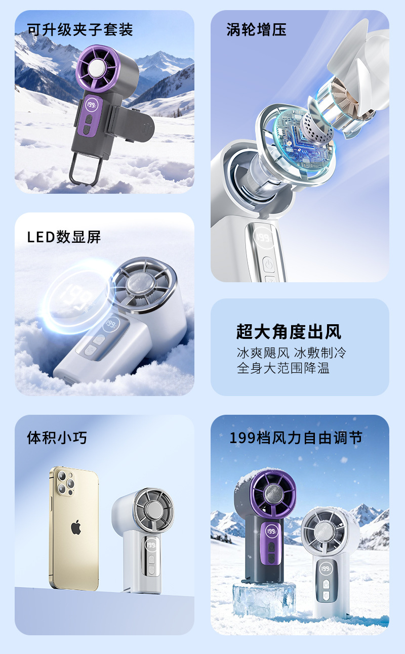 2026新款掌心高速冰敷数显199档多场景夹子迷你USB充电小风扇