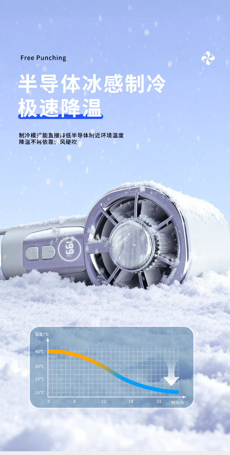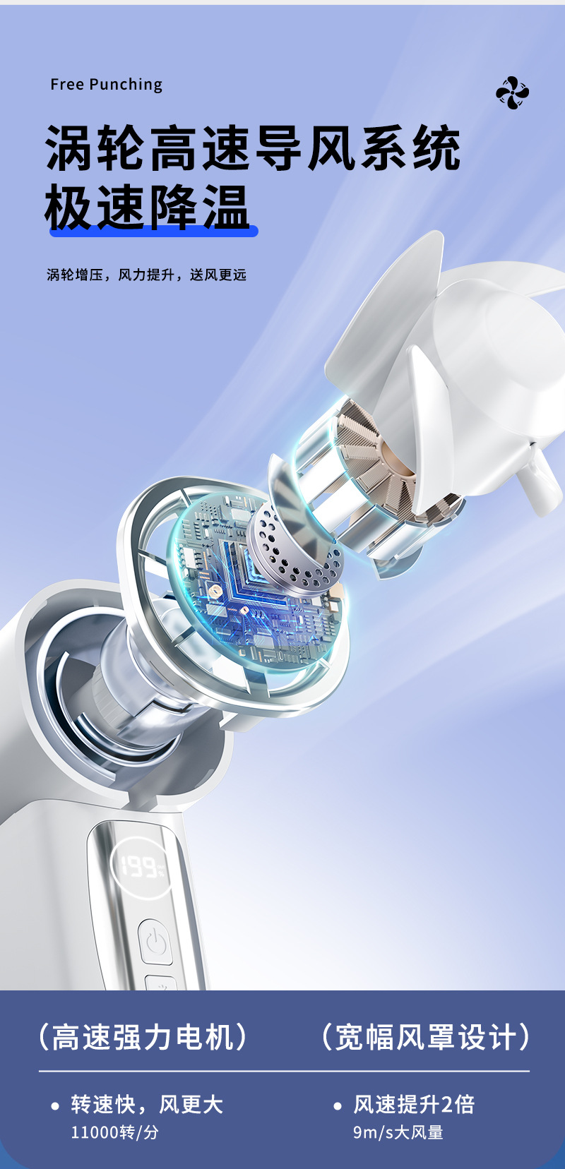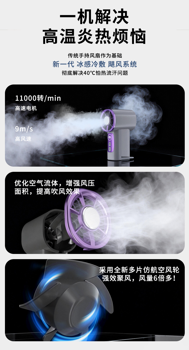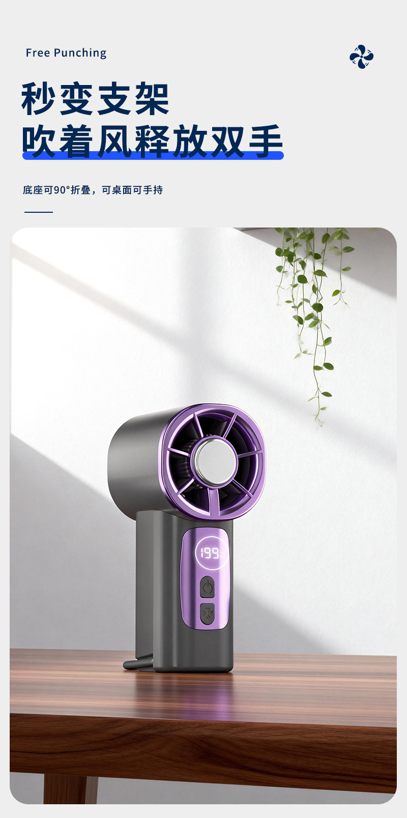 2026新款掌心高速冰敷数显199档多场景夹子迷你USB充电小风扇