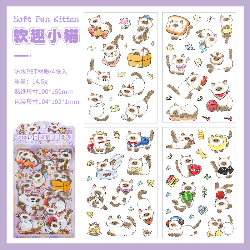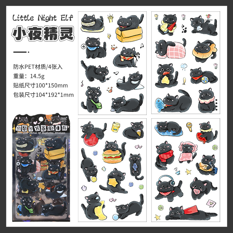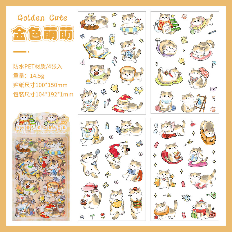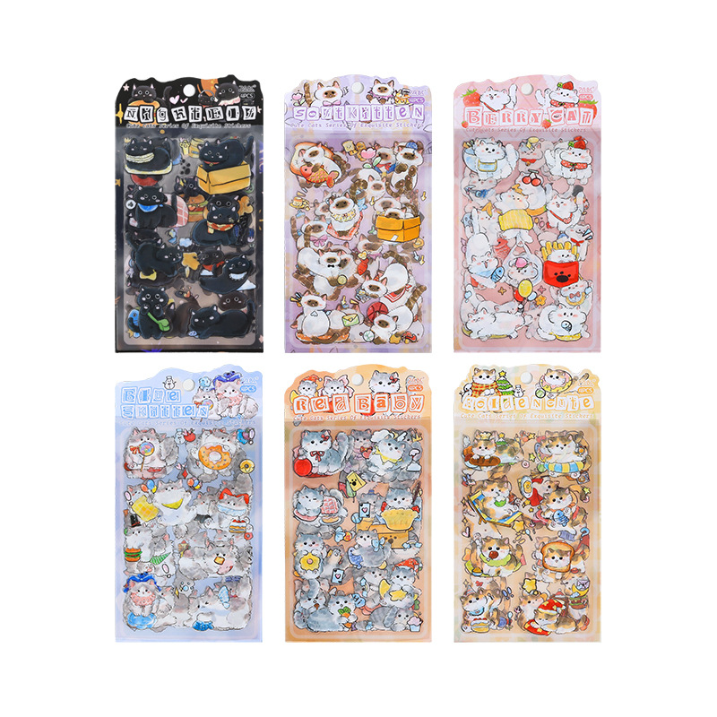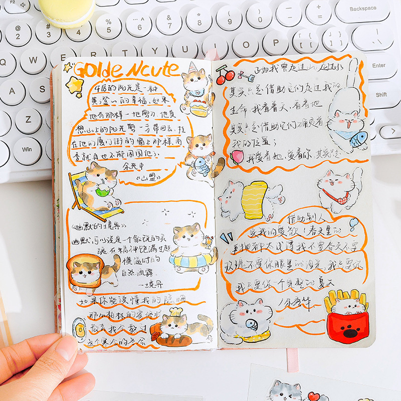悦真软萌猫咪可爱卡通手账贴纸 跨境儿童贴纸贴画pet切膜手帐贴纸