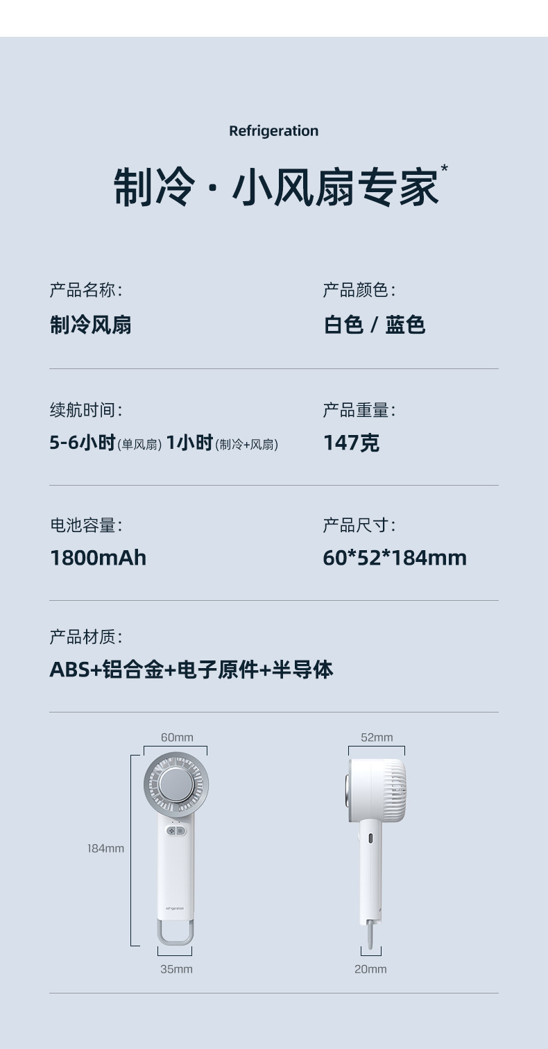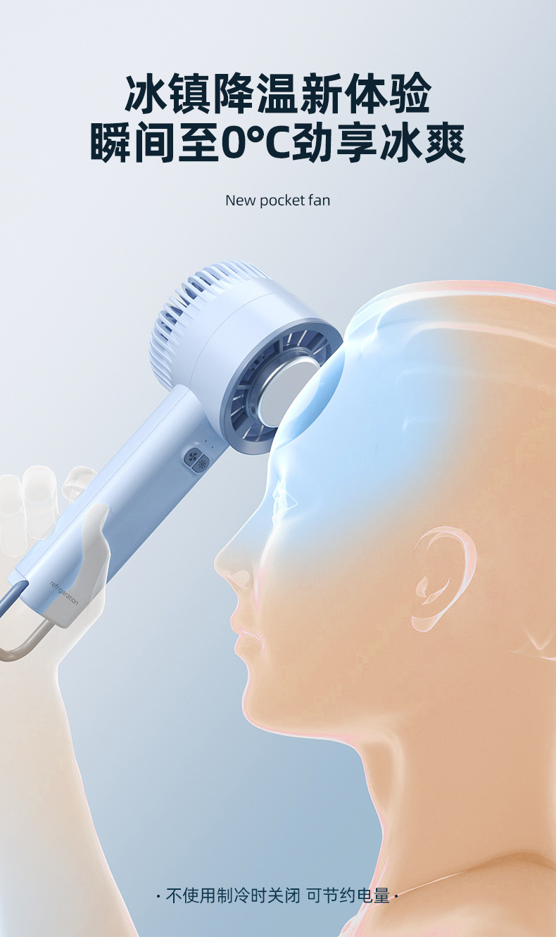 跨境2025新款手持便携式冰敷制冷风扇桌面半导体涡轮usb电风扇