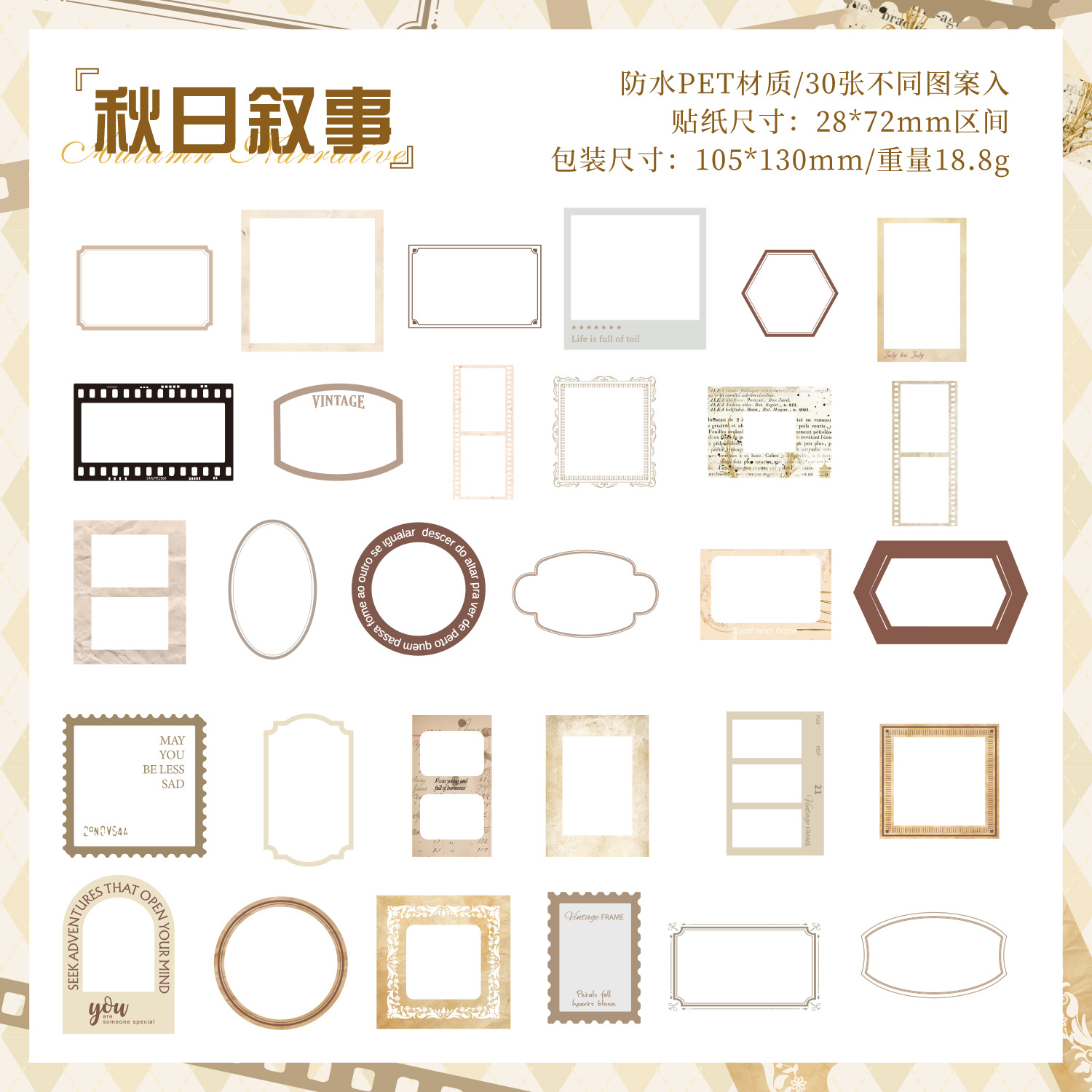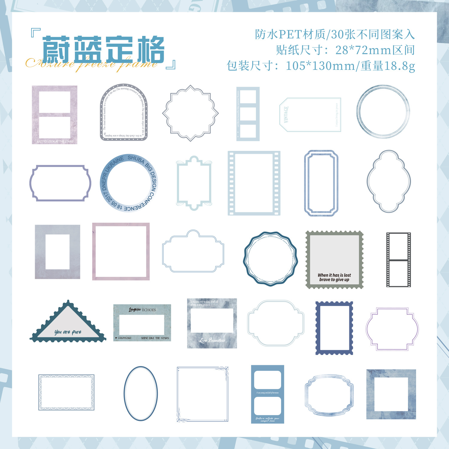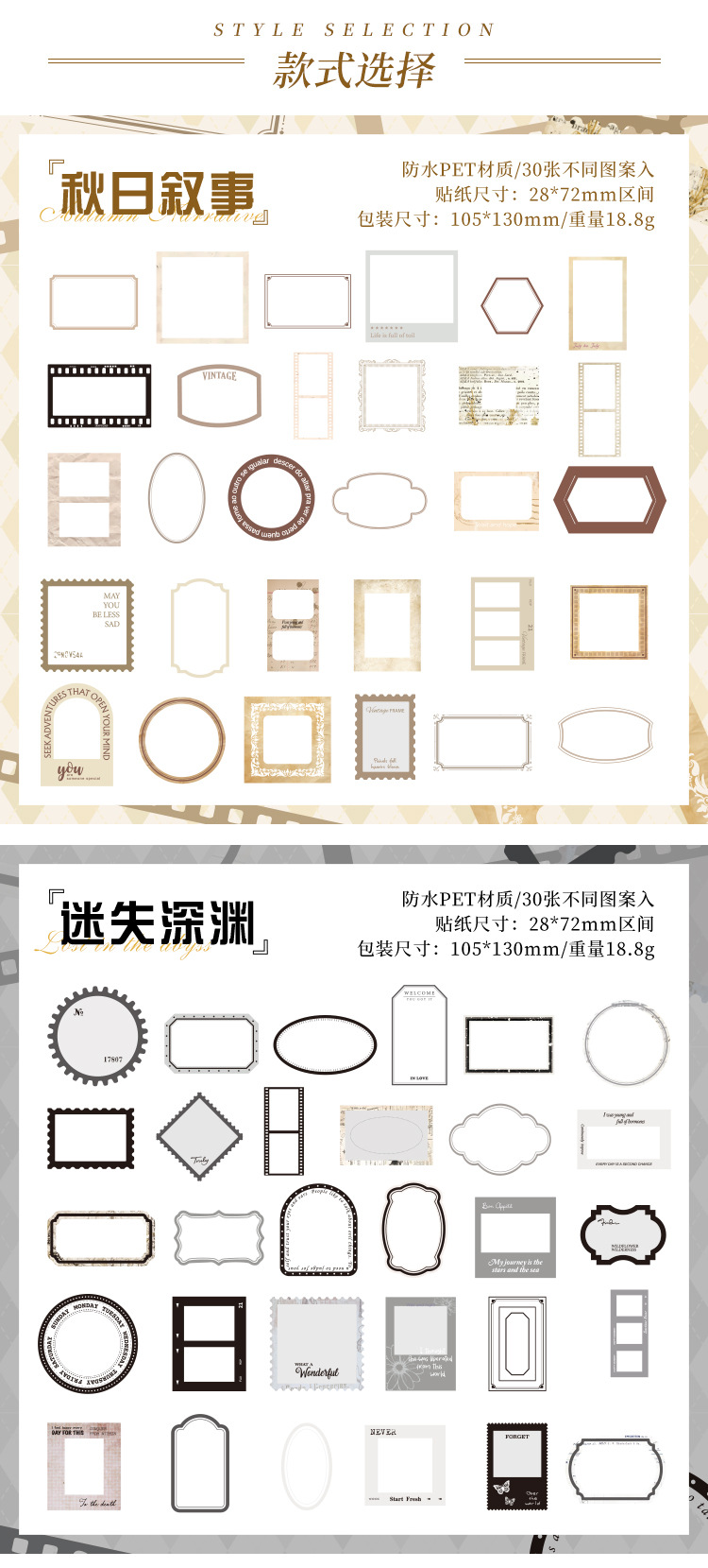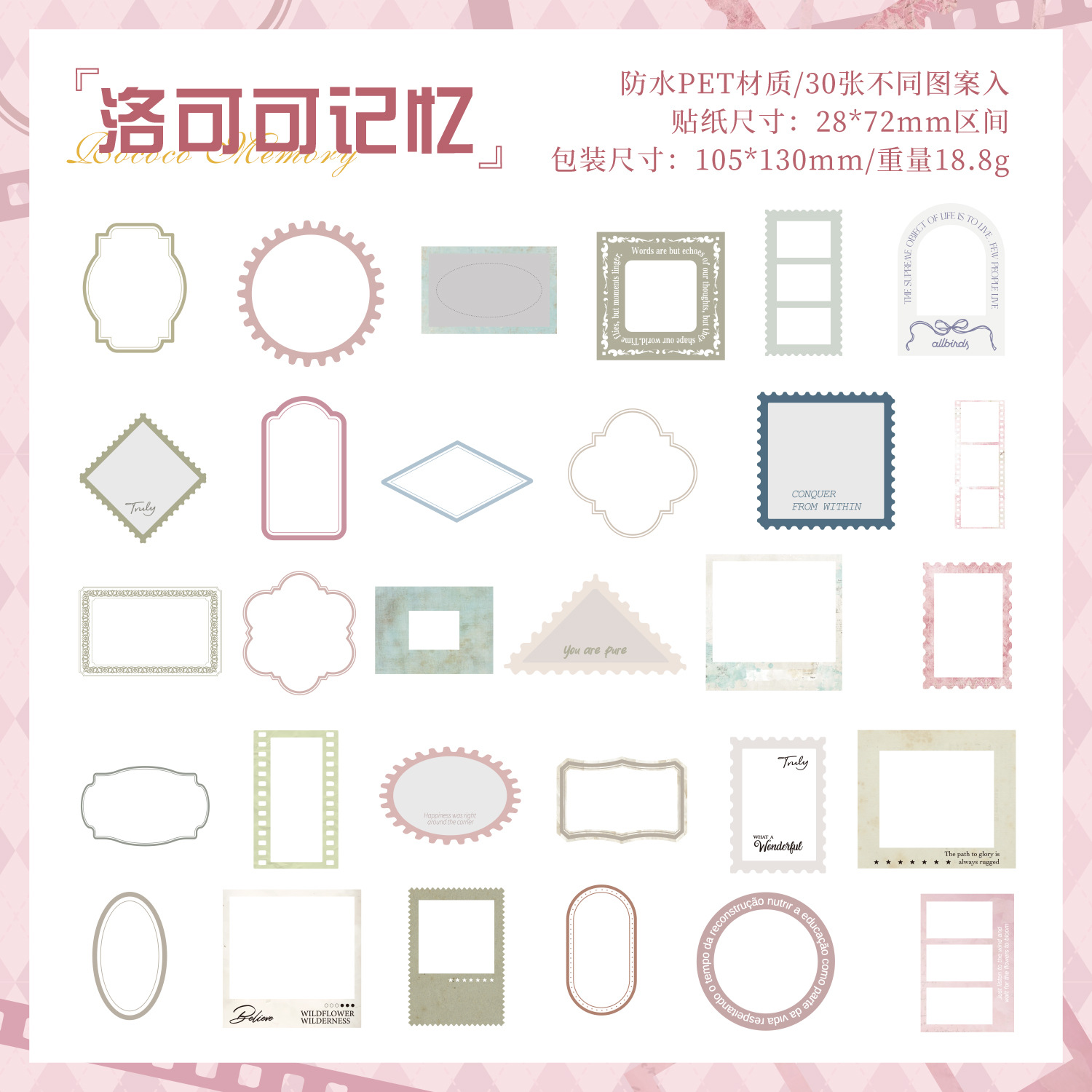 悦真定格时痕pet贴纸手帐素材 跨境防水贴纸手账贴纸包手帐贴纸