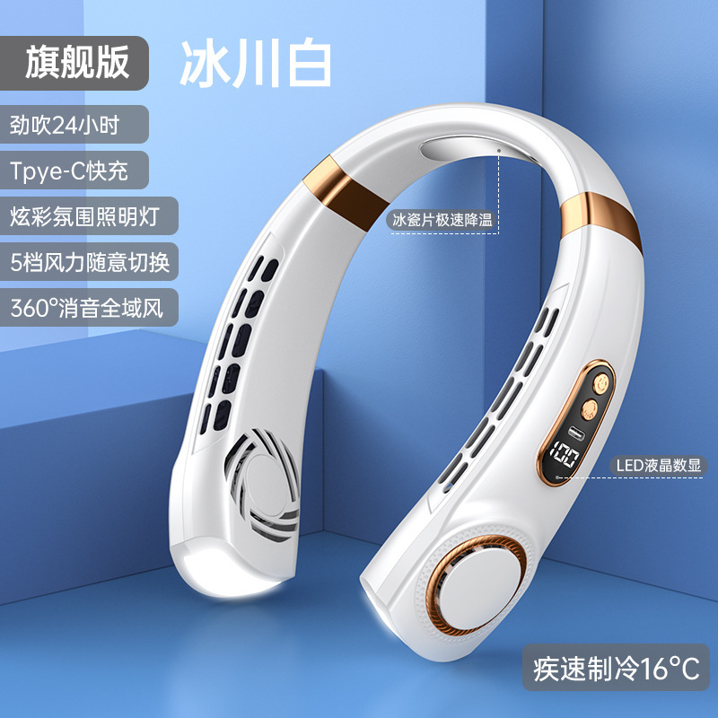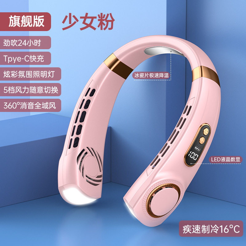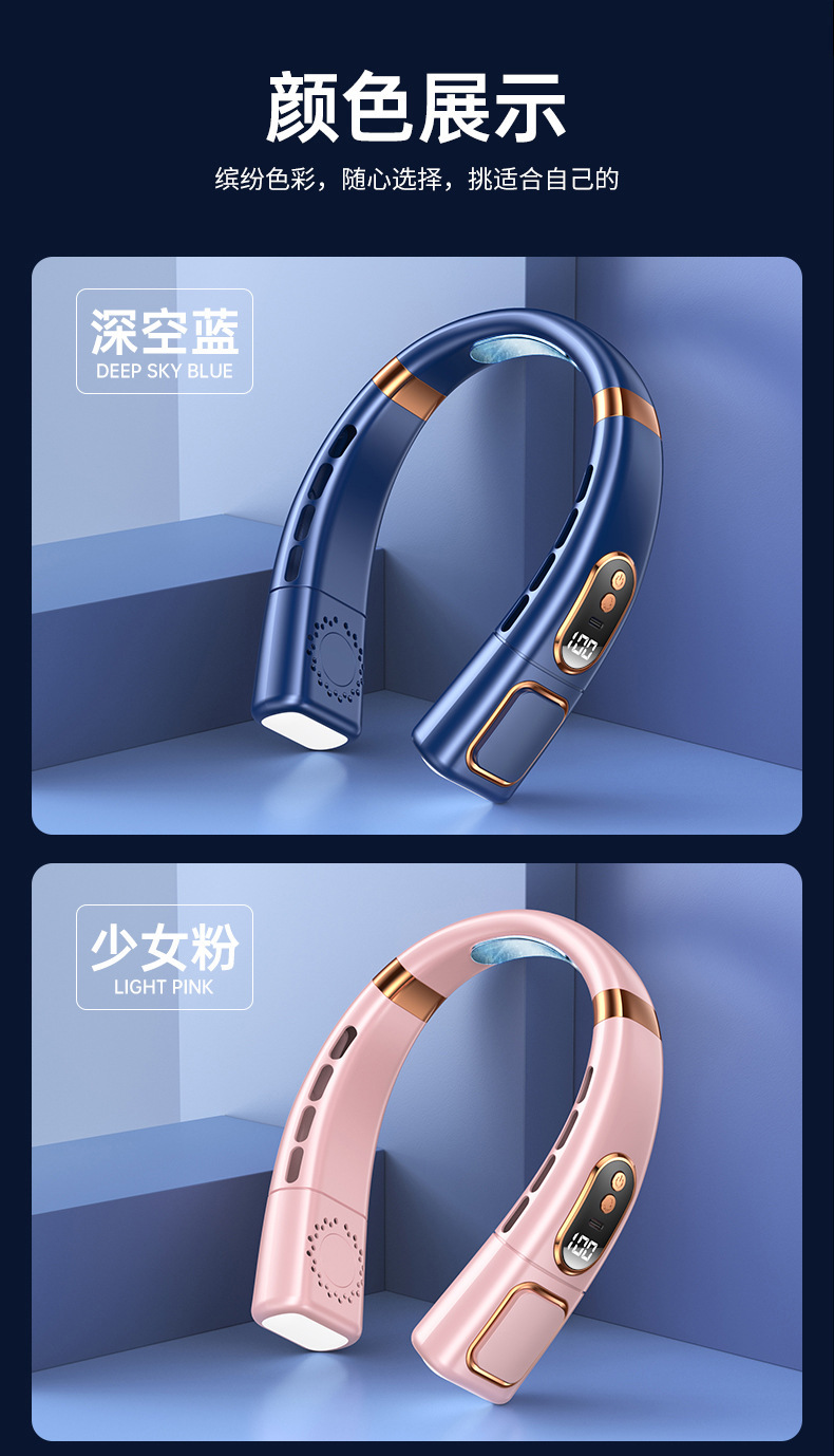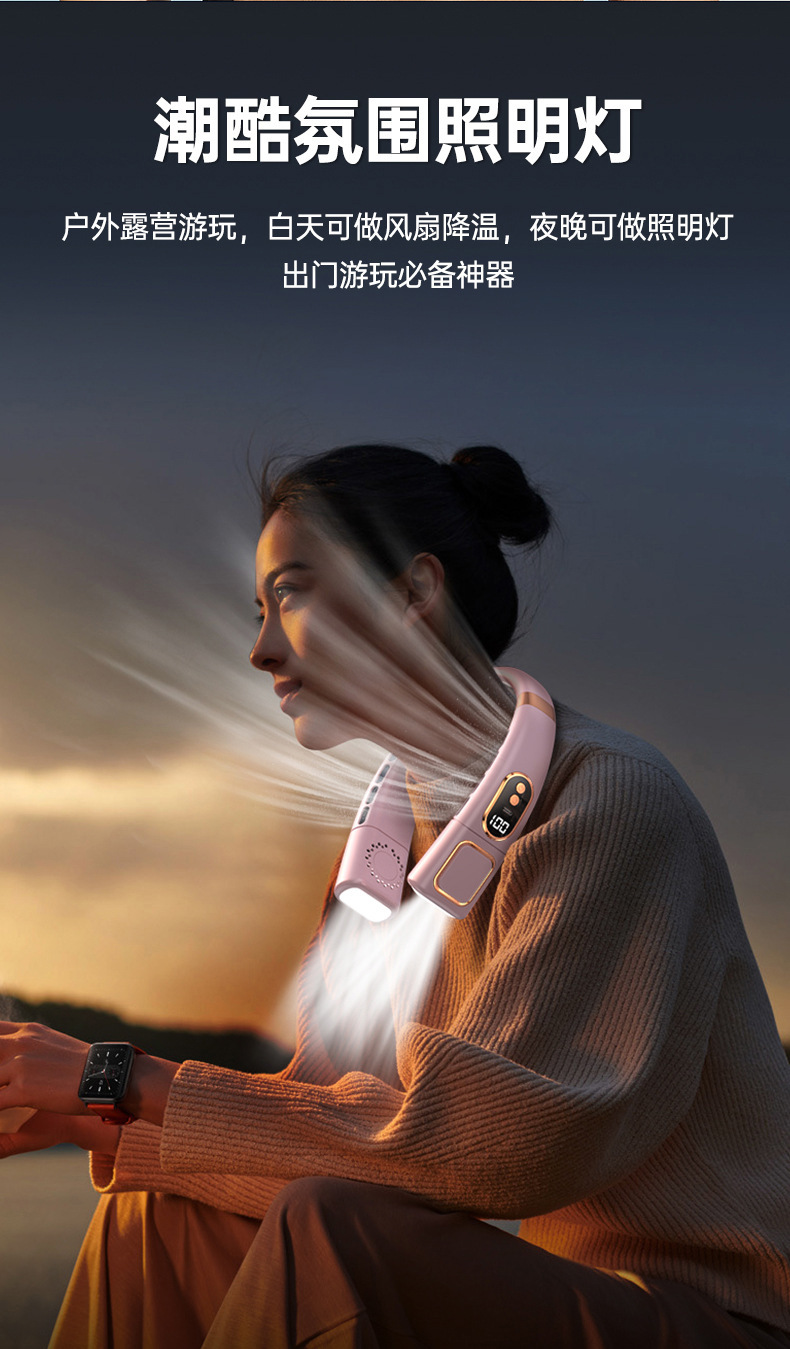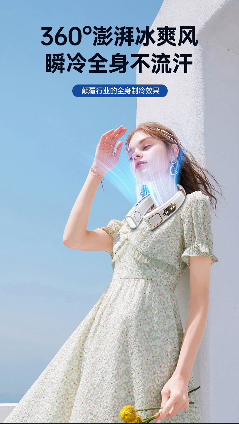 新款挂脖风扇USB充电懒人户外便携式静音涡轮颈脖子无叶迷你风扇