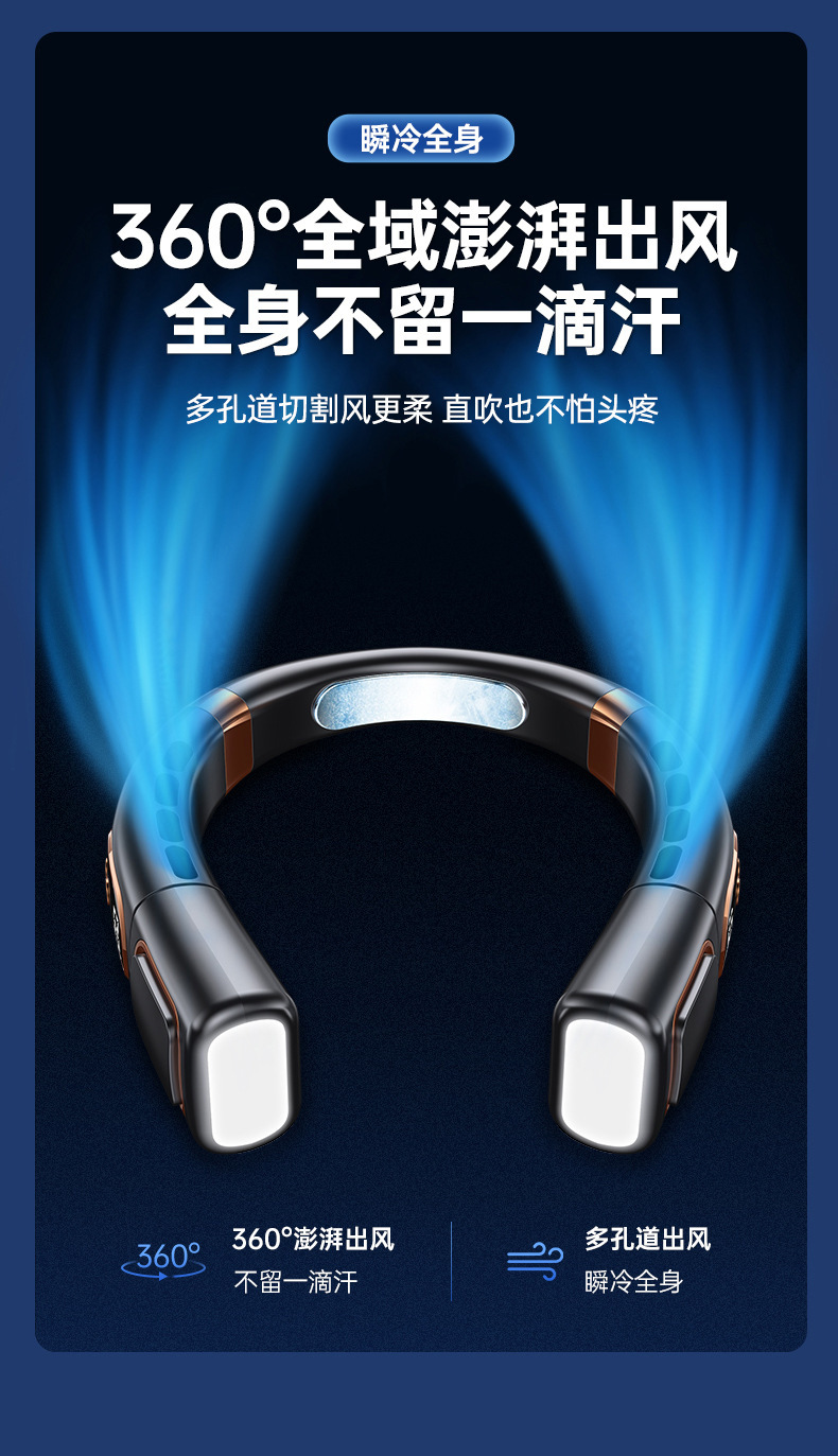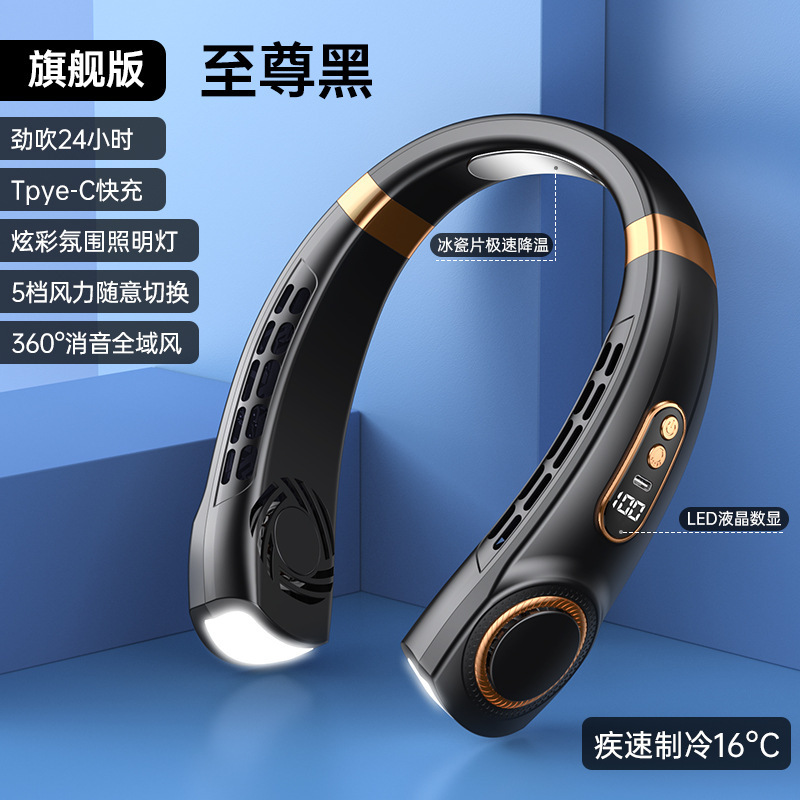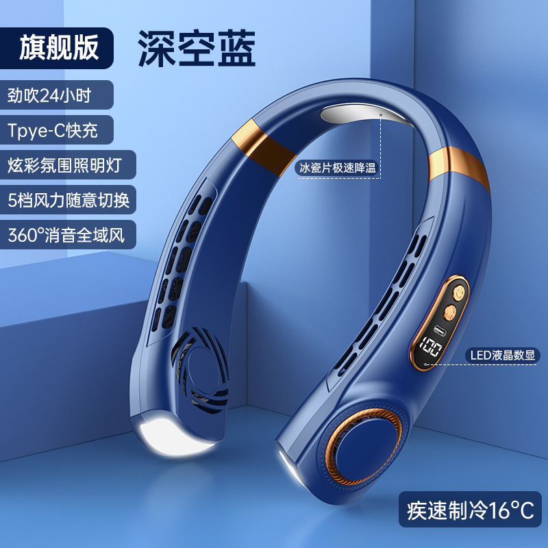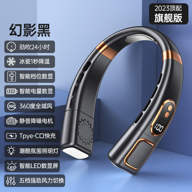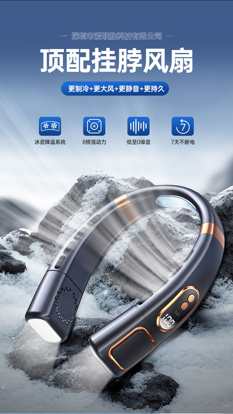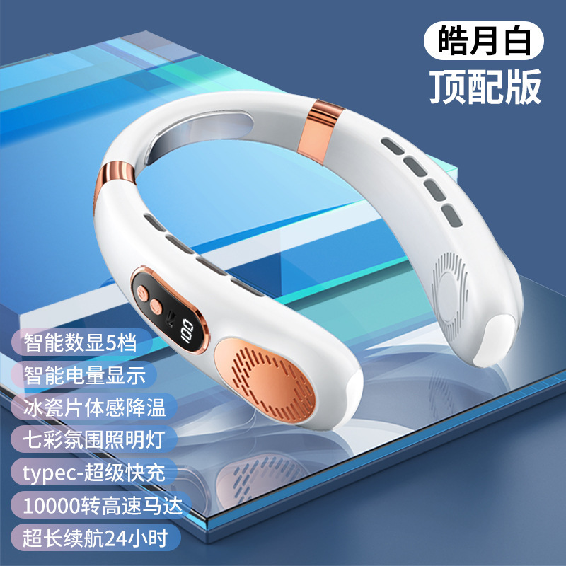 新款挂脖风扇USB充电懒人户外便携式静音涡轮颈脖子无叶迷你风扇
