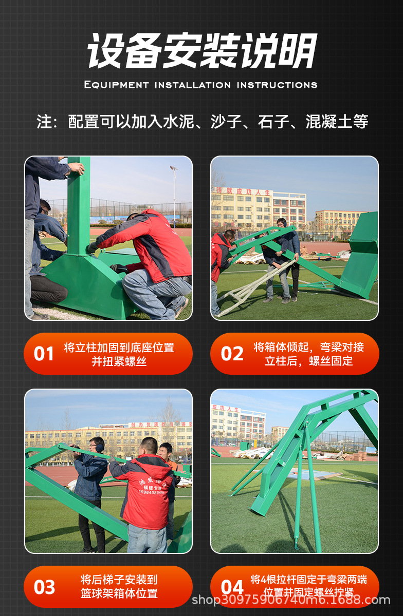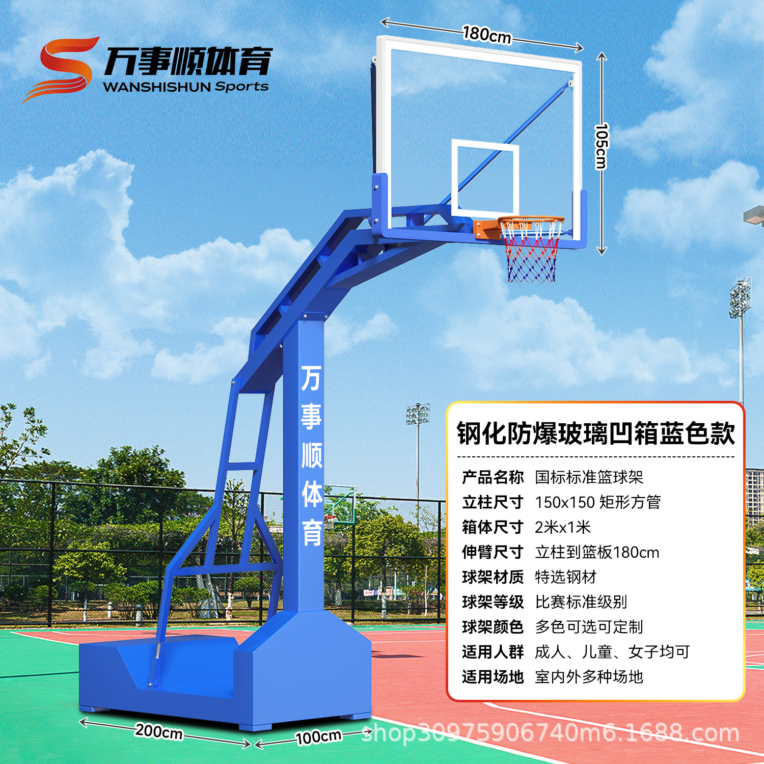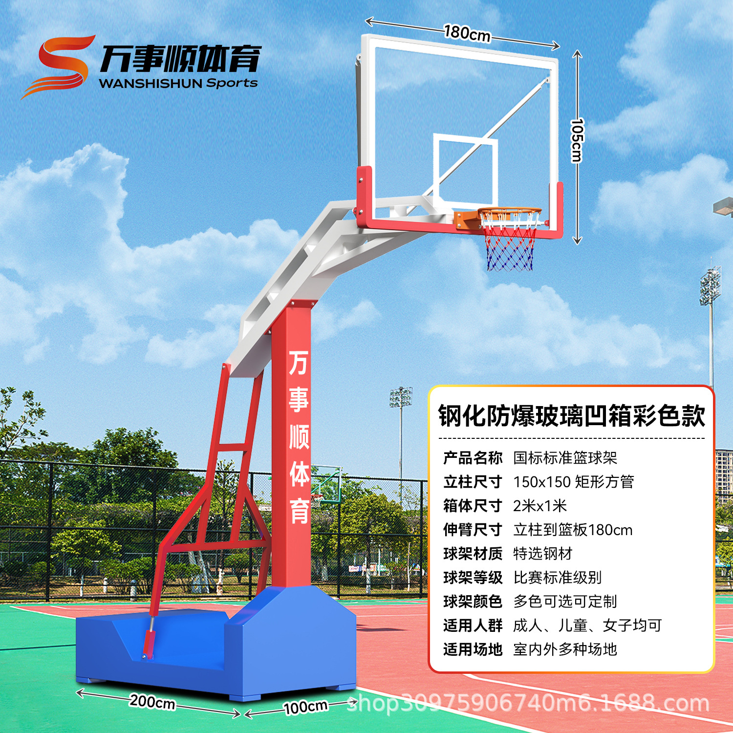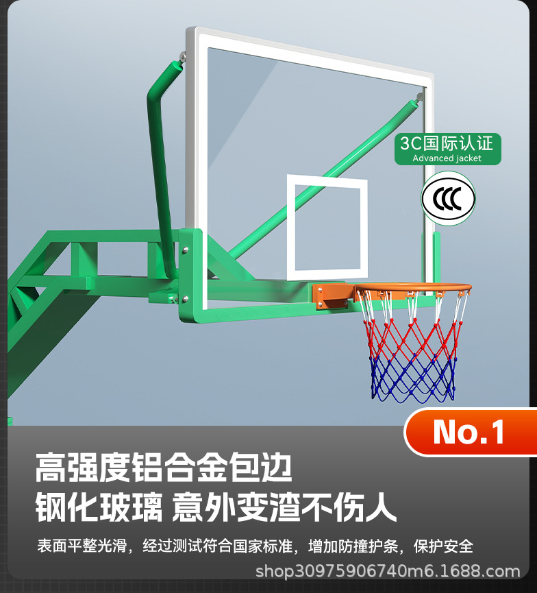 厂家供应篮球架钢化玻璃 平箱仿液压篮球架 室外凹箱篮球架