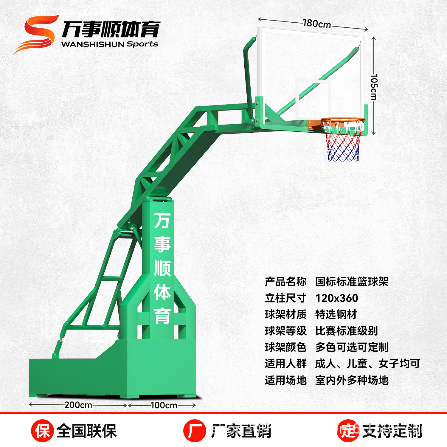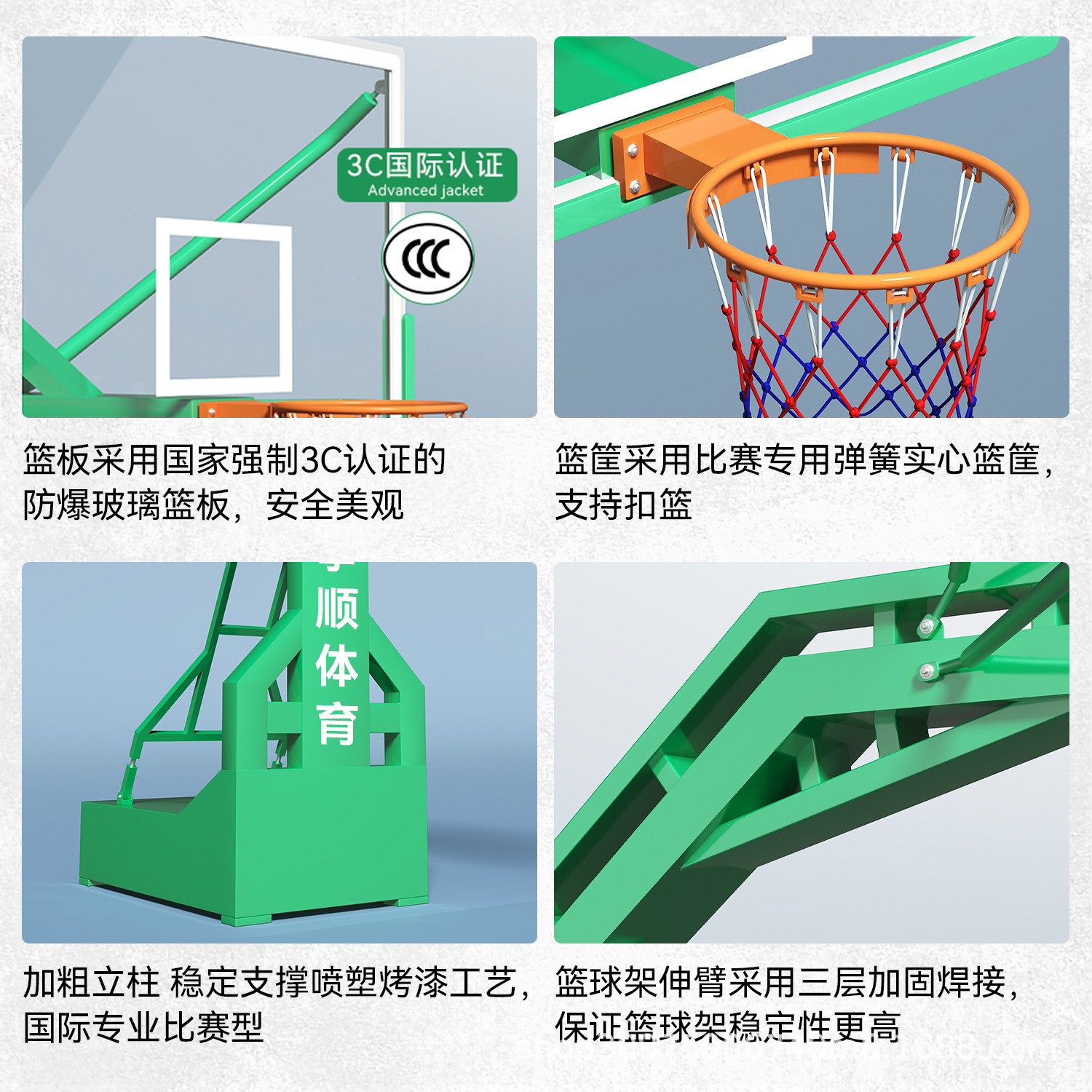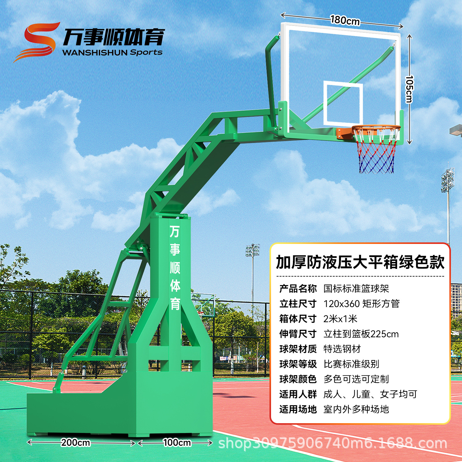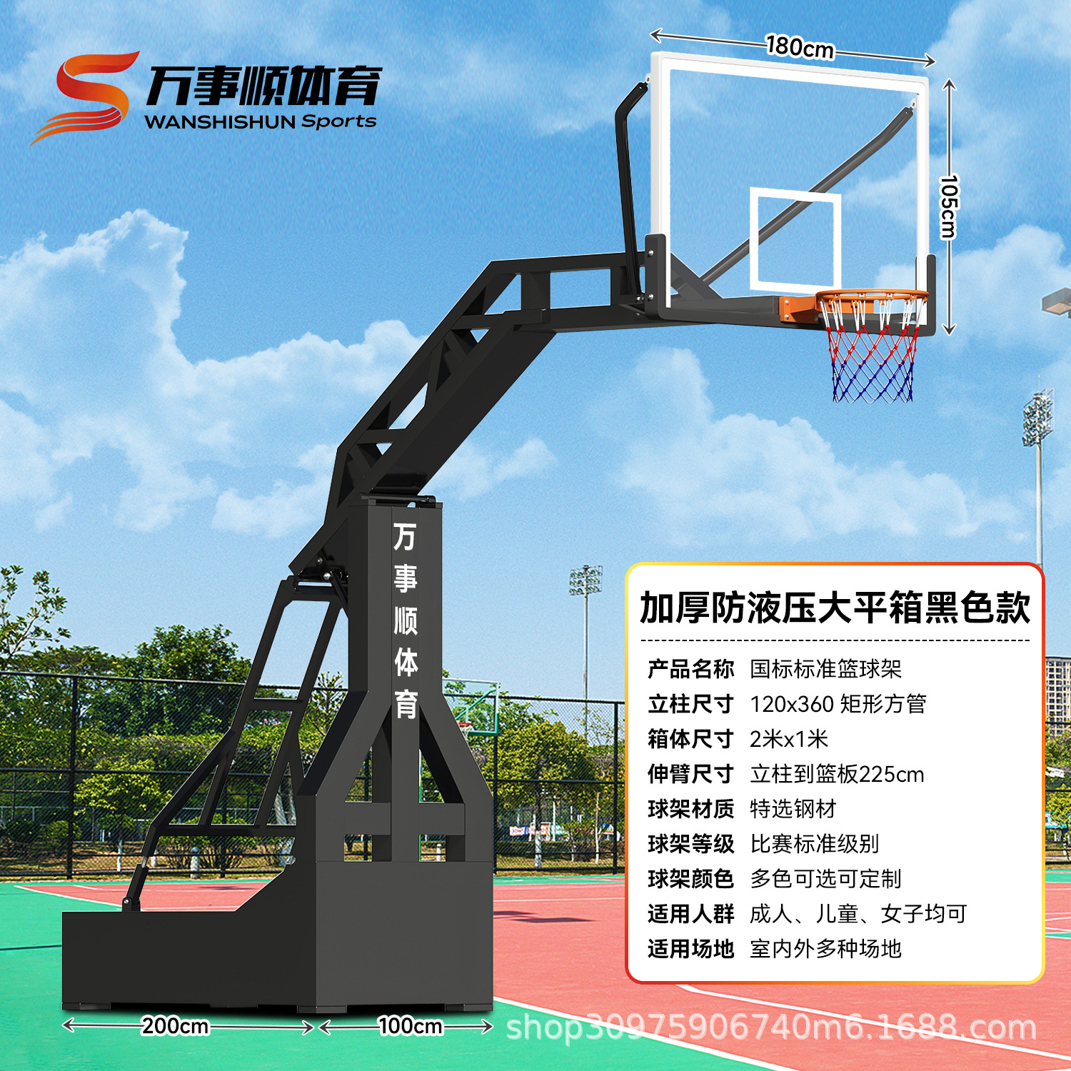 厂家供应篮球架钢化玻璃 平箱仿液压篮球架 室外凹箱篮球架