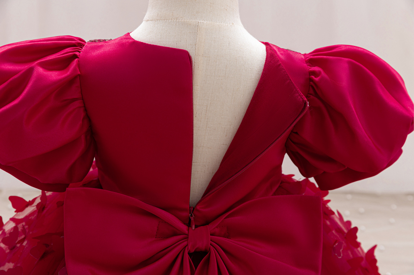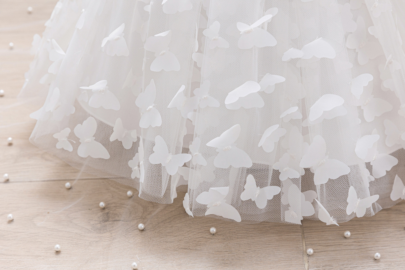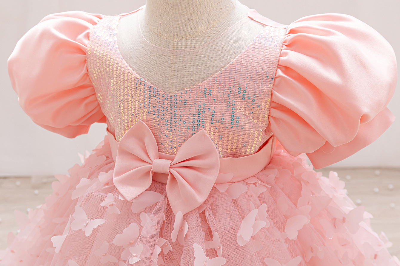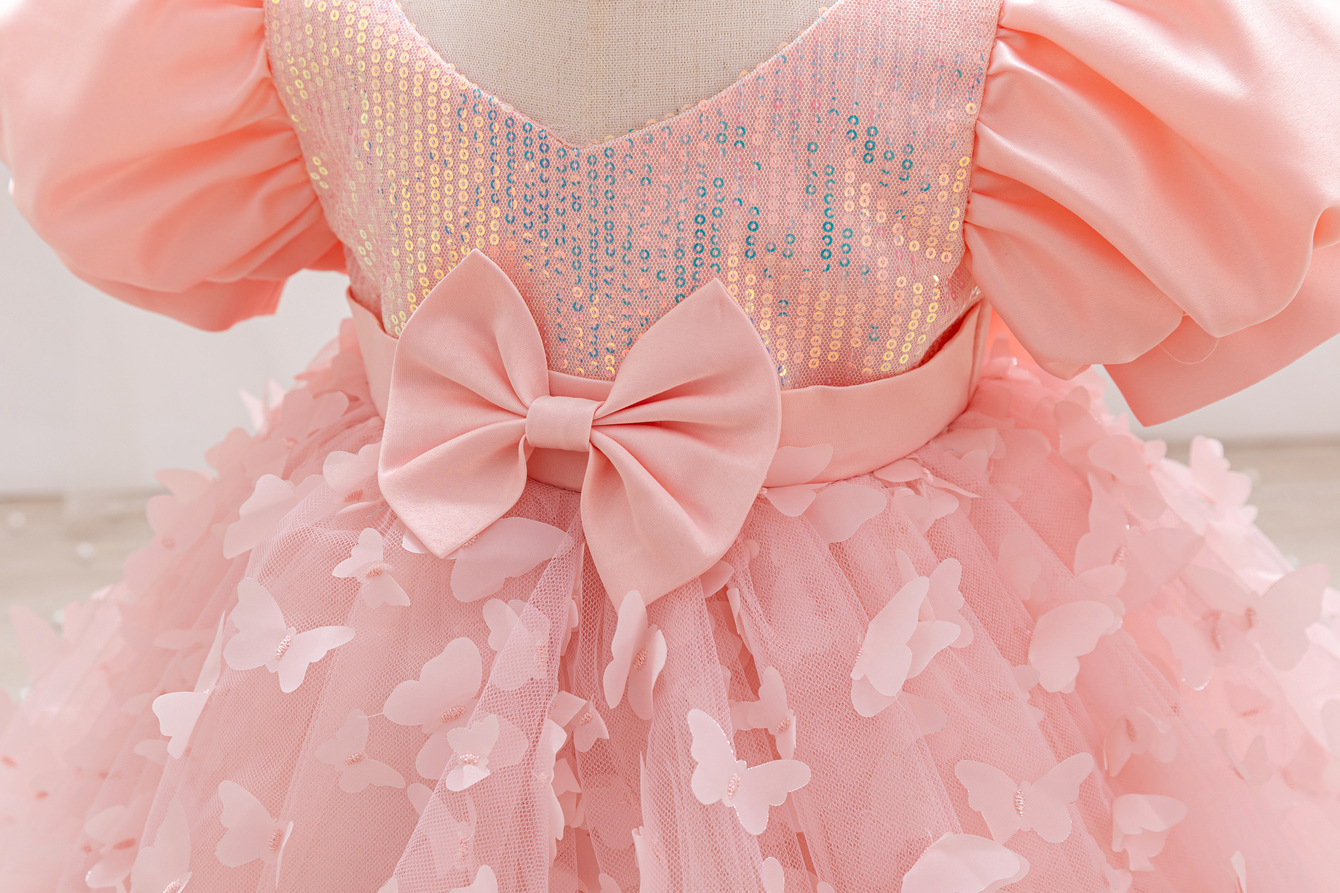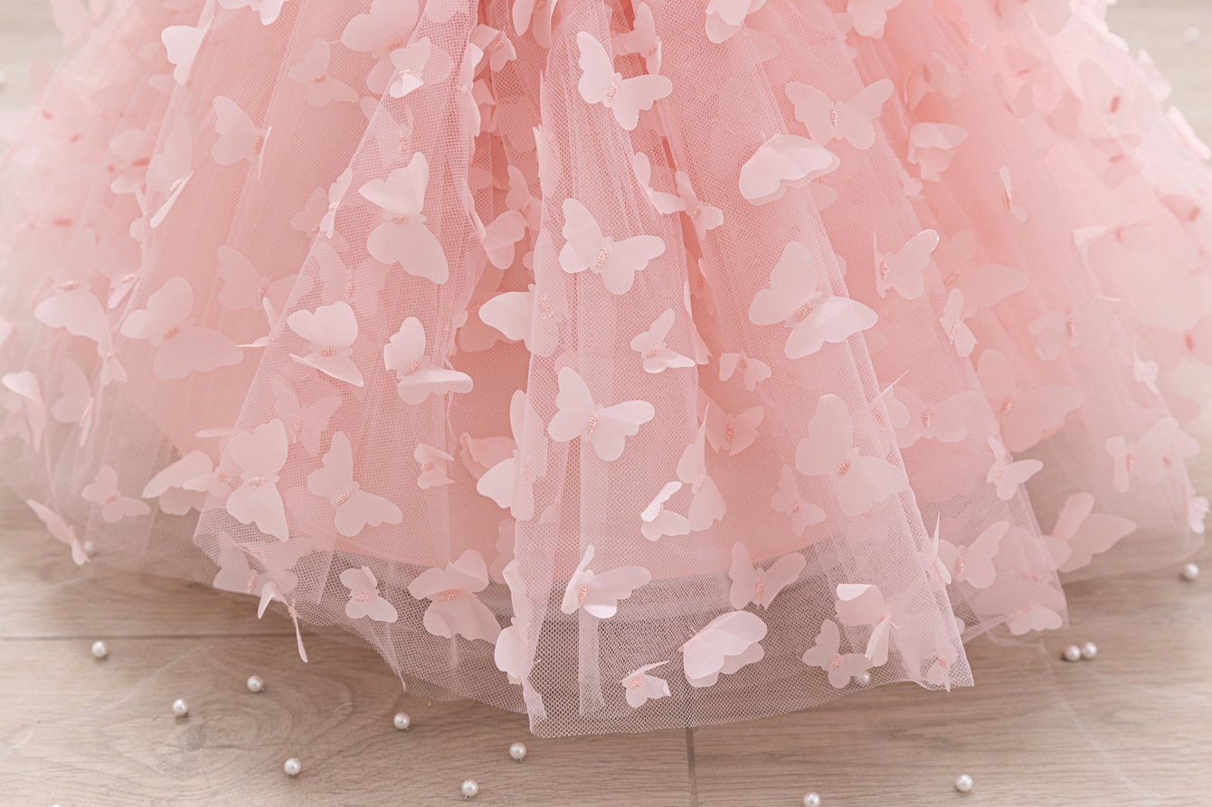 女童公主裙网纱立体蝴蝶童礼服新款女中童蓬蓬裙生日周岁礼服裙子