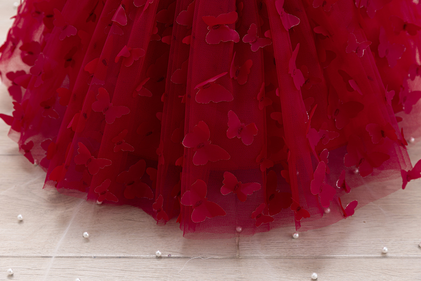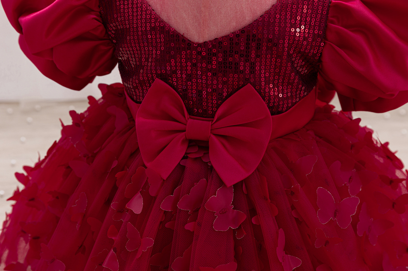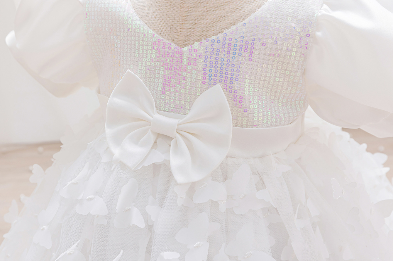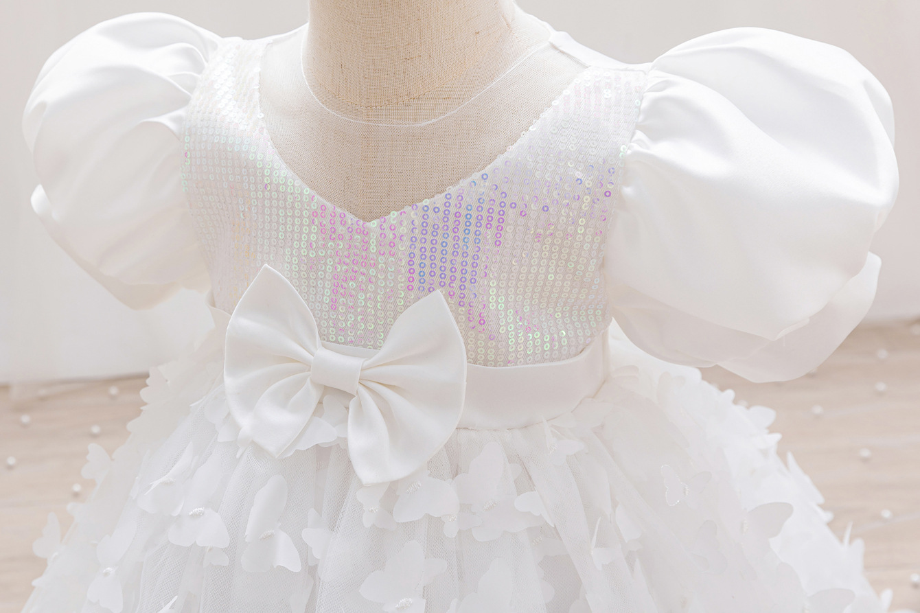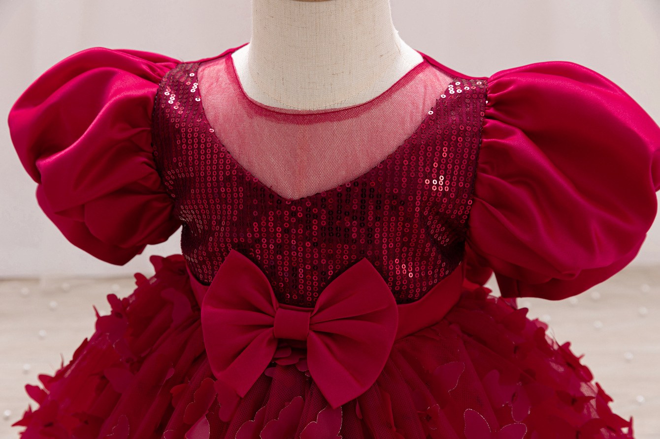女童公主裙网纱立体蝴蝶童礼服新款女中童蓬蓬裙生日周岁礼服裙子
