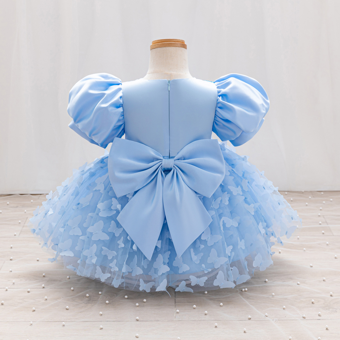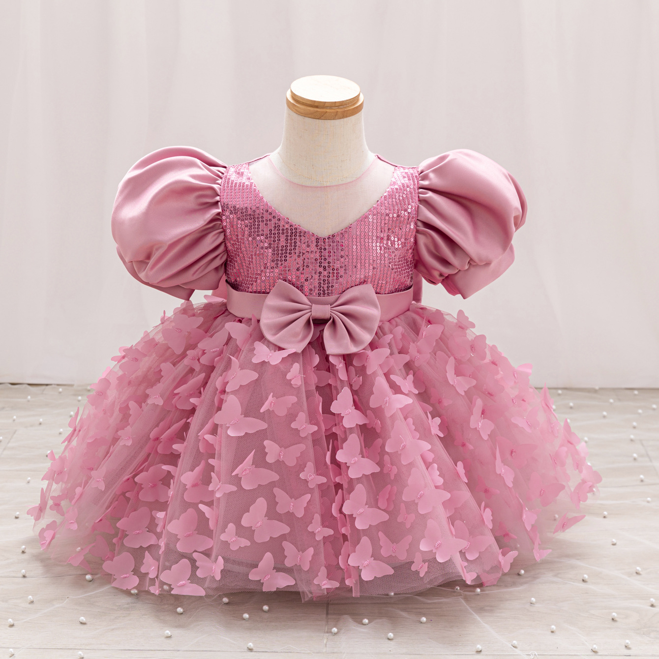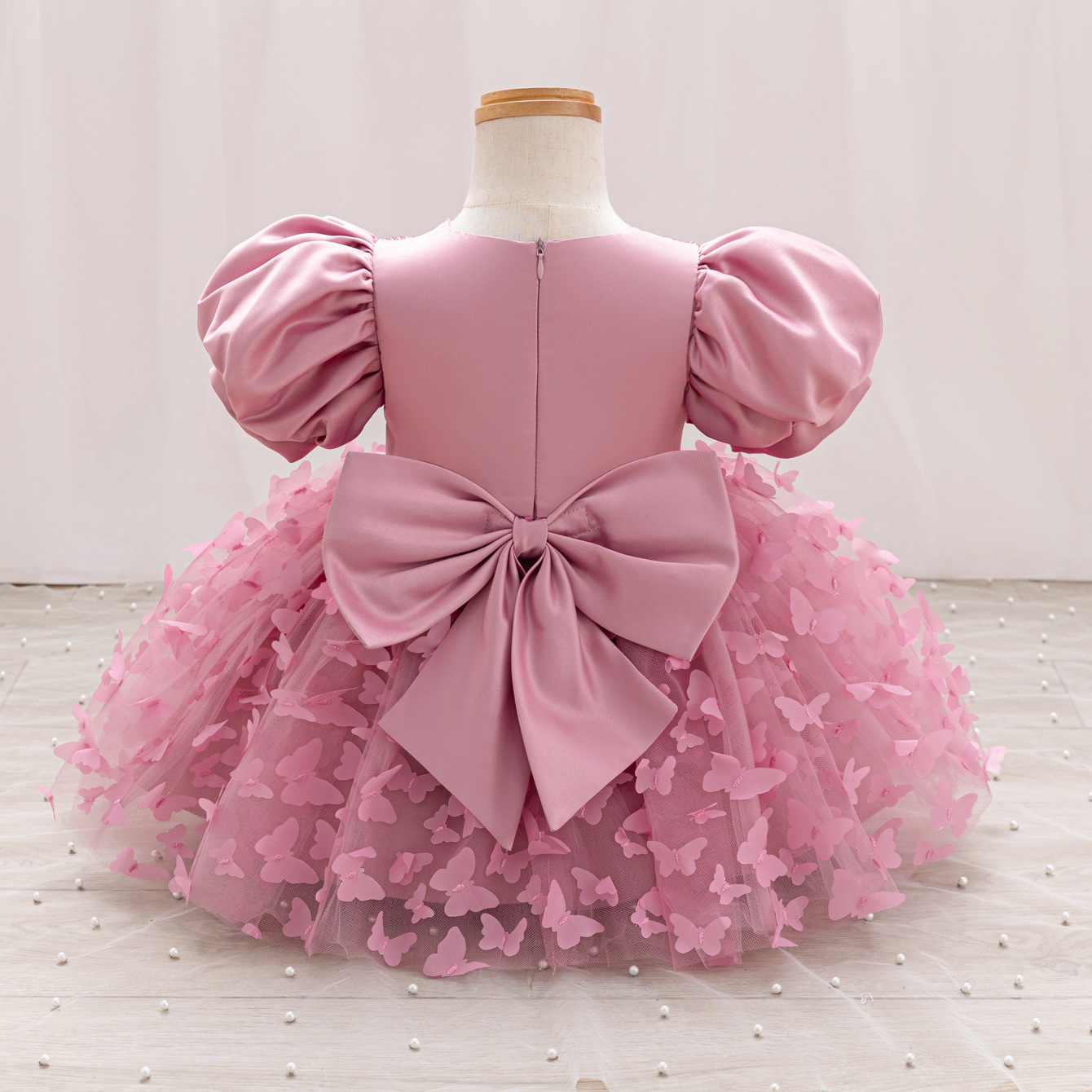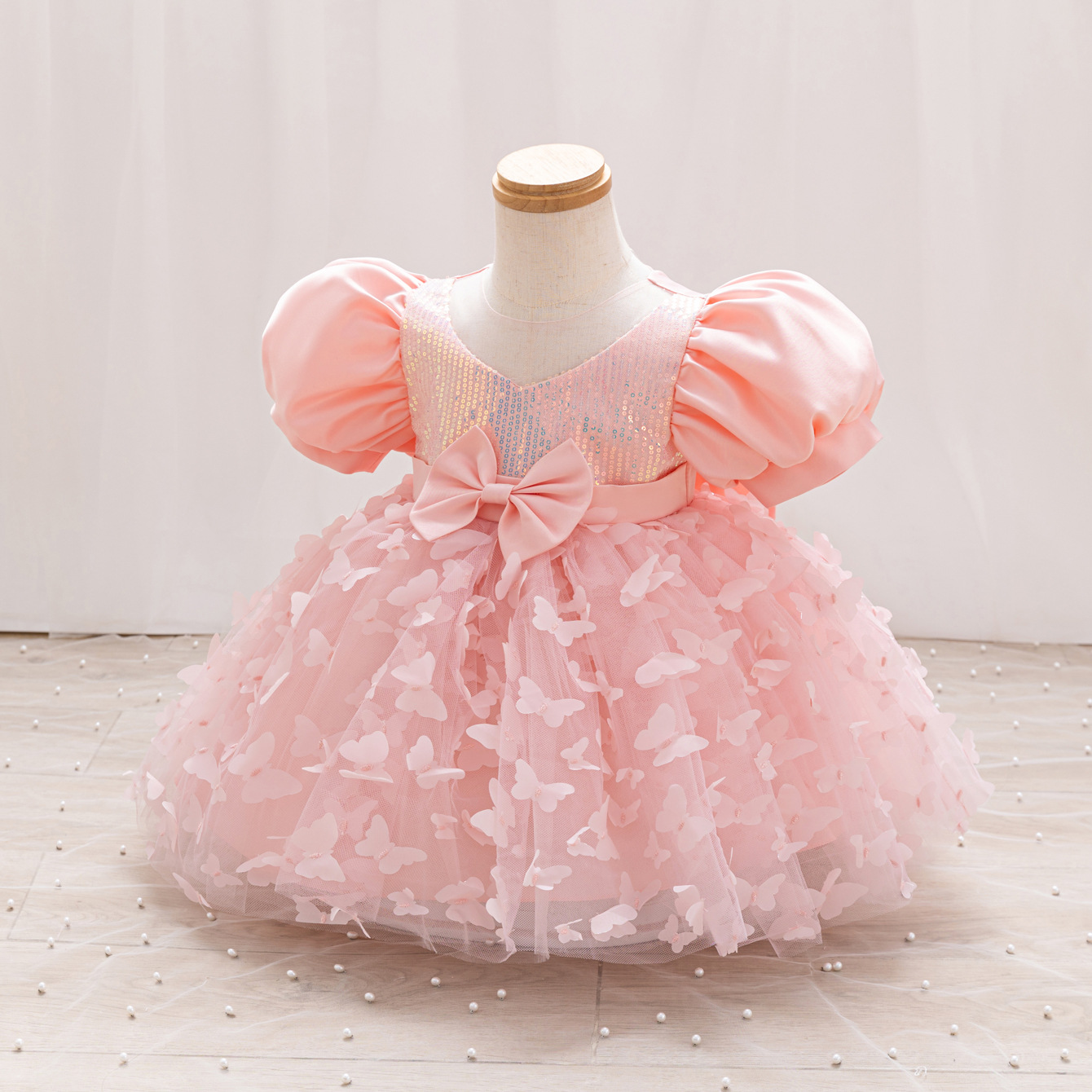 女童公主裙网纱立体蝴蝶童礼服新款女中童蓬蓬裙生日周岁礼服裙子