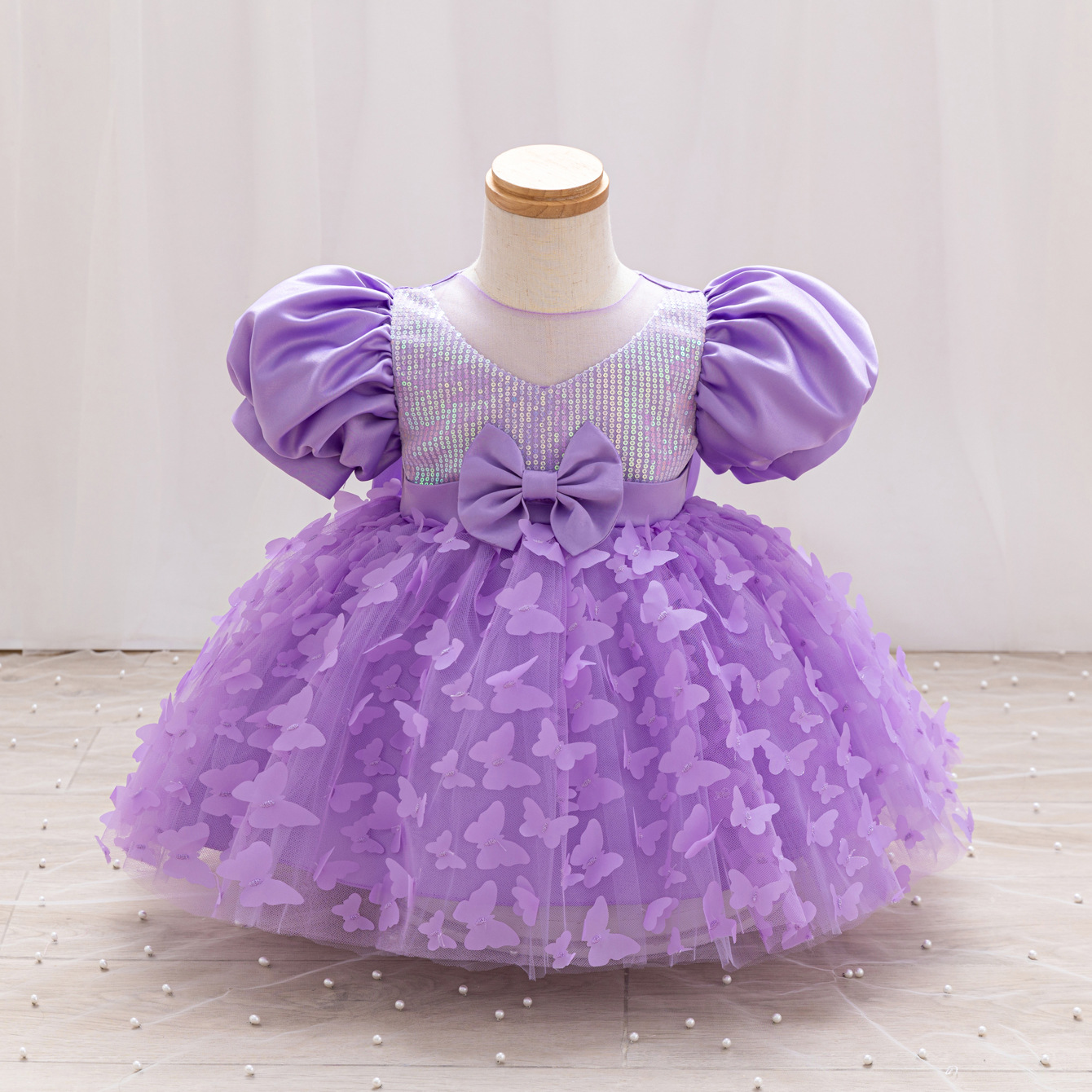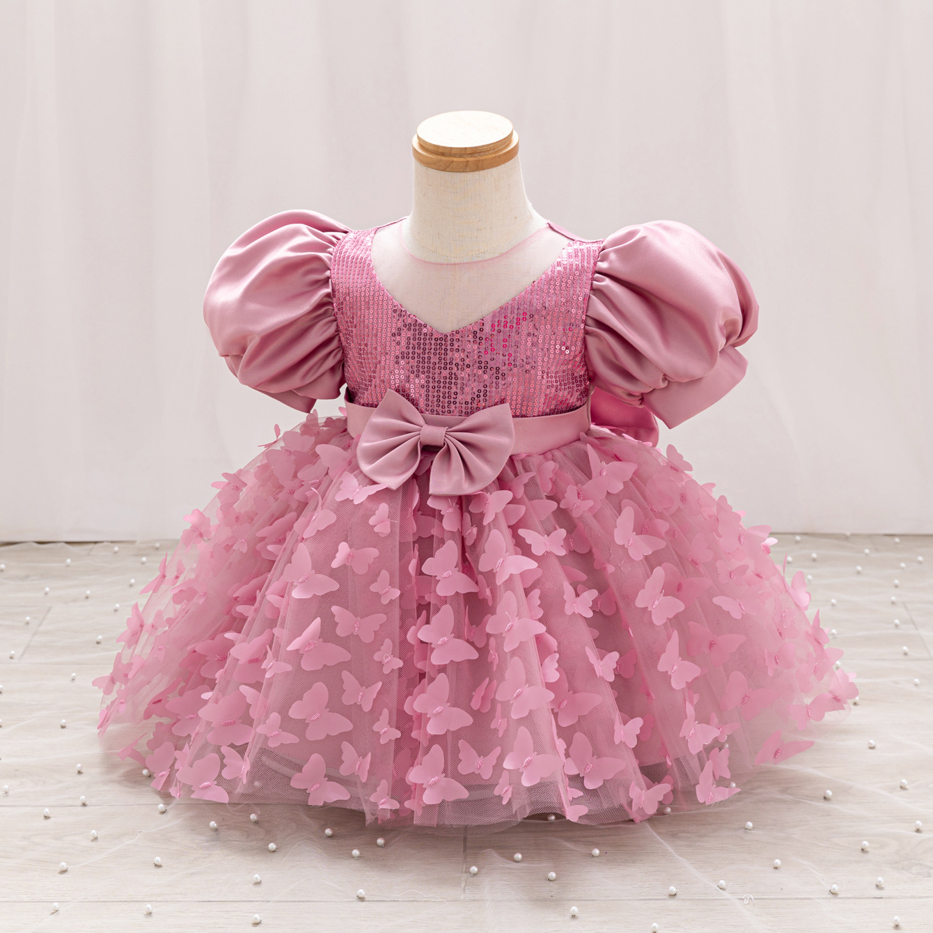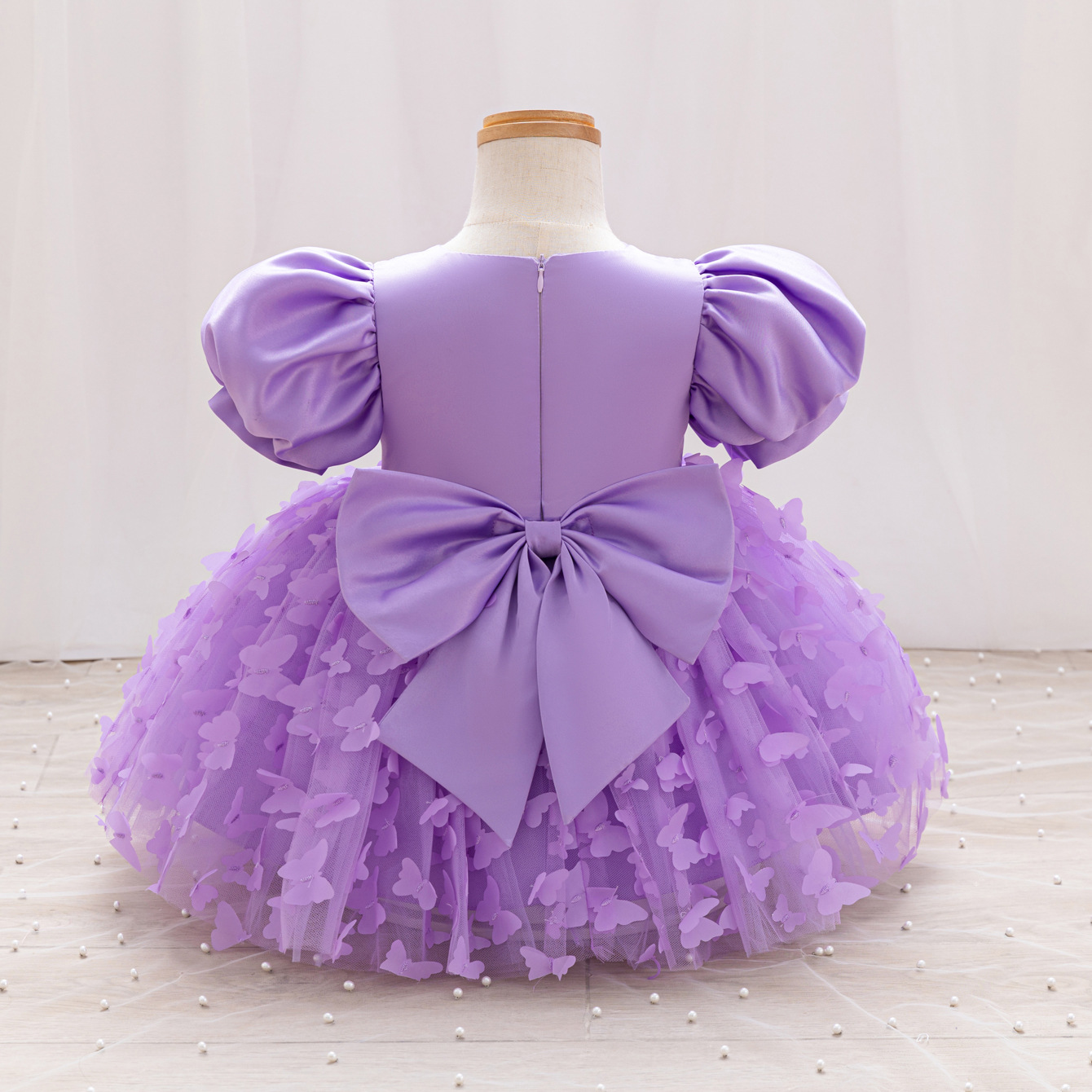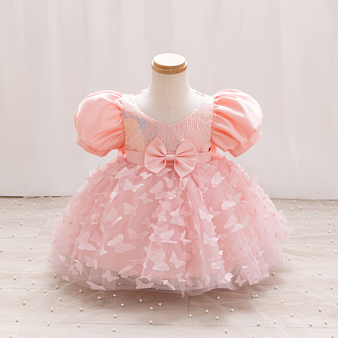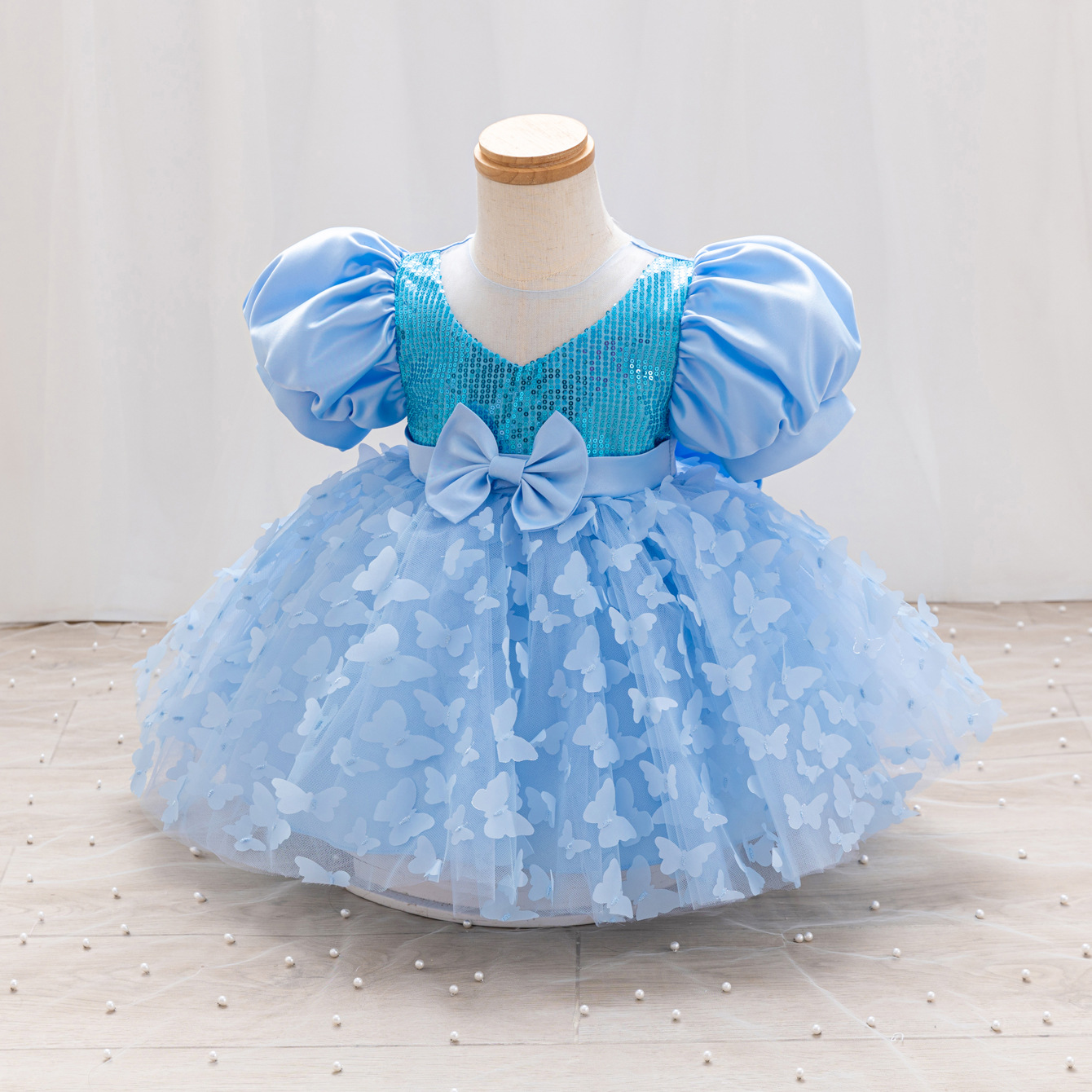 女童公主裙网纱立体蝴蝶童礼服新款女中童蓬蓬裙生日周岁礼服裙子