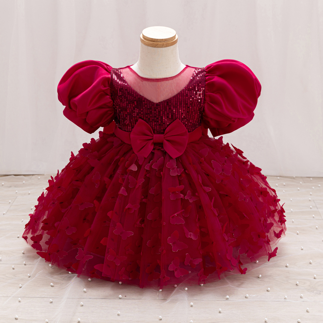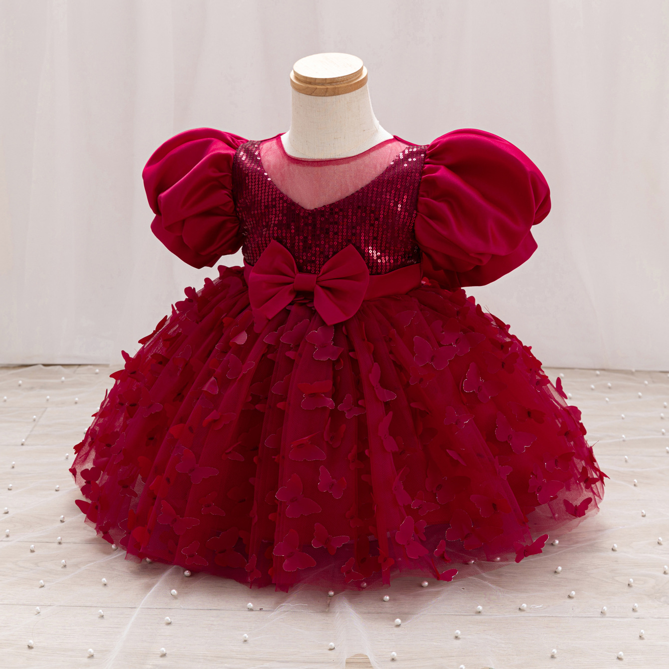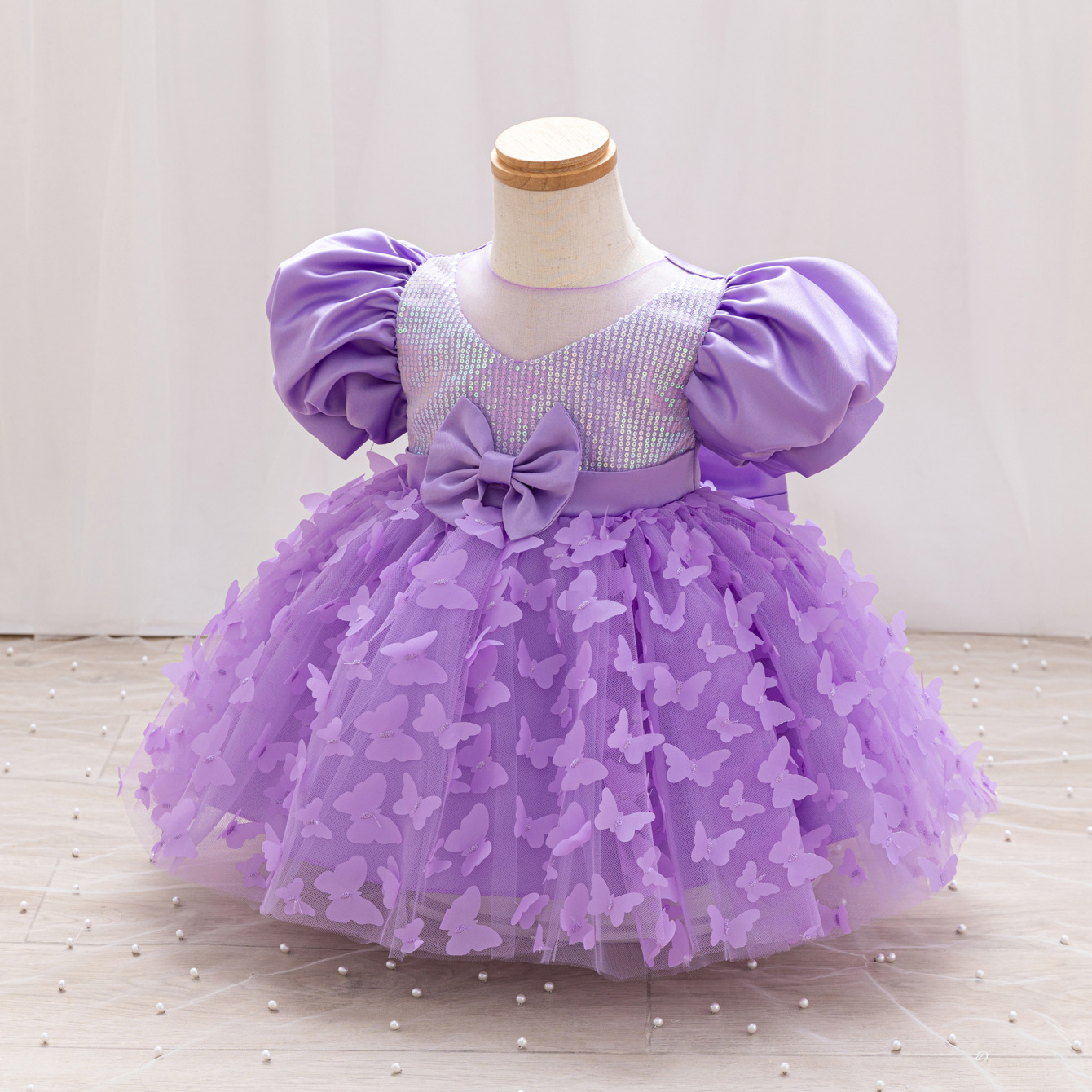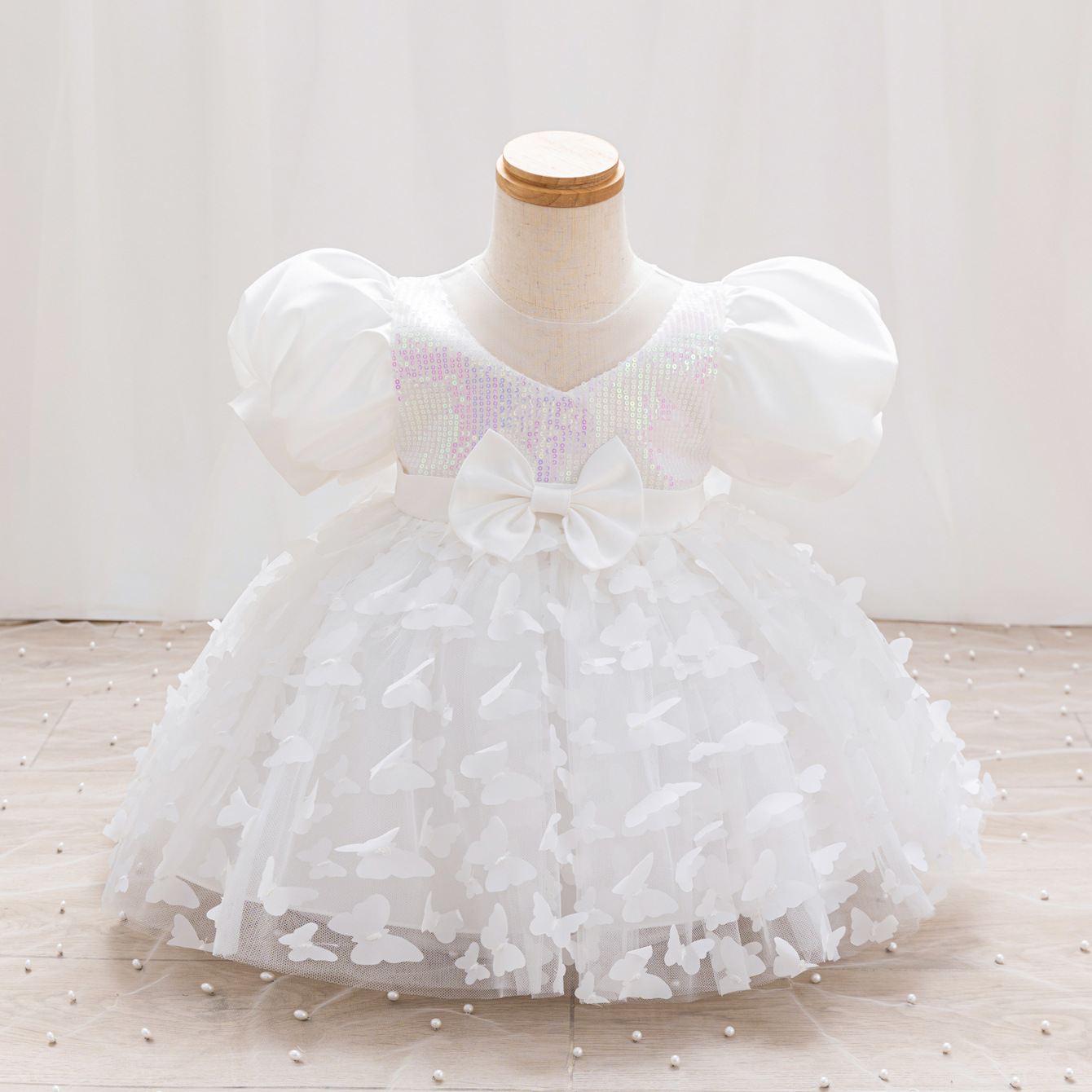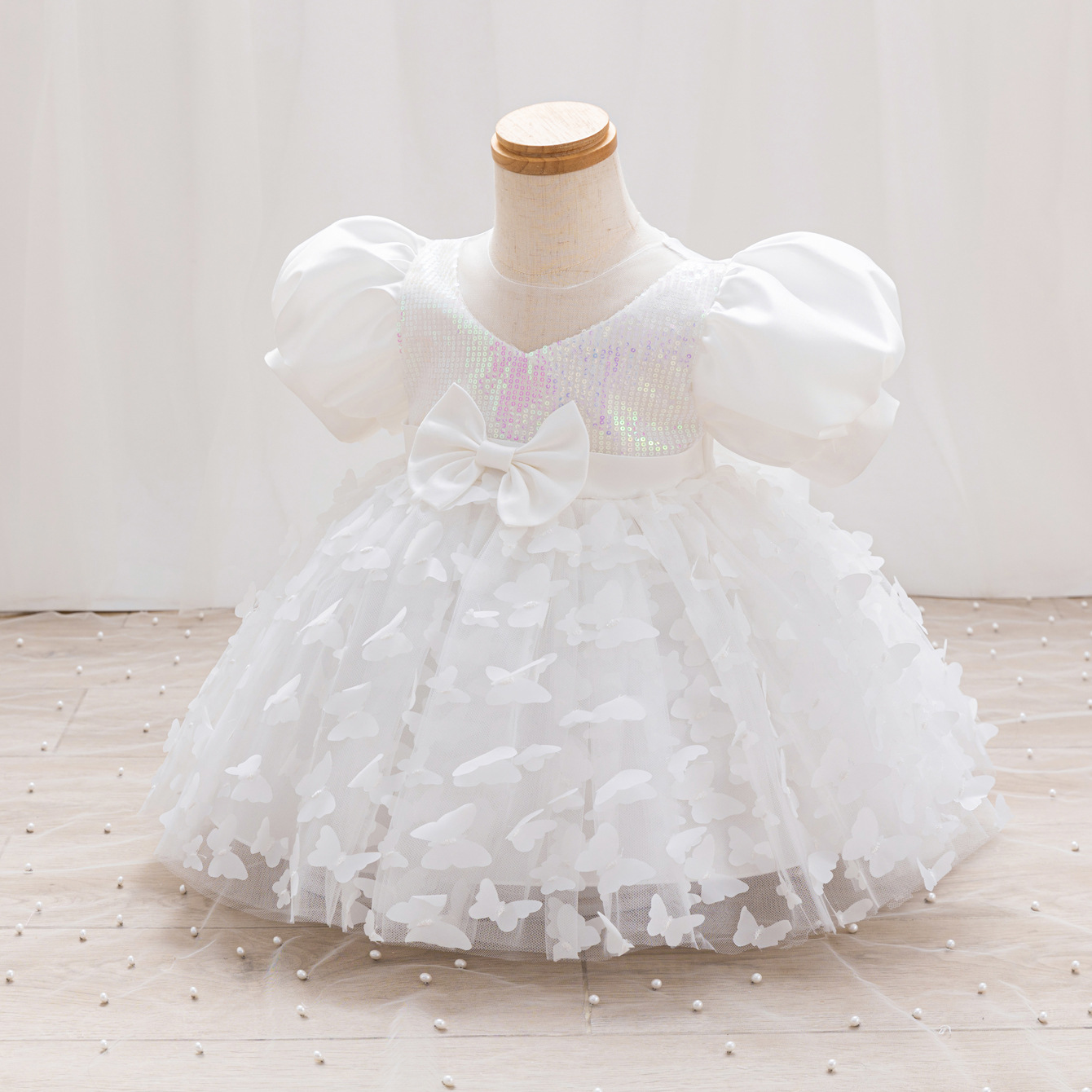 女童公主裙网纱立体蝴蝶童礼服新款女中童蓬蓬裙生日周岁礼服裙子