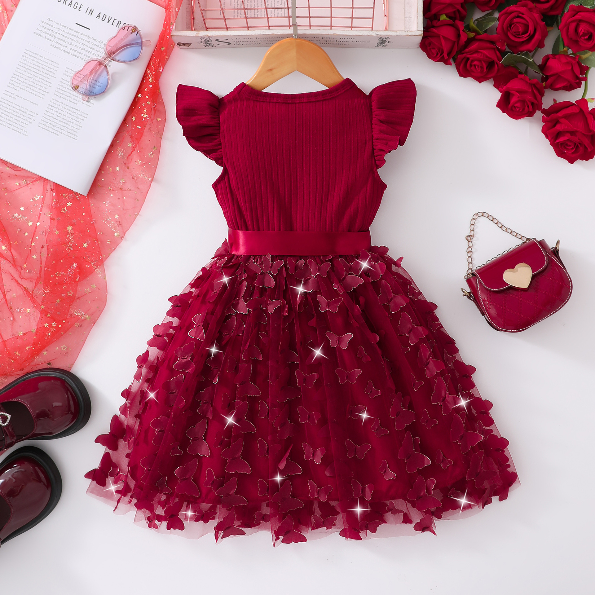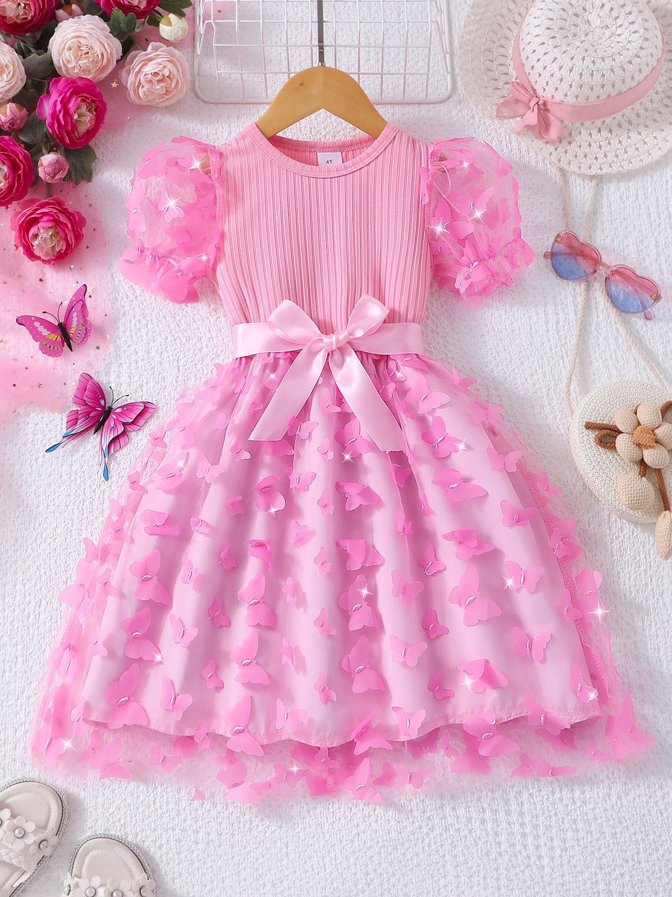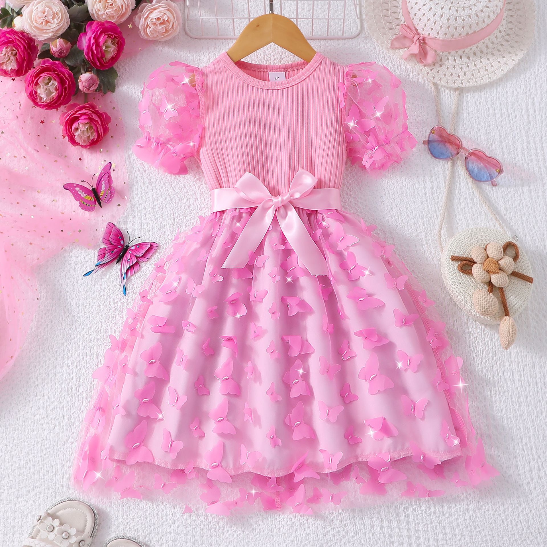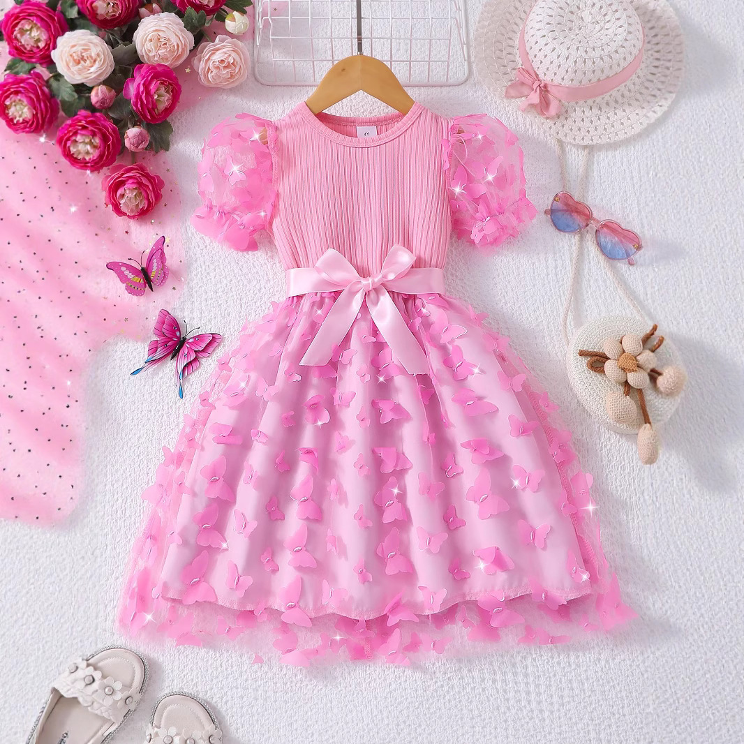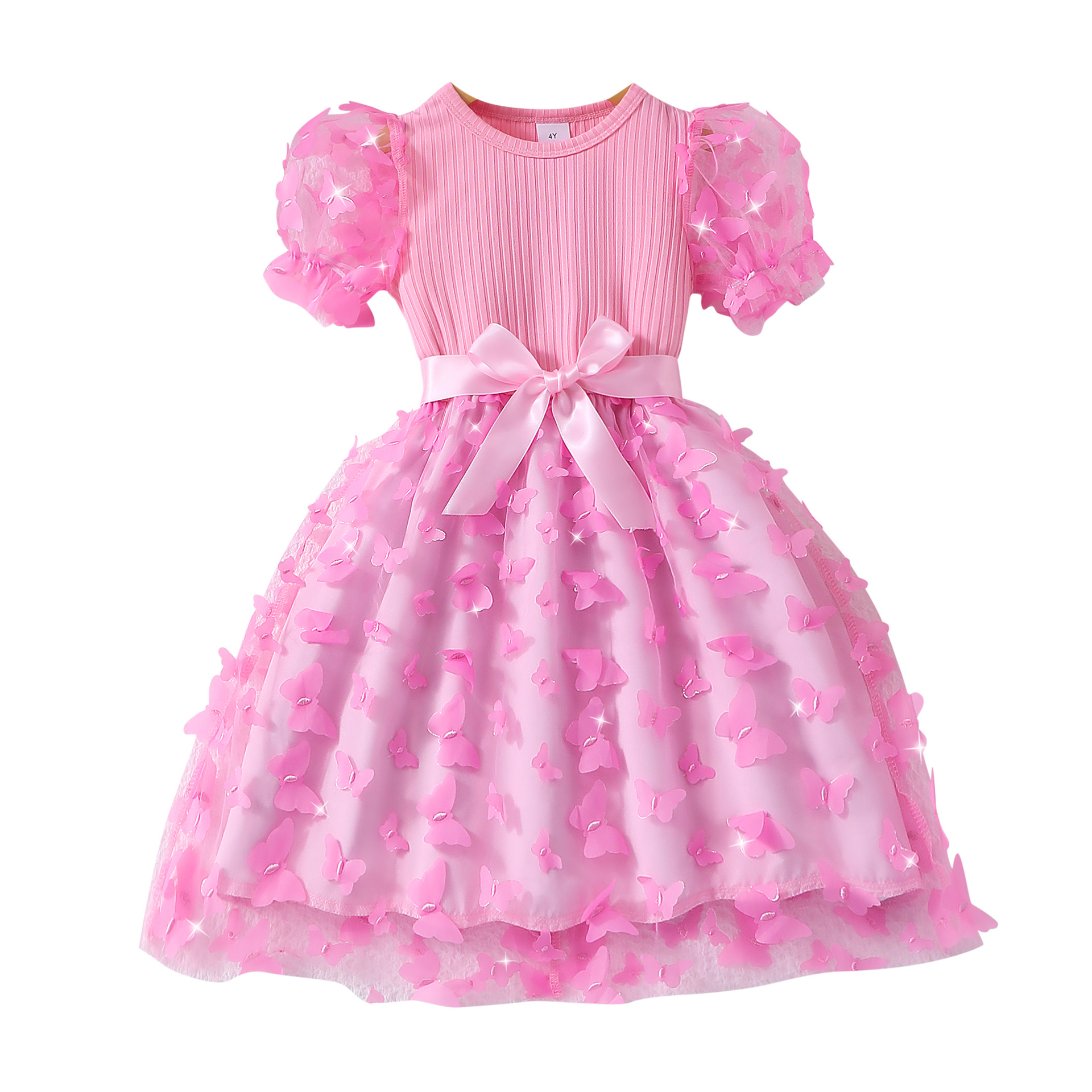 中小童女连衣裙,束胸立体蝴蝶飞袖连衣裙