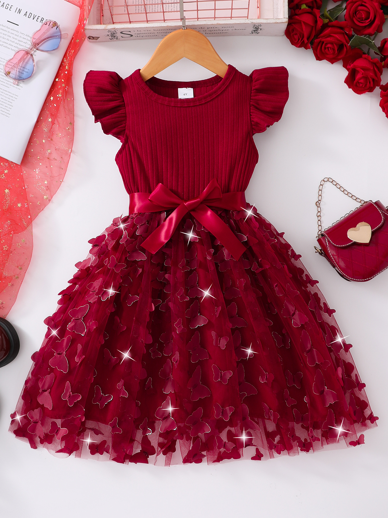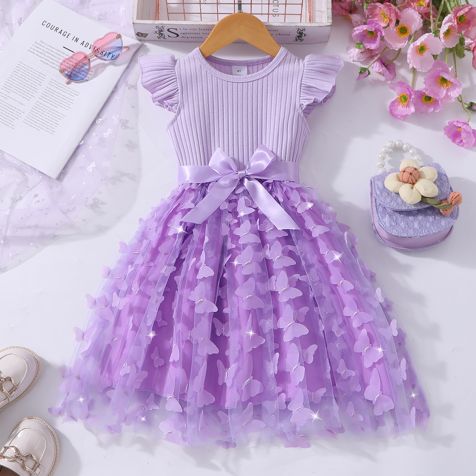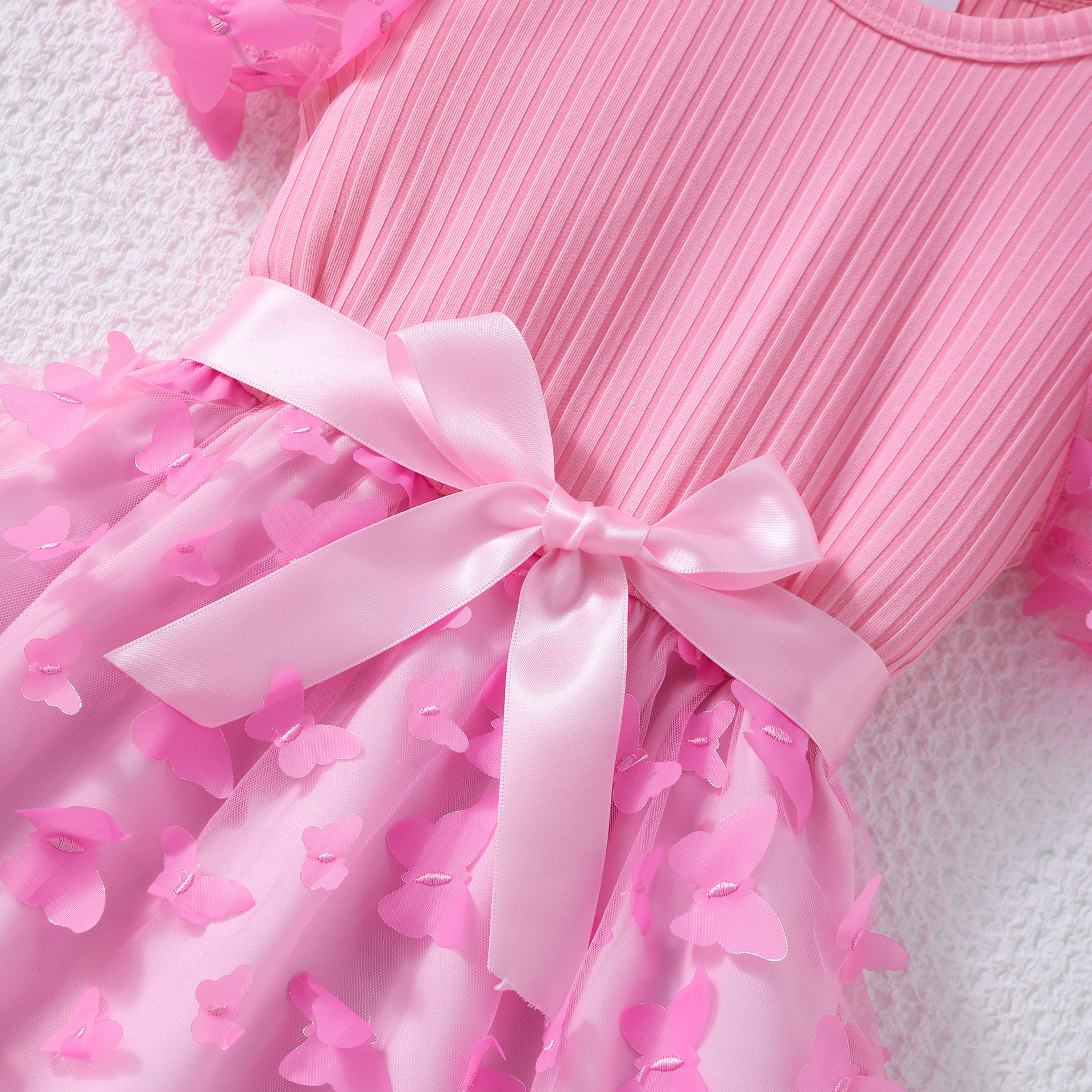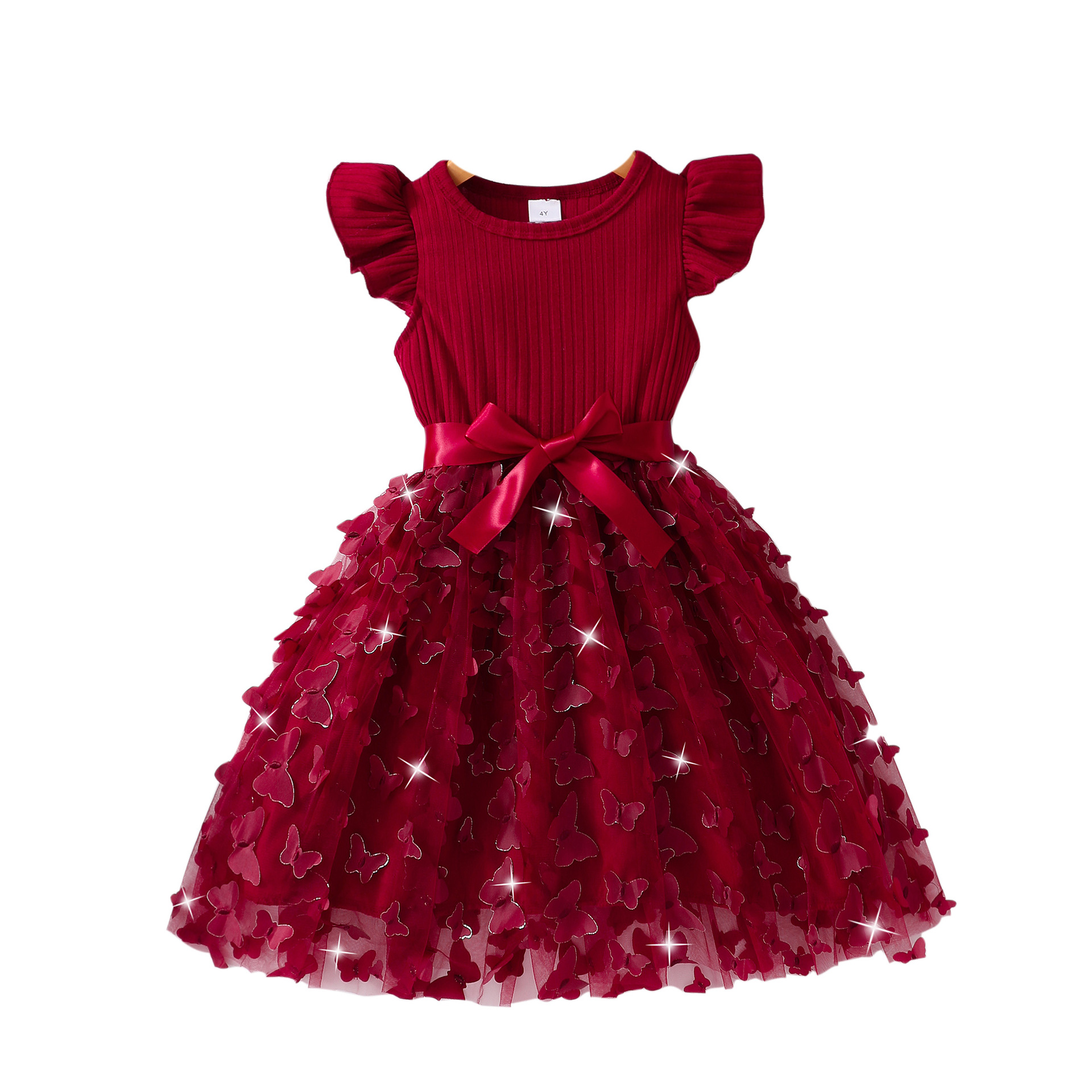中小童女连衣裙,束胸立体蝴蝶飞袖连衣裙