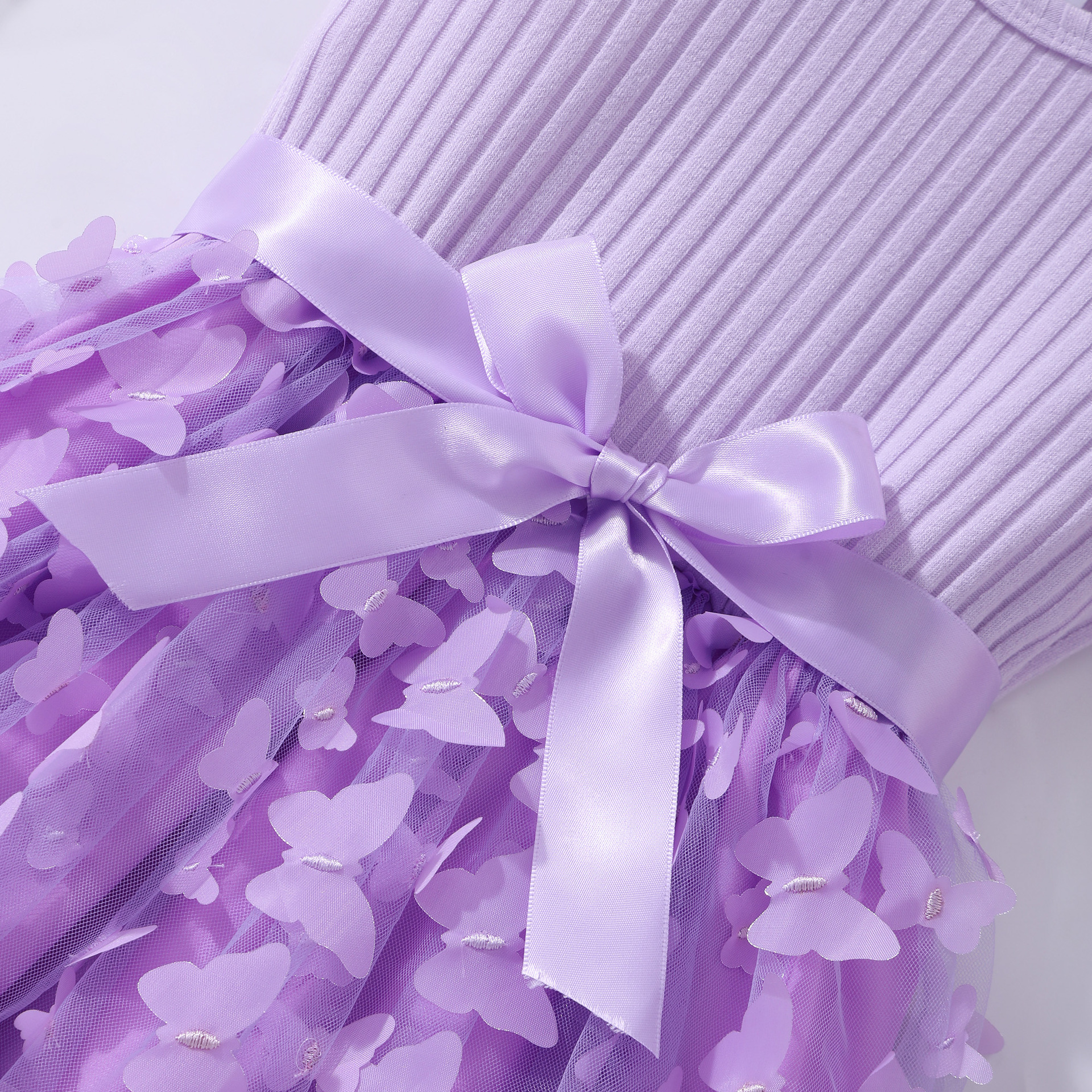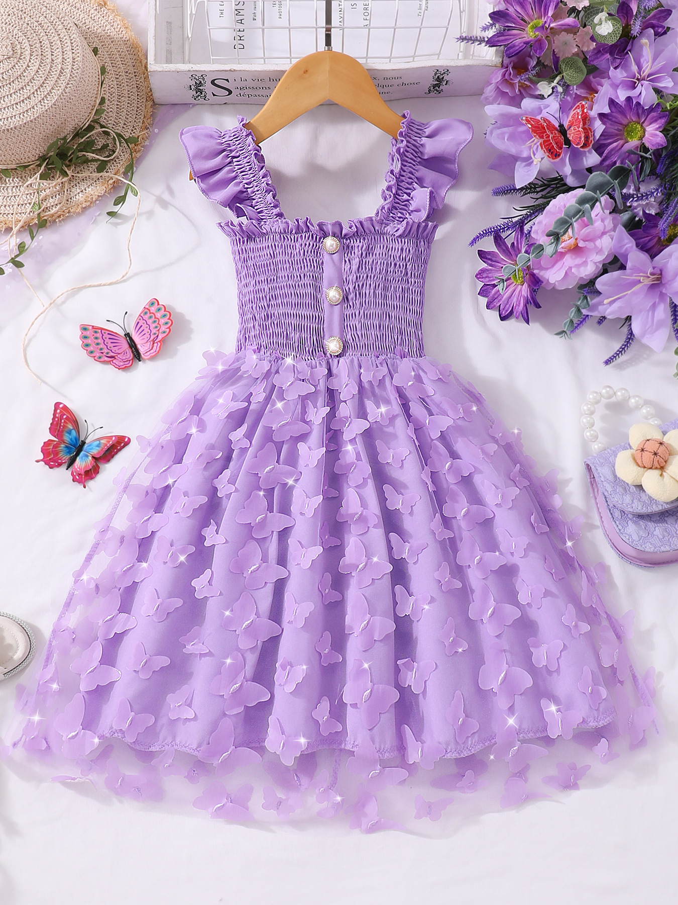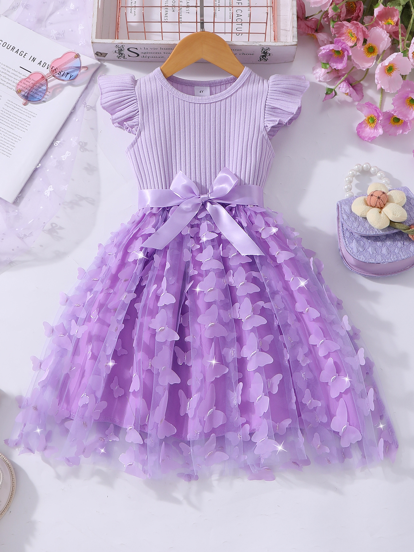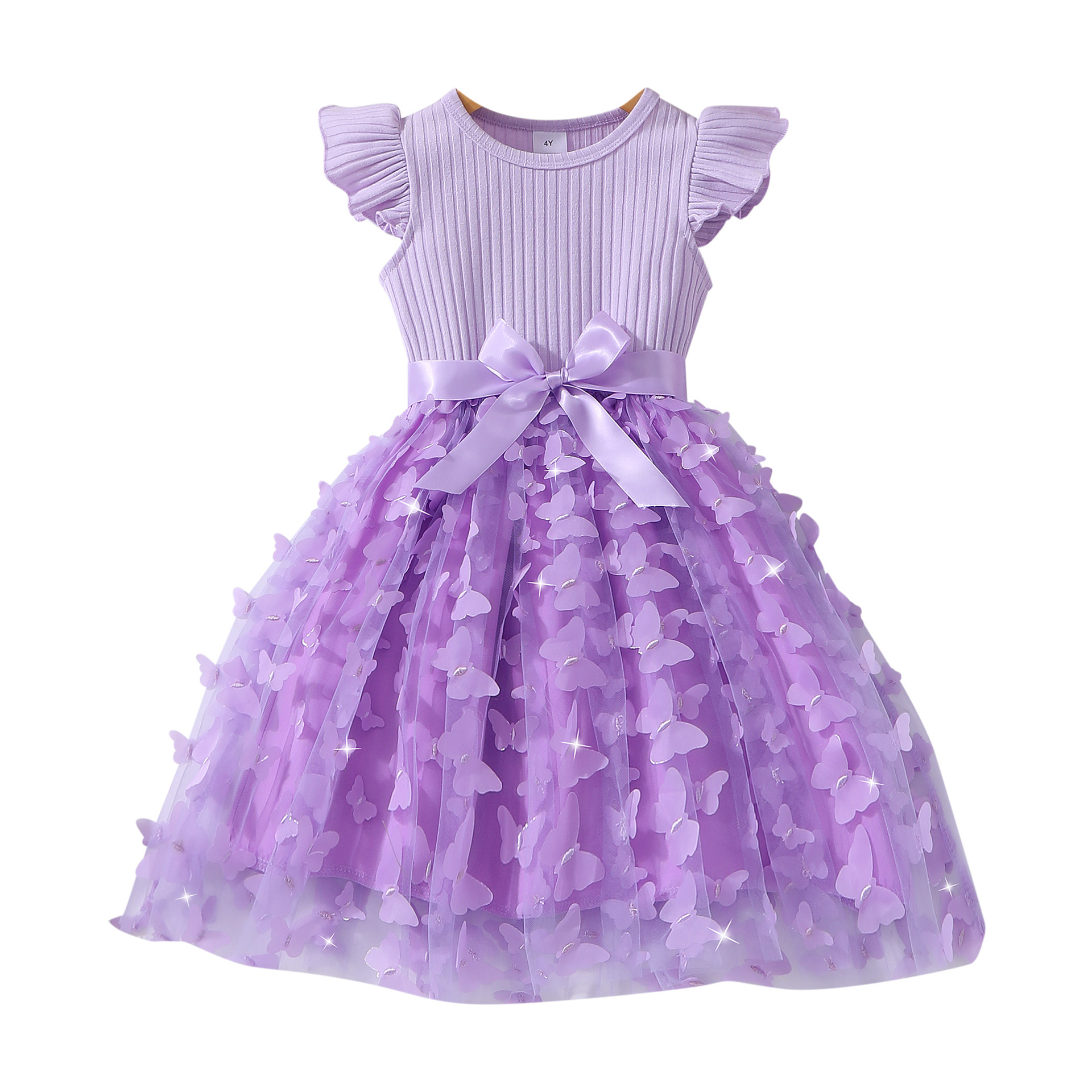 中小童女连衣裙,束胸立体蝴蝶飞袖连衣裙