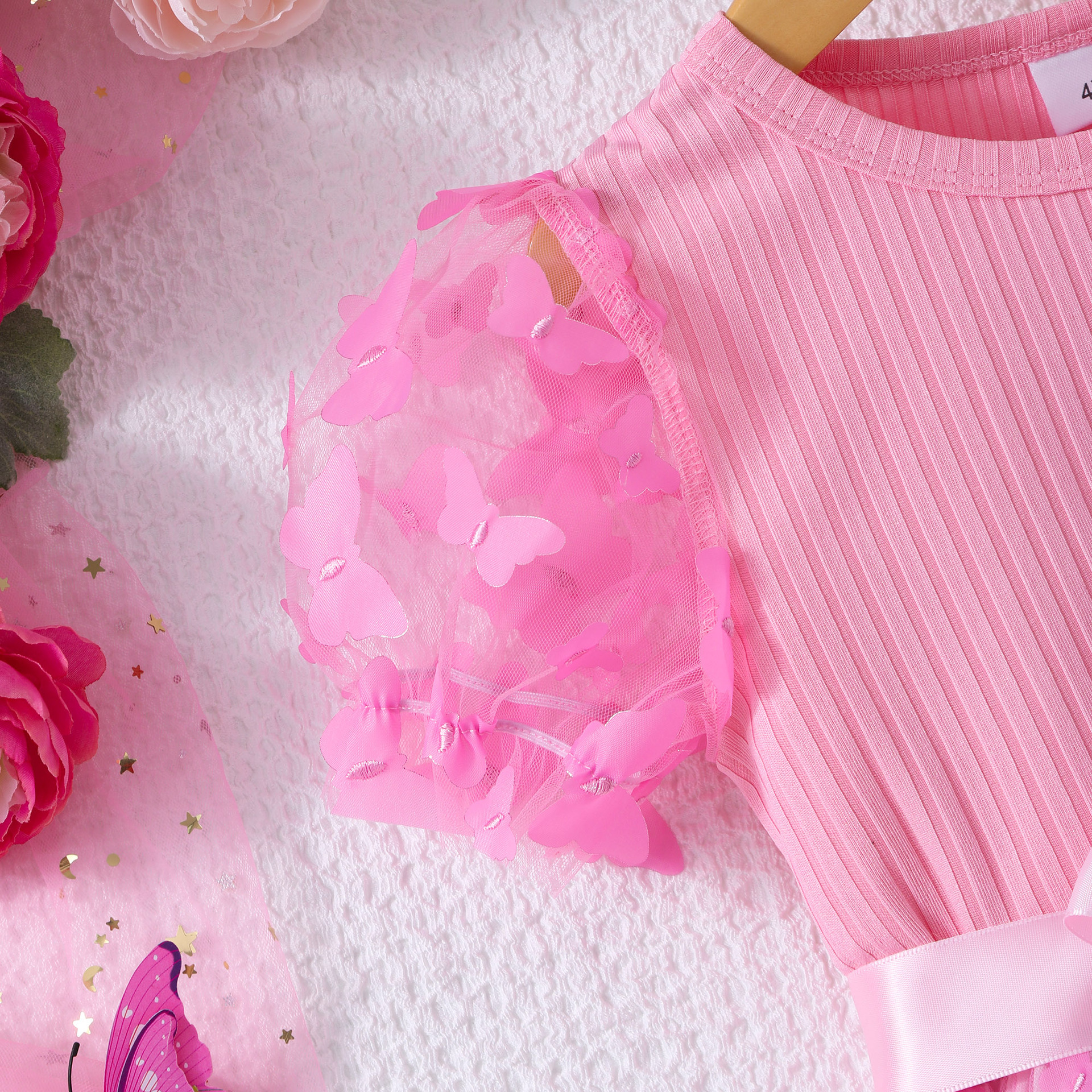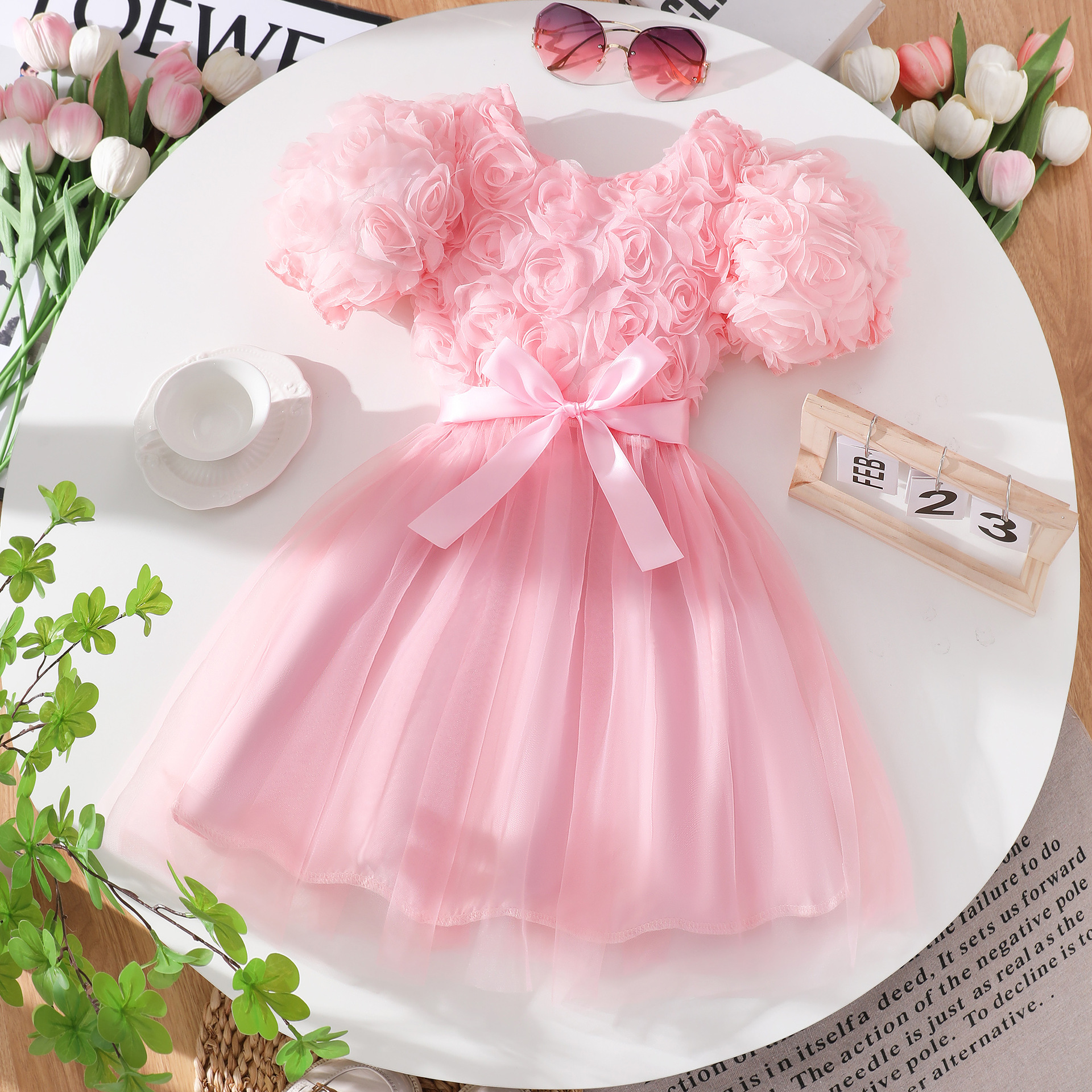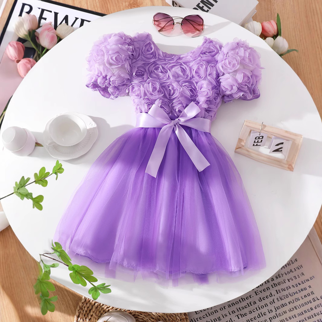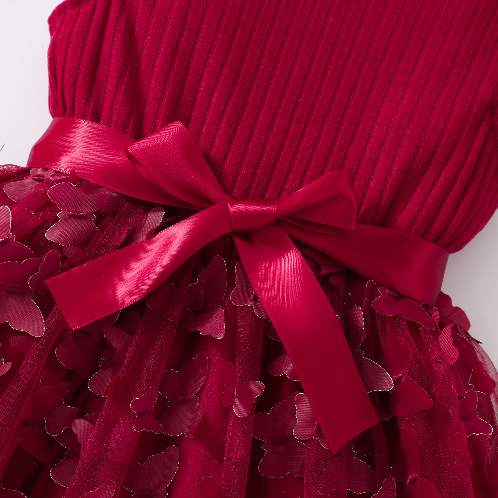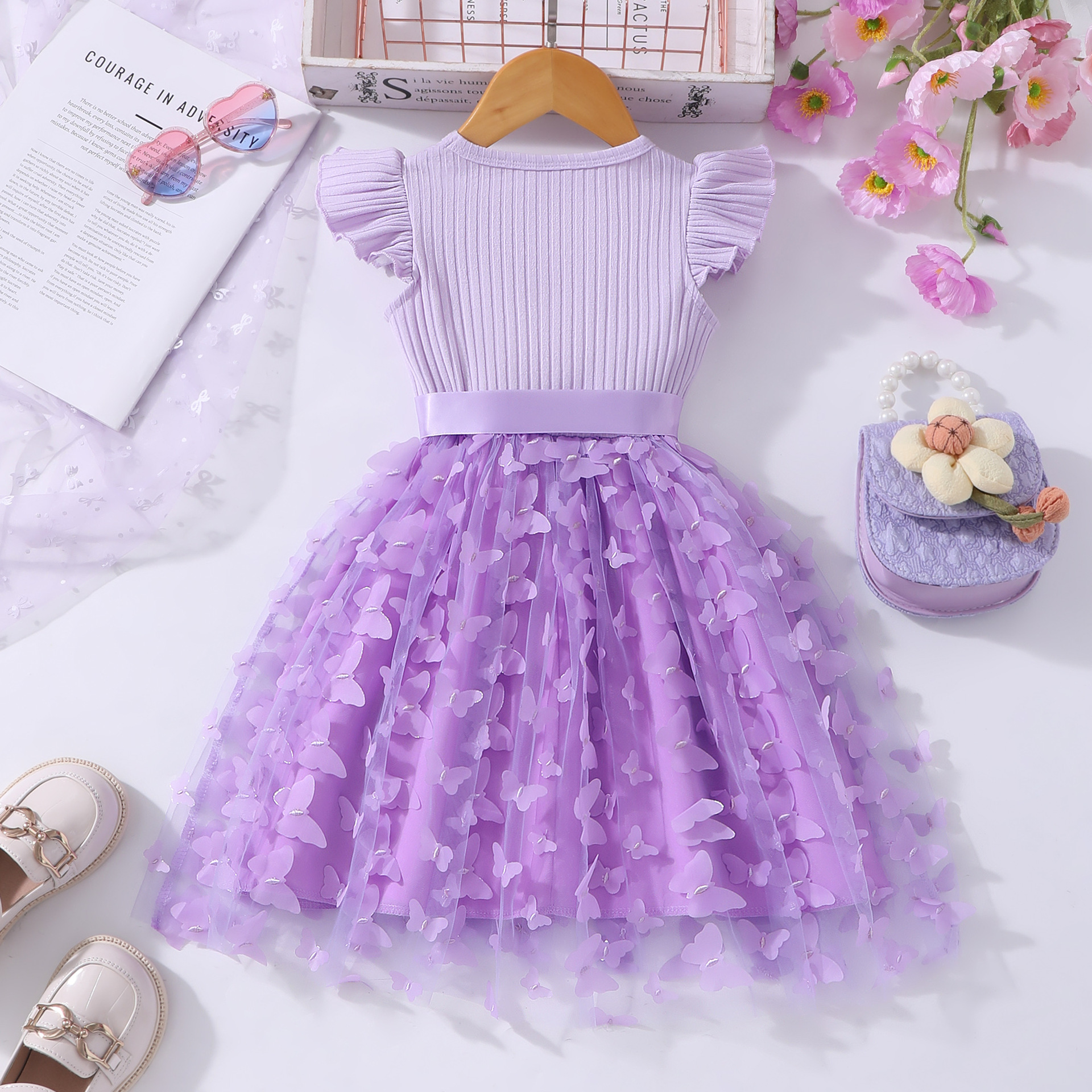 中小童女连衣裙,束胸立体蝴蝶飞袖连衣裙