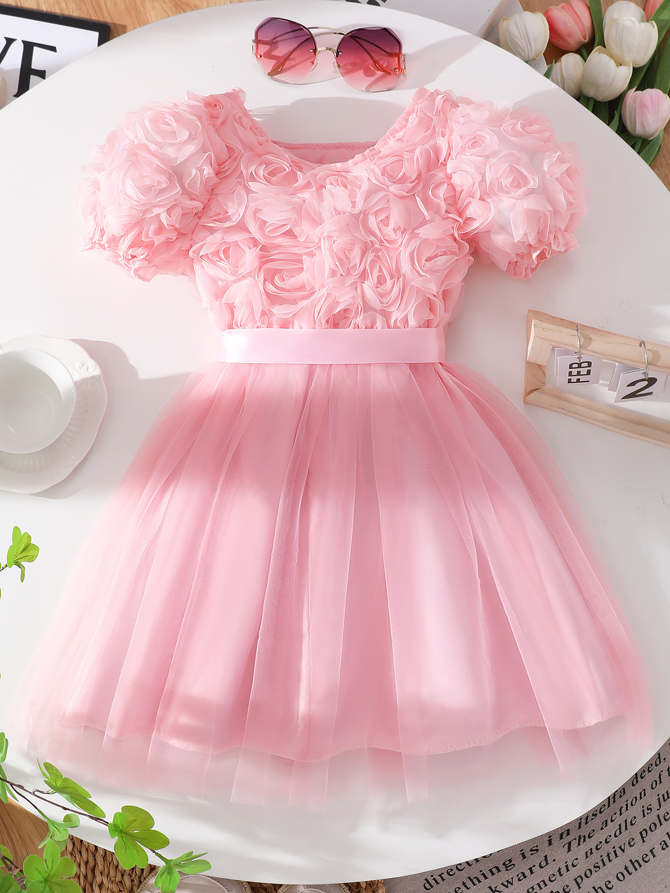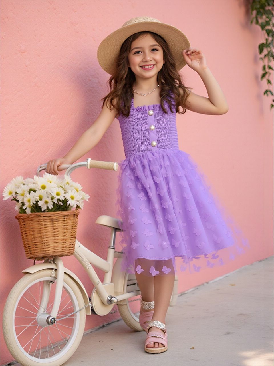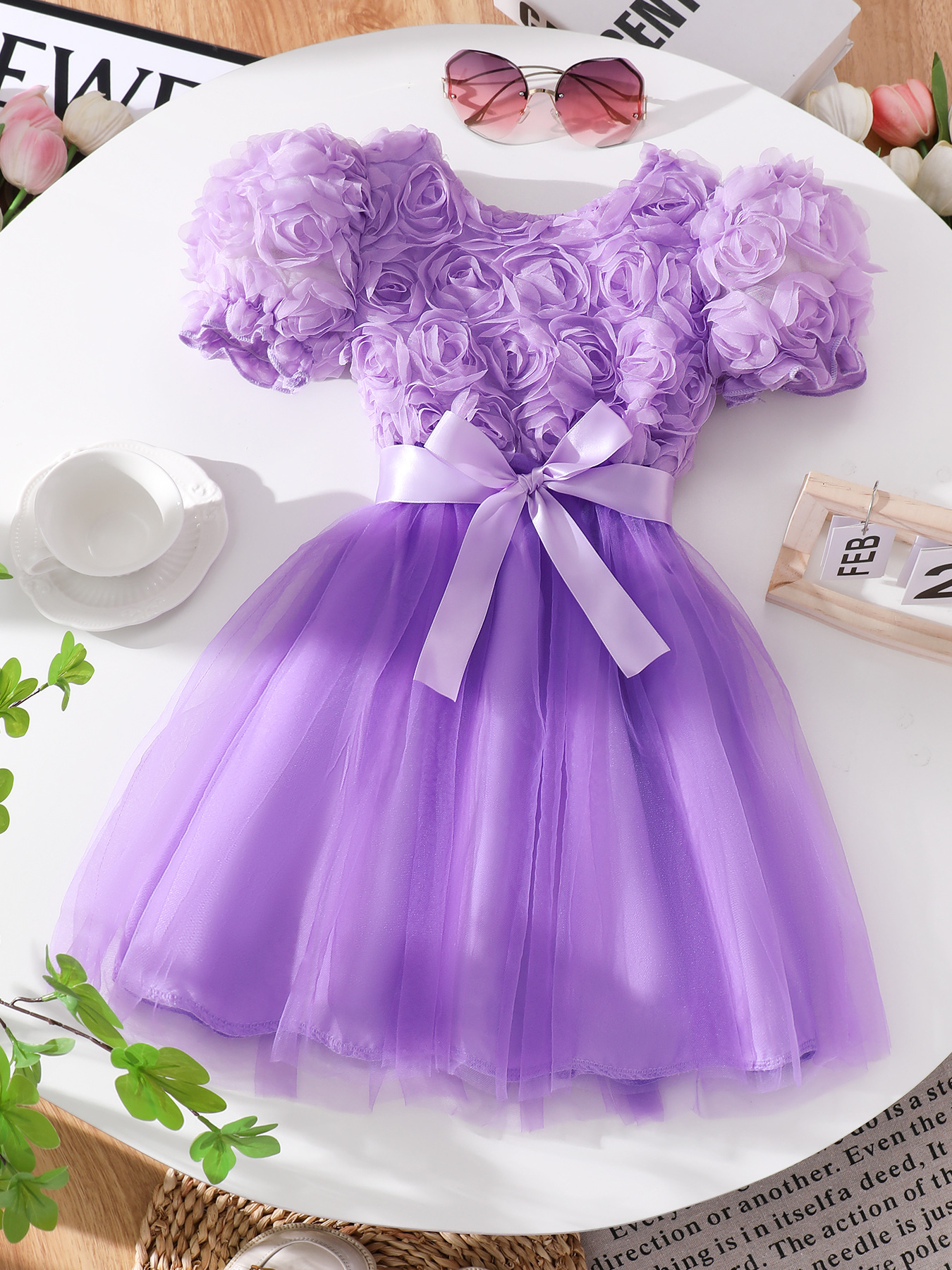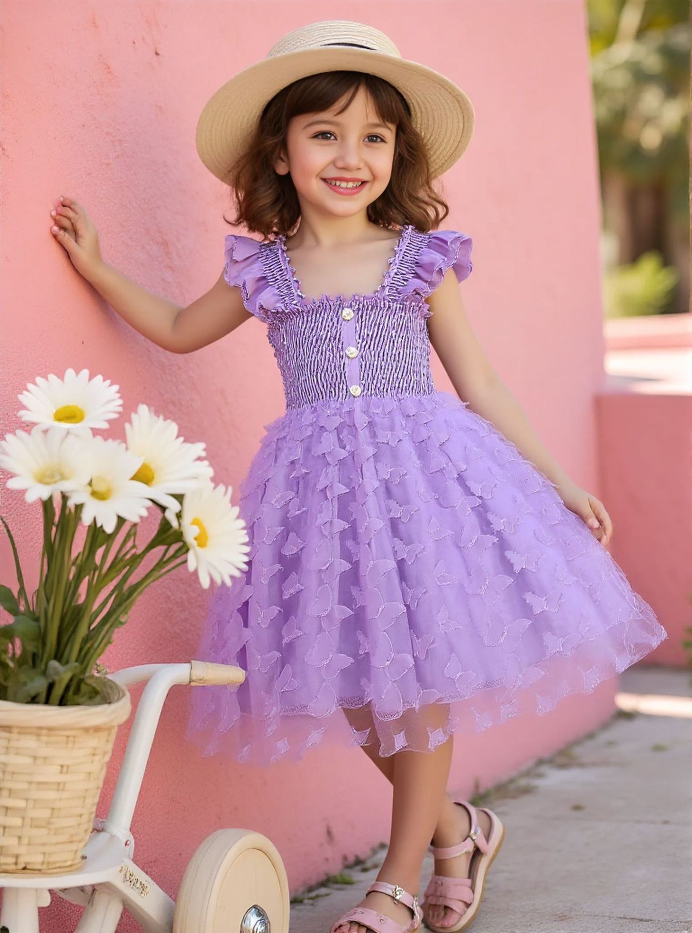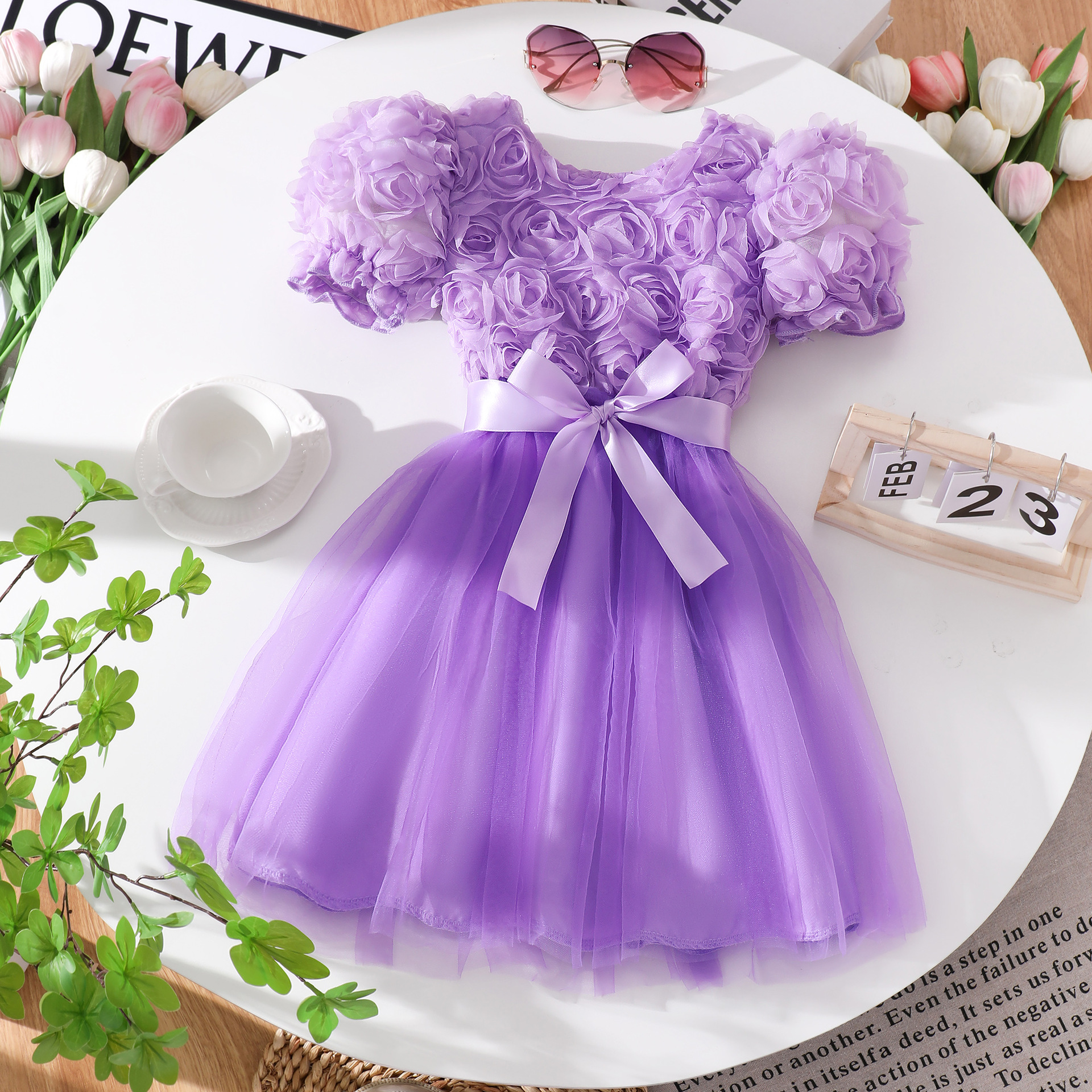 中小童女连衣裙,束胸立体蝴蝶飞袖连衣裙