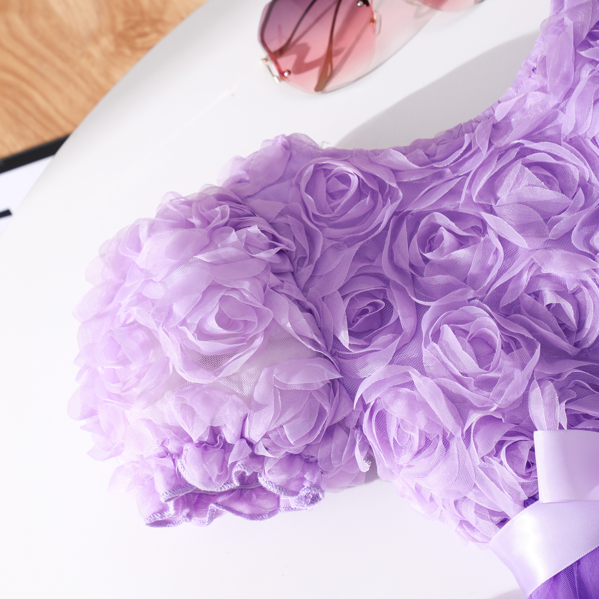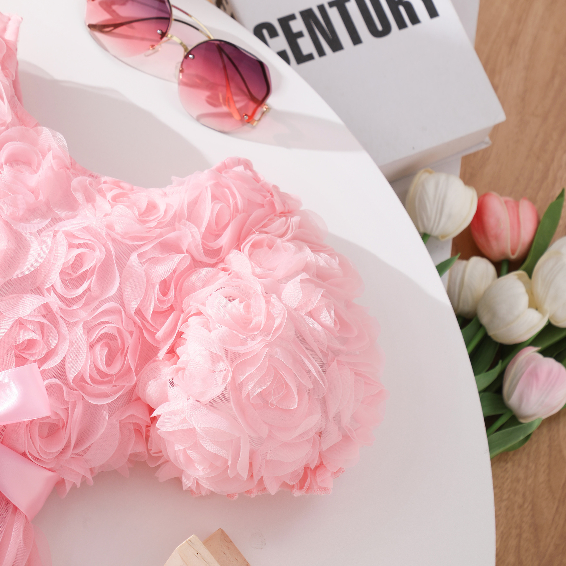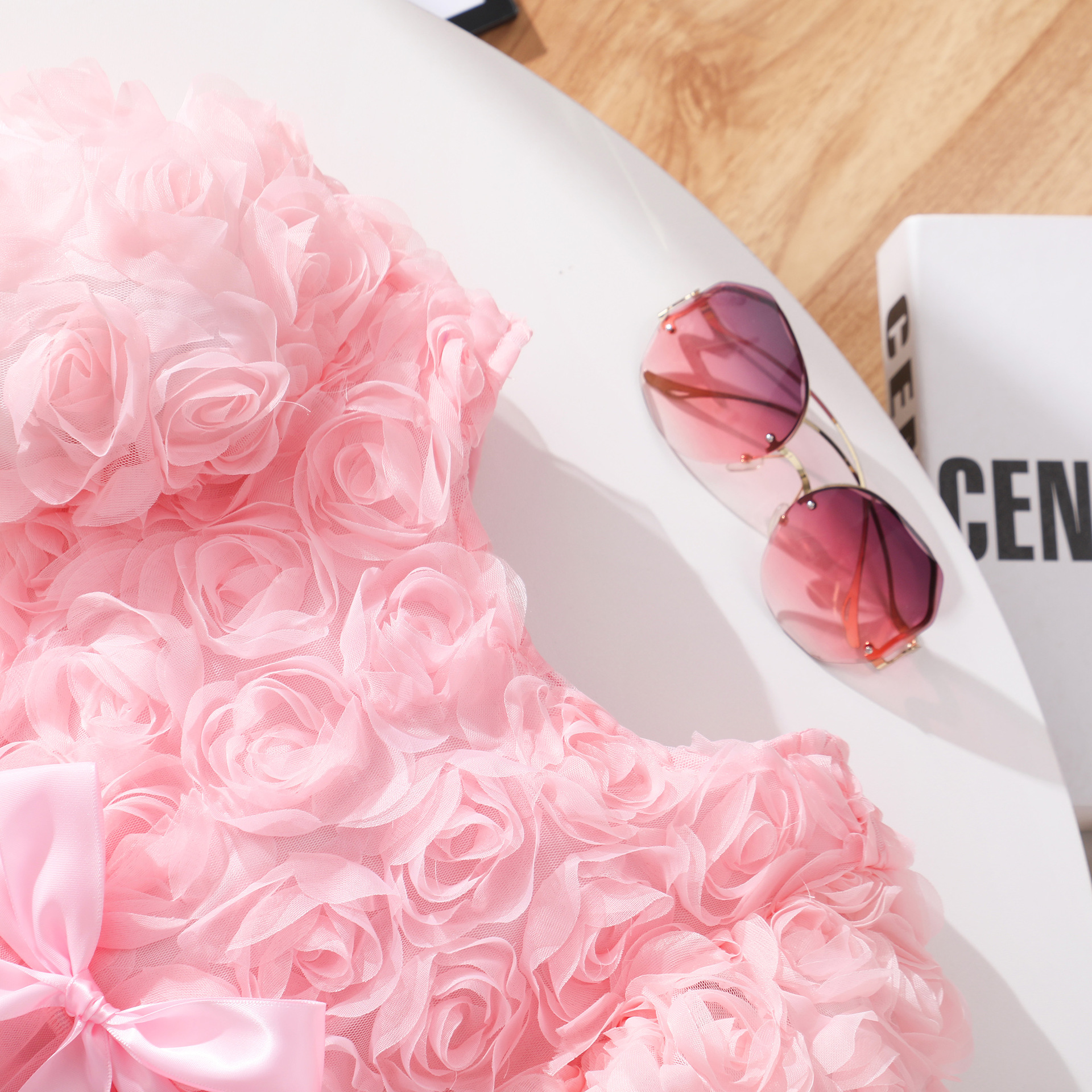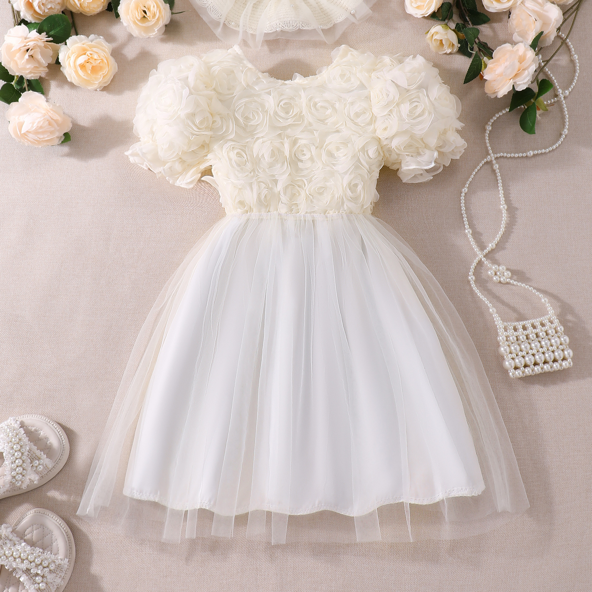 中小童女连衣裙,束胸立体蝴蝶飞袖连衣裙