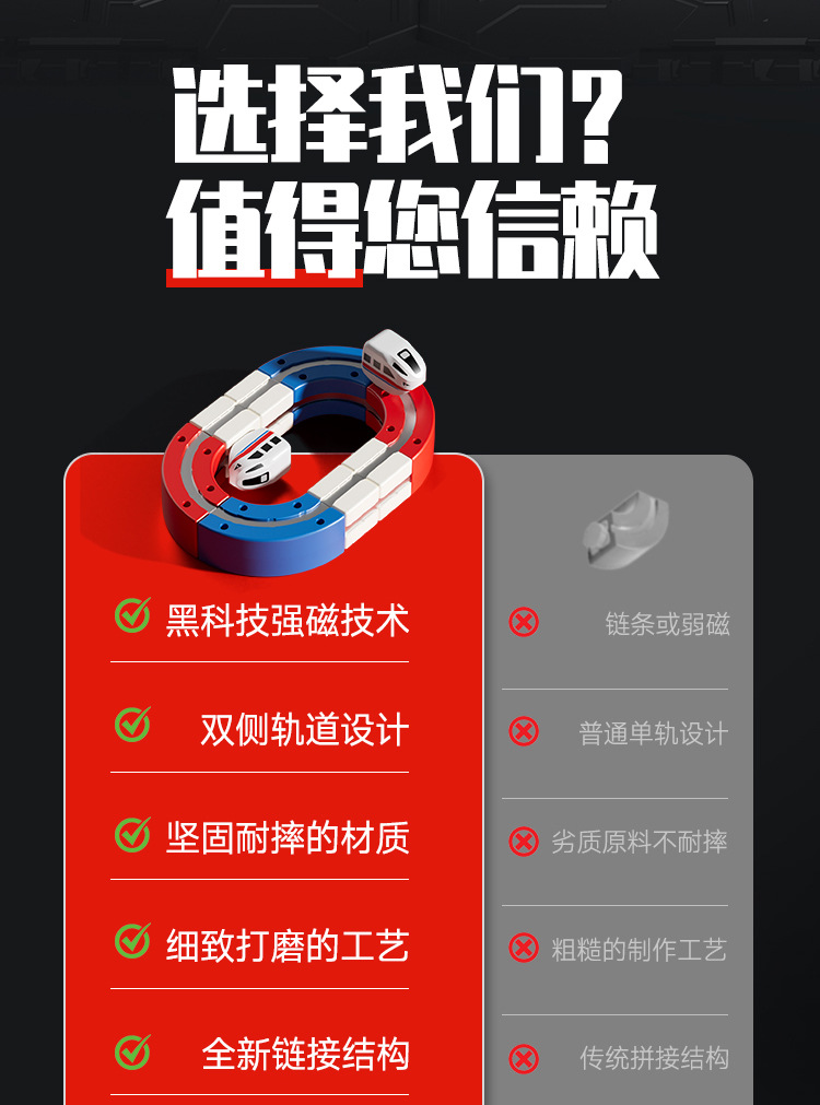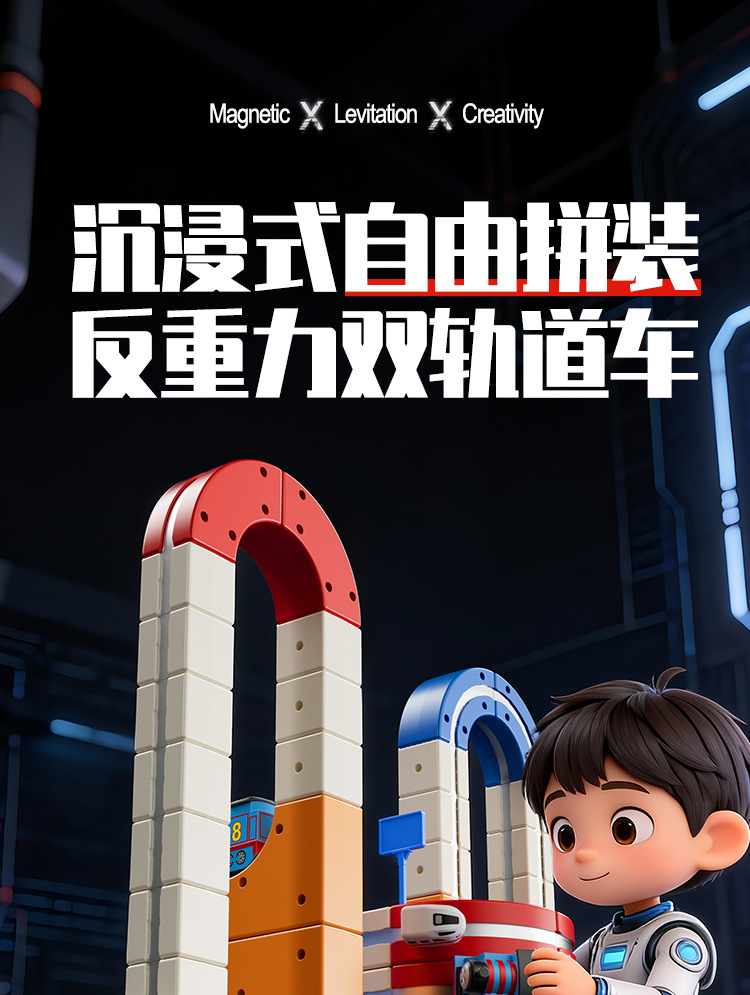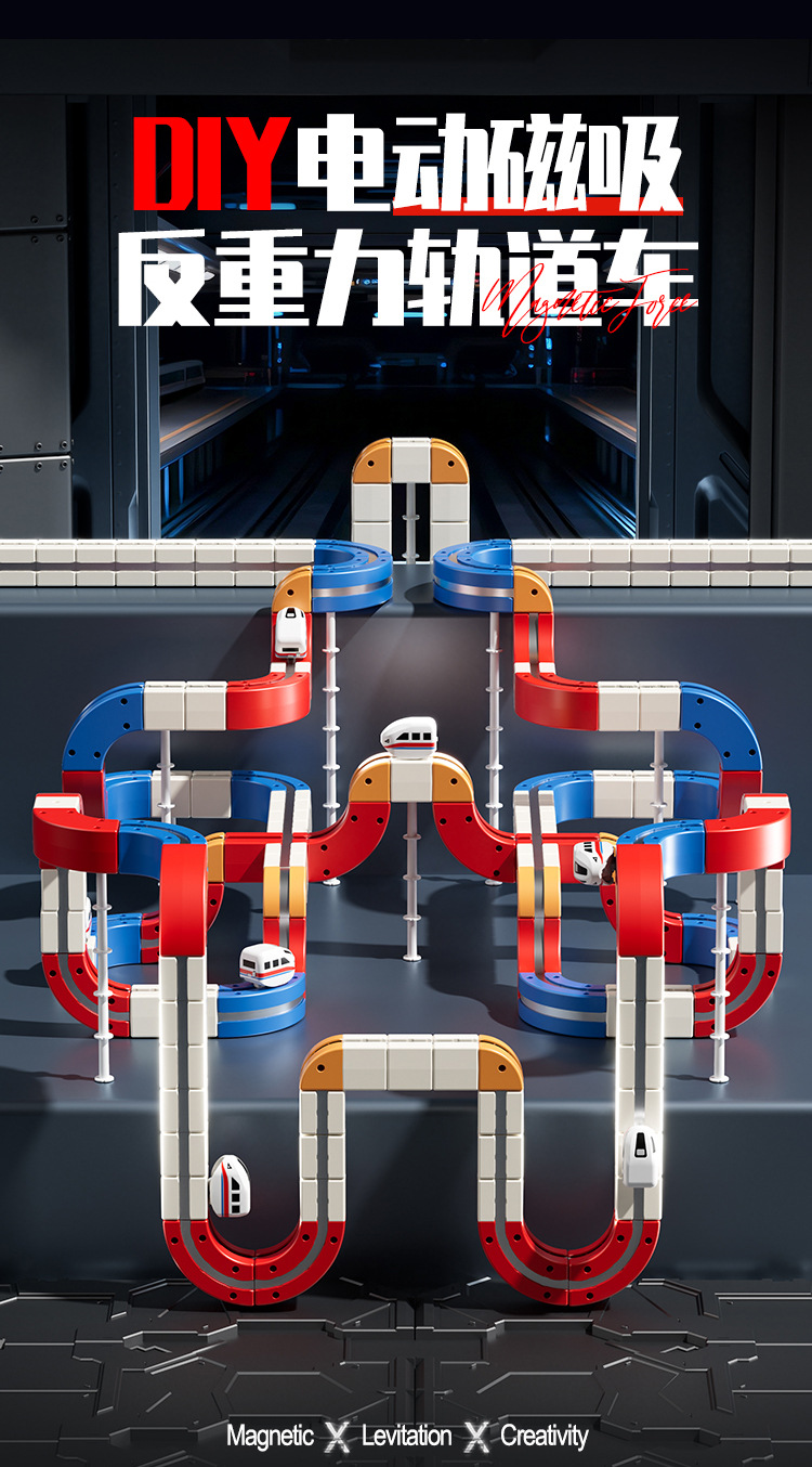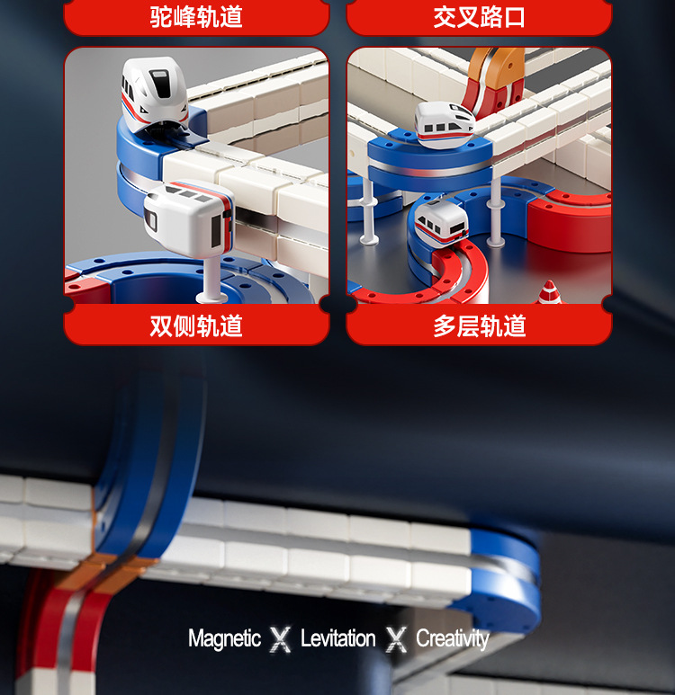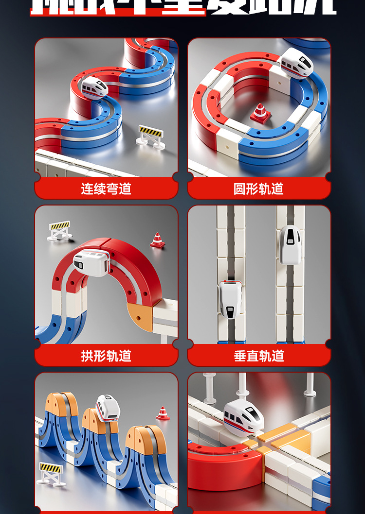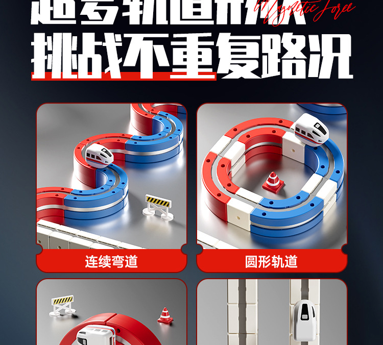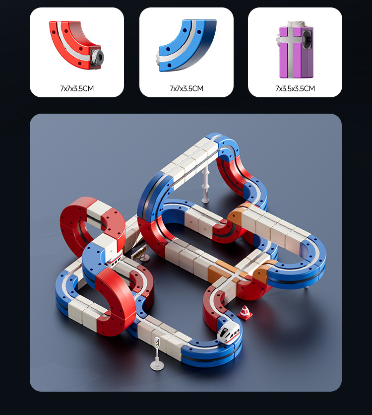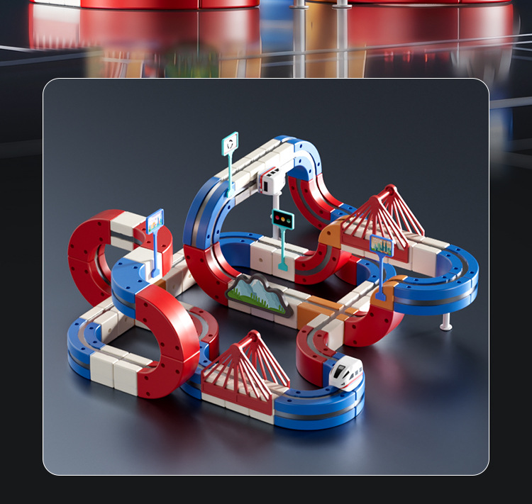 拼装积木磁力轨道车磁吸小火车百变魔幻立体轨道儿童益智电动玩具