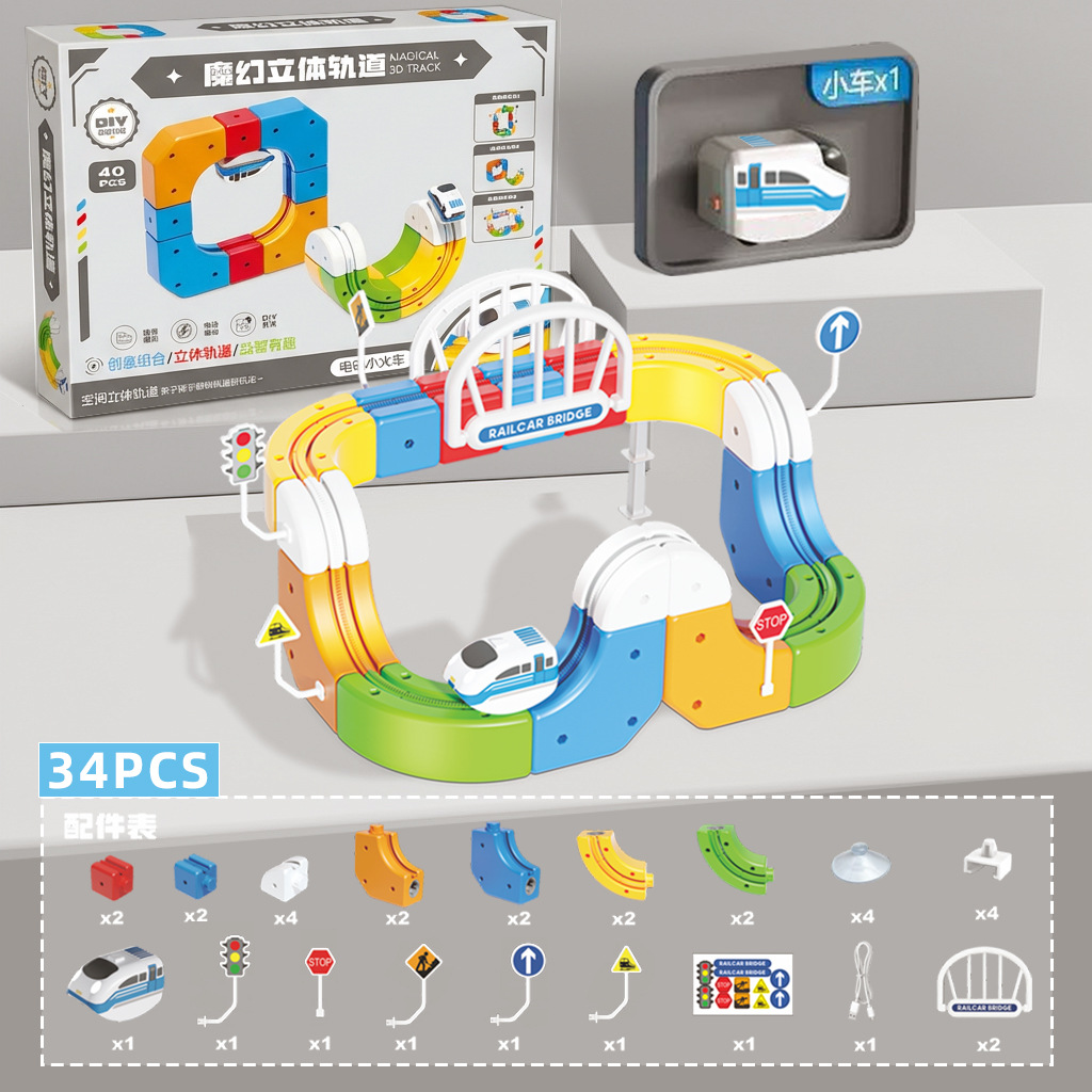 1车版-卡扣魔幻立体轨道【34件套】 USD $7.08 999 box available